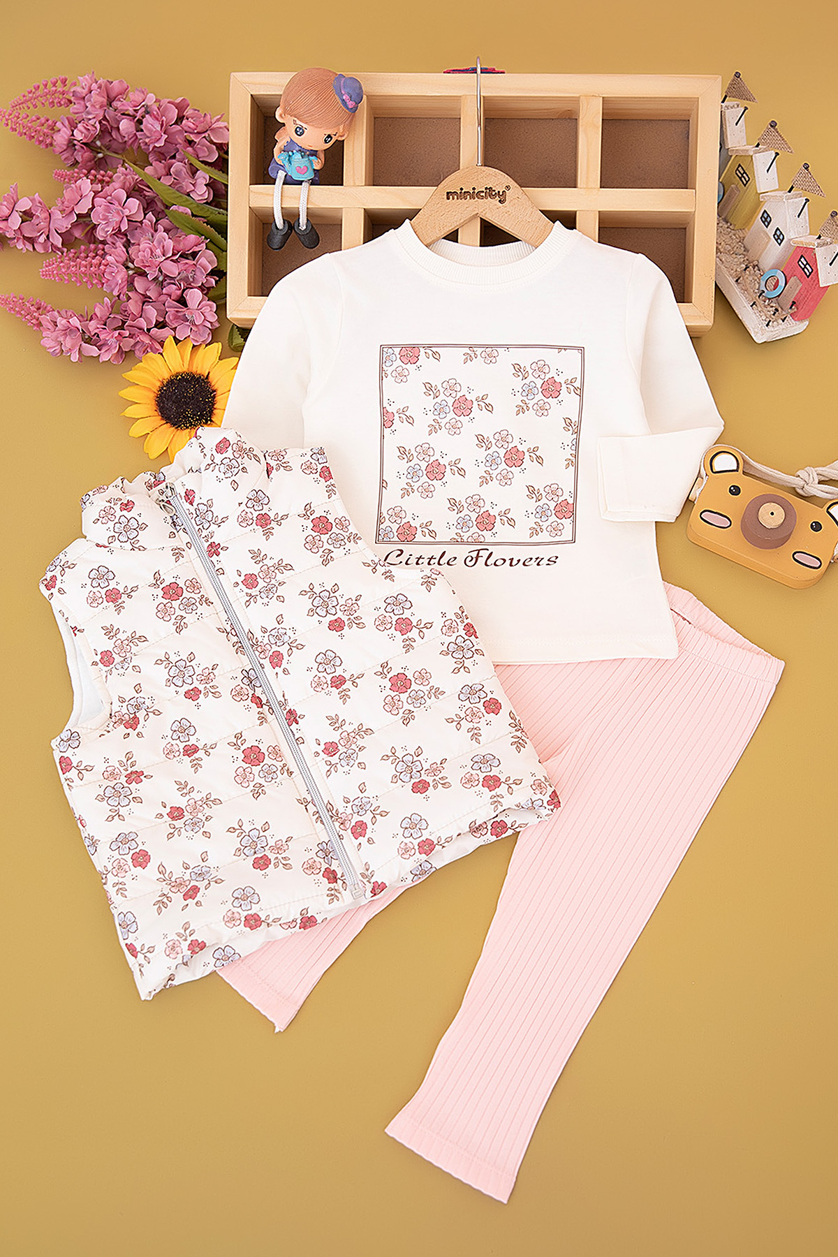 Kız Çocuk Çiçek Baskılı Yelekli Takım - 3690 (3-6 Yaş)