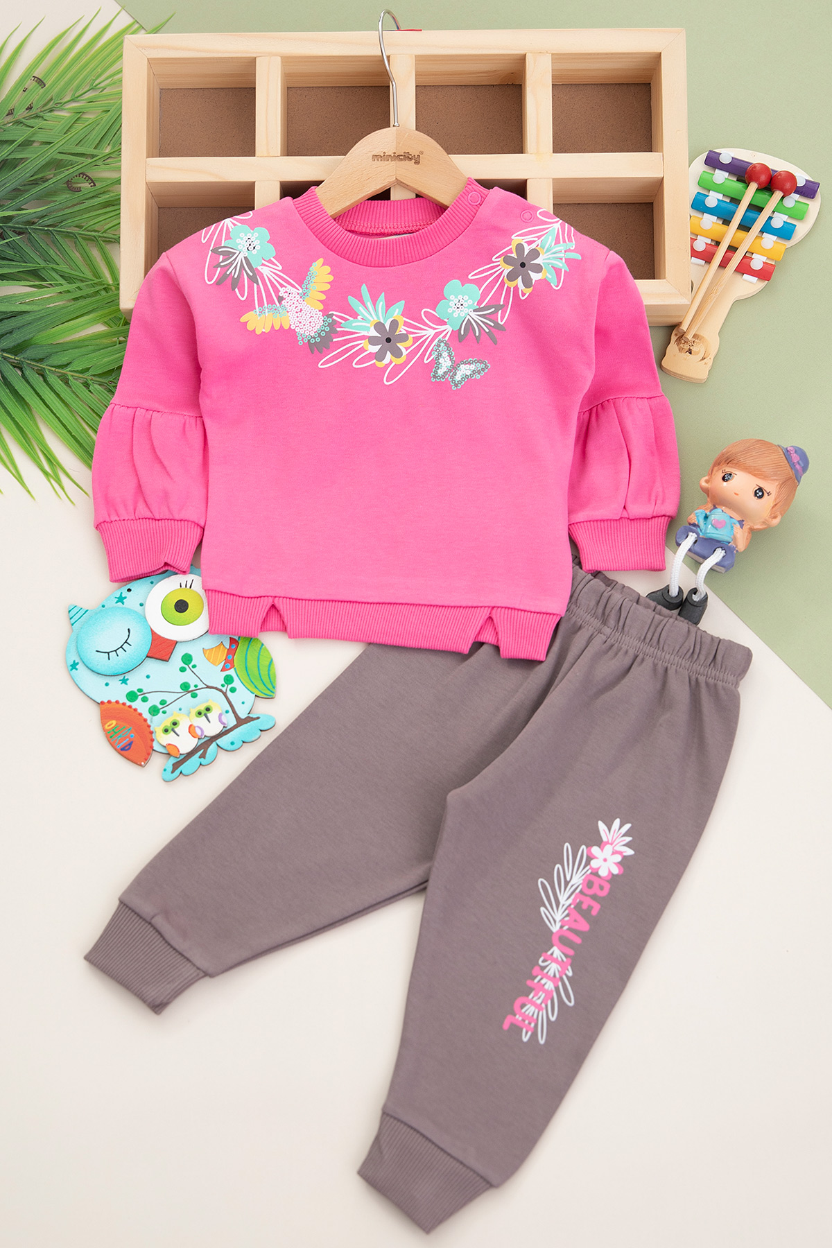 Kız Çocuk Çiçek Desenli İkili Takım - 23518 (9-24 Ay)