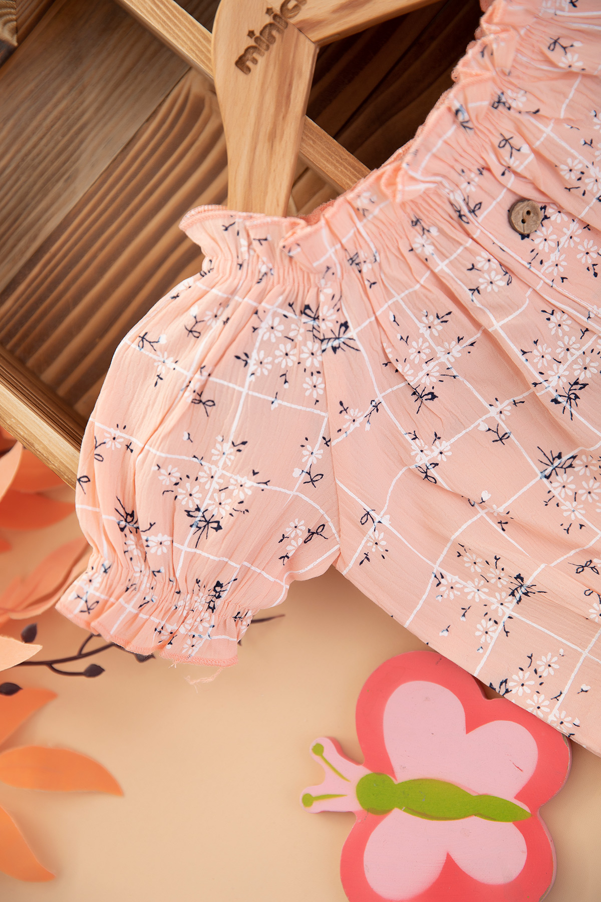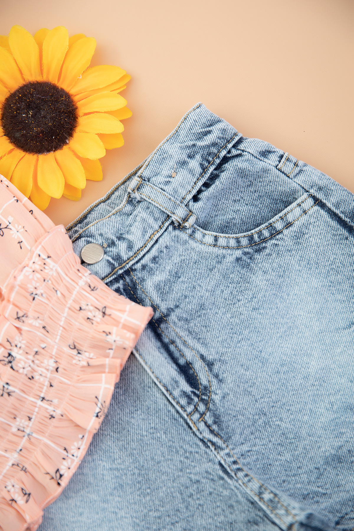 Kız Çocuk Çiçek Desenli Kot Şortlu Takım - 6101 (5-8 Yaş)