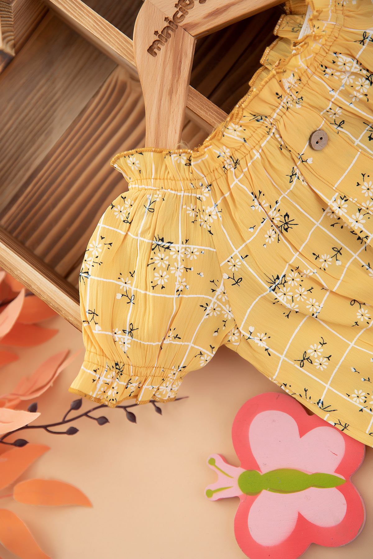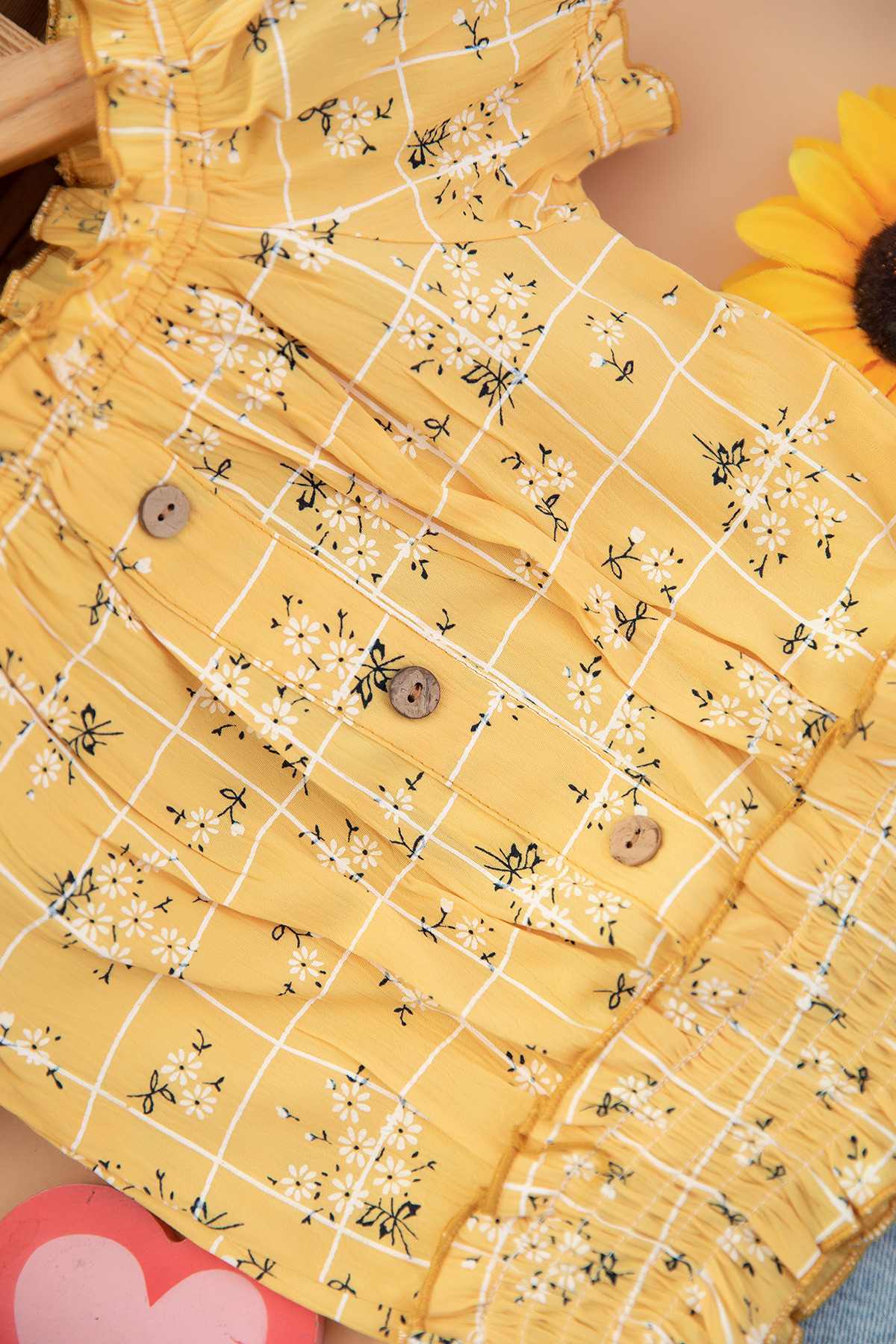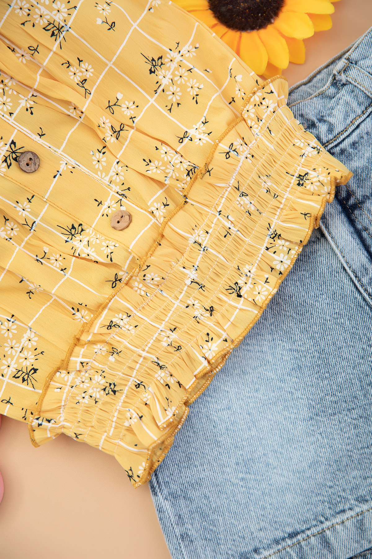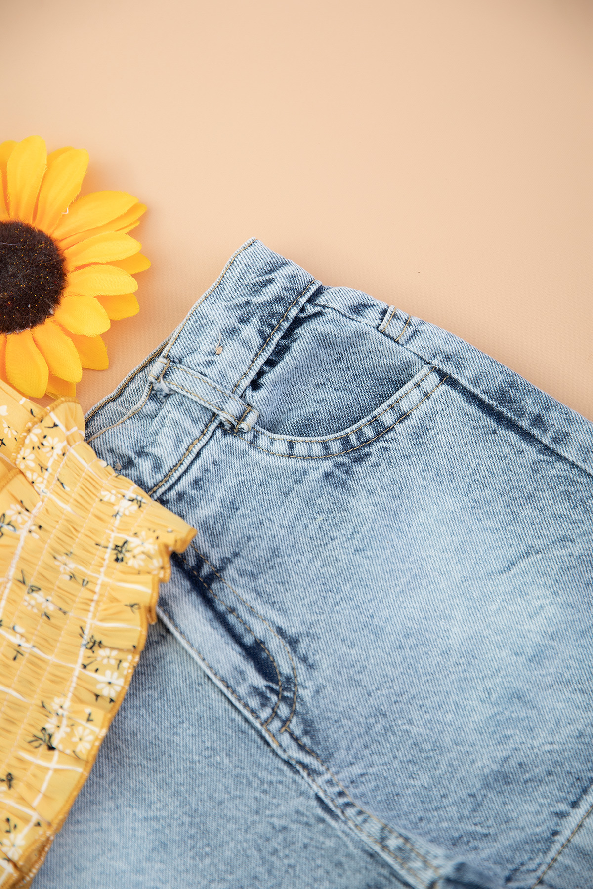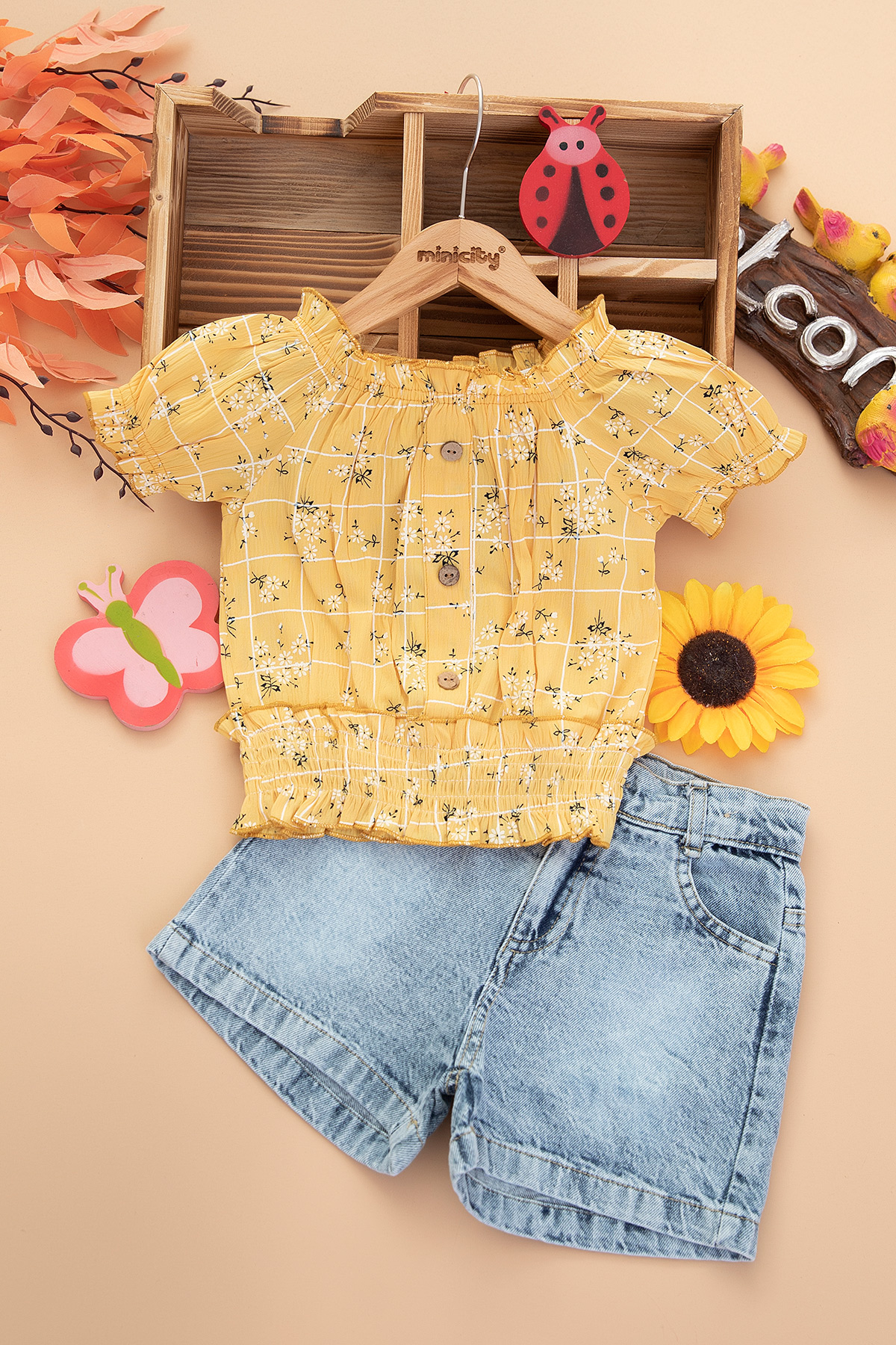 Kız Çocuk Çiçek Desenli Kot Şortlu Takım - 6101 (5-8 Yaş)