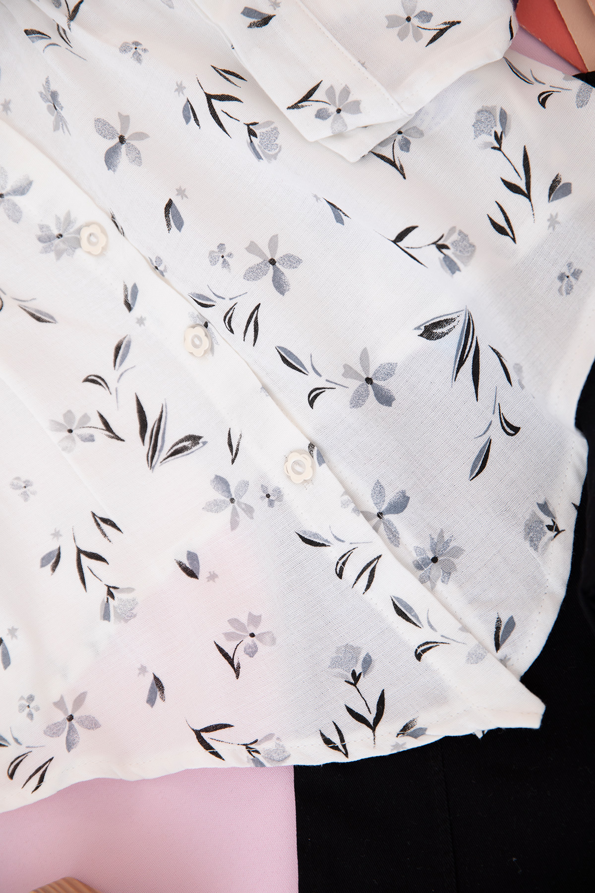 Kız Çocuk Çiçek Desenli Müslin Gömlek Takım - 25130 (3-6 Yaş)