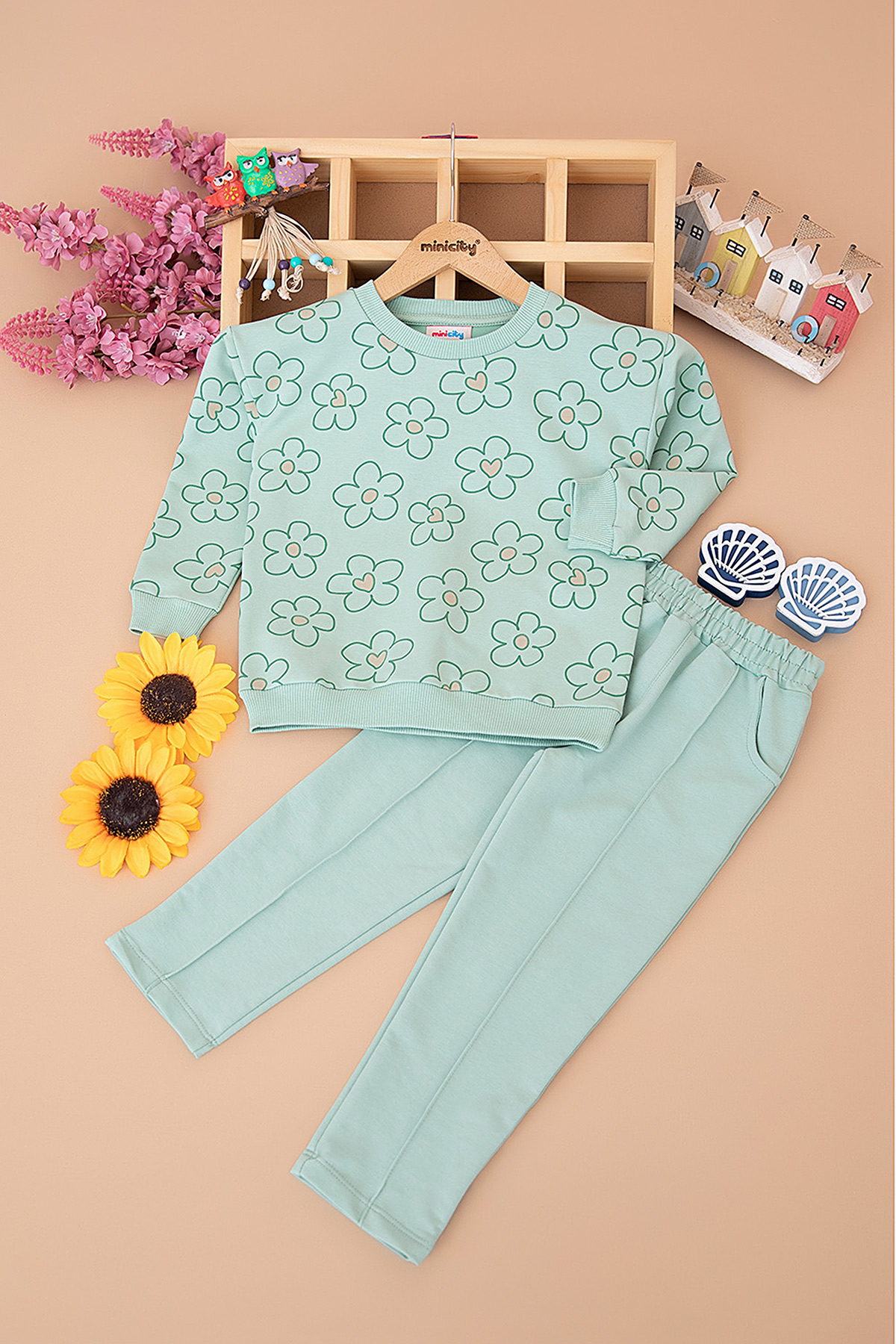 Kız Çocuk Çiçek Desenli Takım - 25689 (3-6 Yaş)