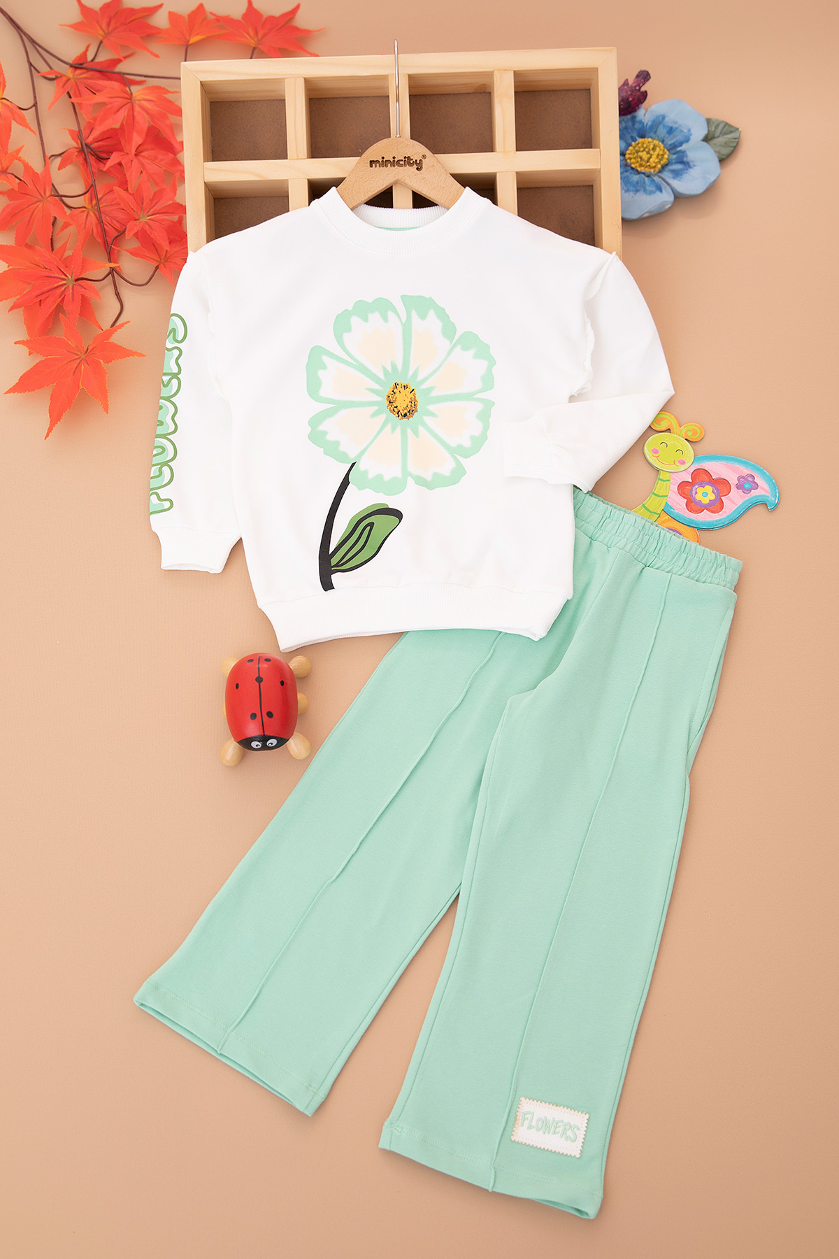 Kız Çocuk Çiçek Flowers Baskılı Takım - 883 (4-8 Yaş)