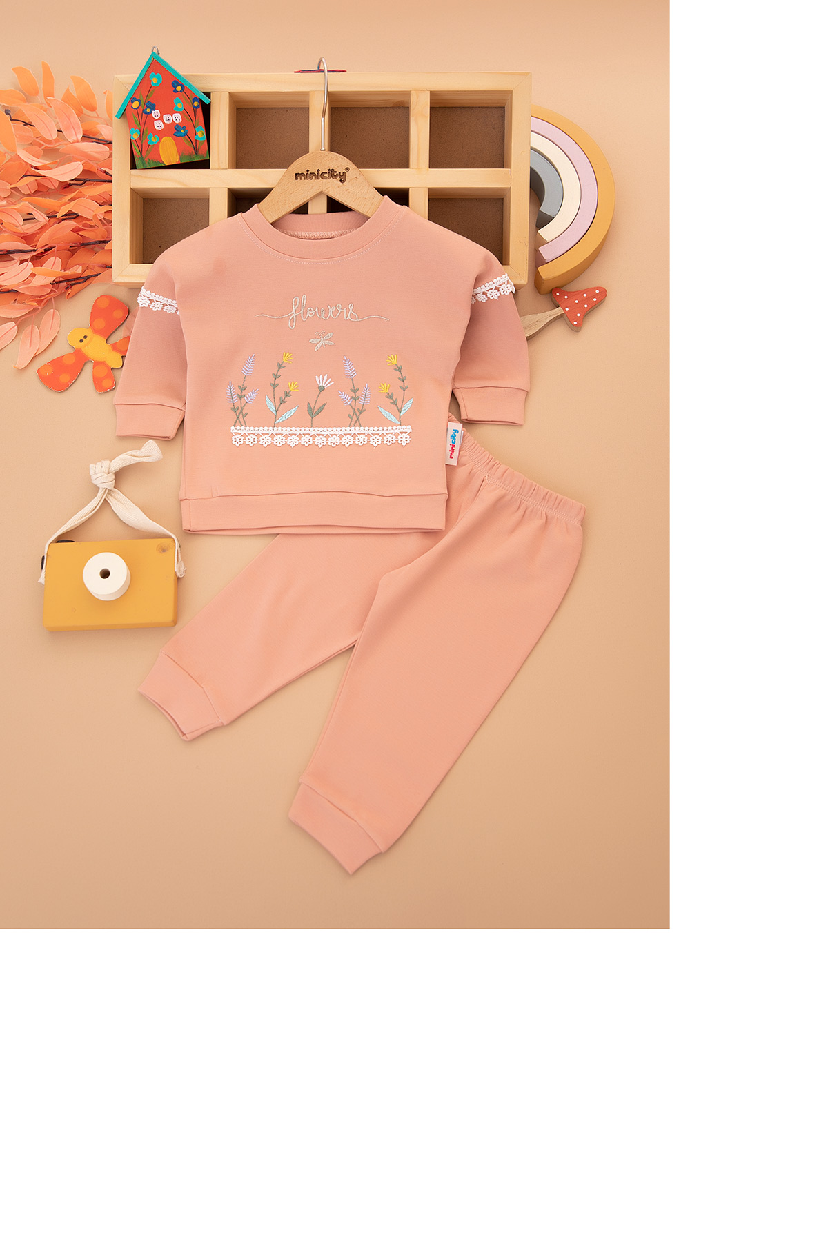 Kız Çocuk Çiçek Flowers Nakışlı Takım - 1075 (1-3 Yaş)
