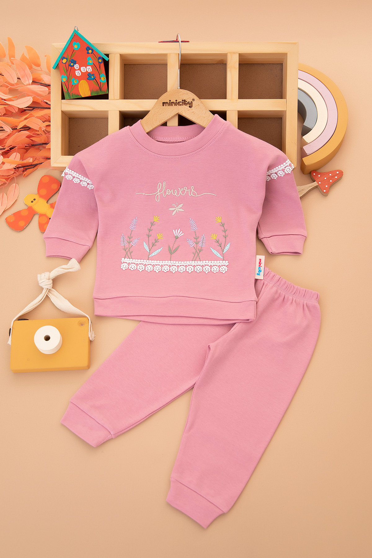 Kız Çocuk Çiçek Flowers Nakışlı Takım - 1075 (1-3 Yaş)