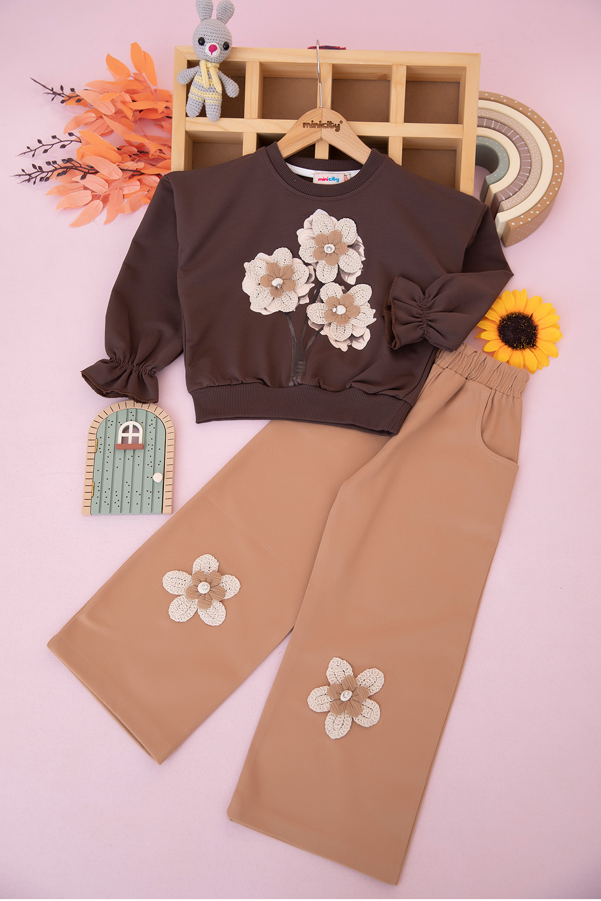 Kız Çocuk Çiçek Gabardin Takım - Y-103 (3-10 Yaş)