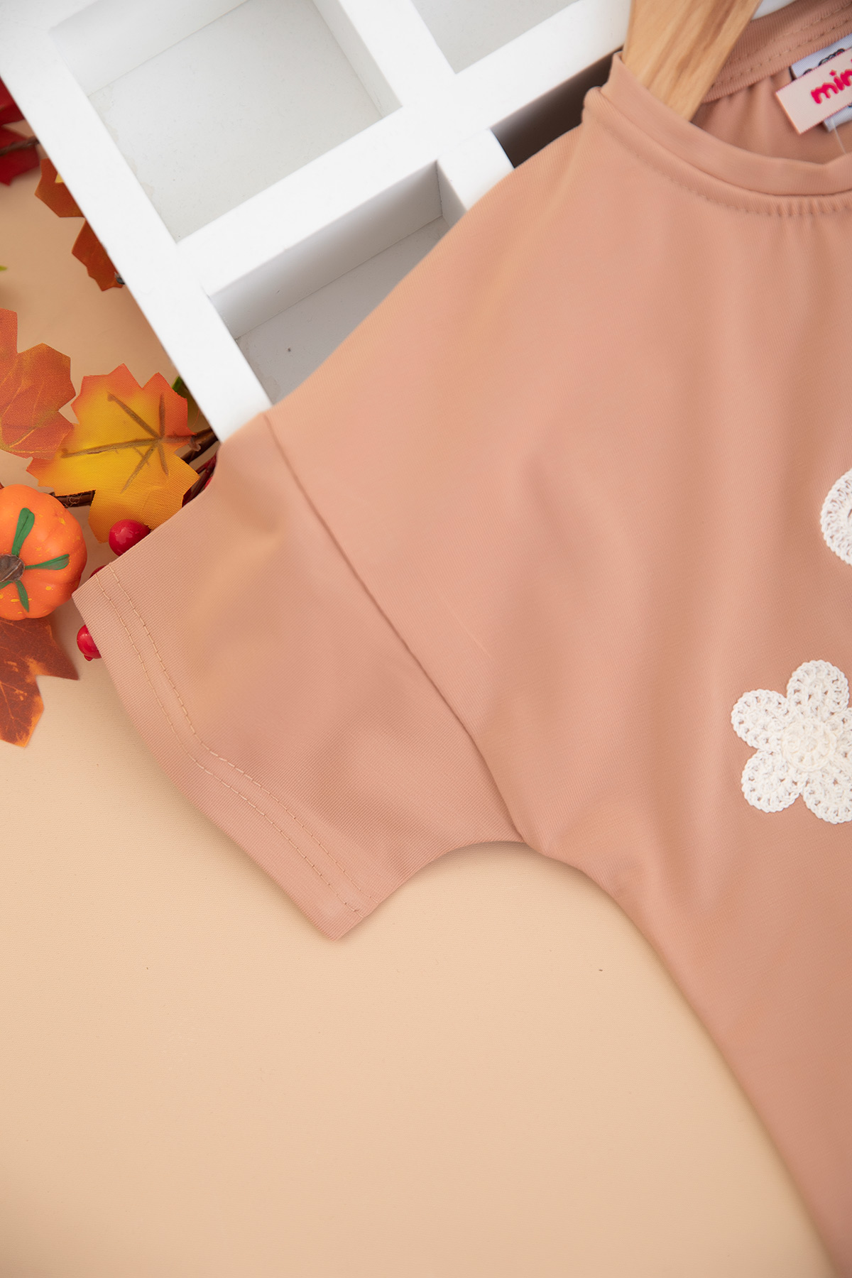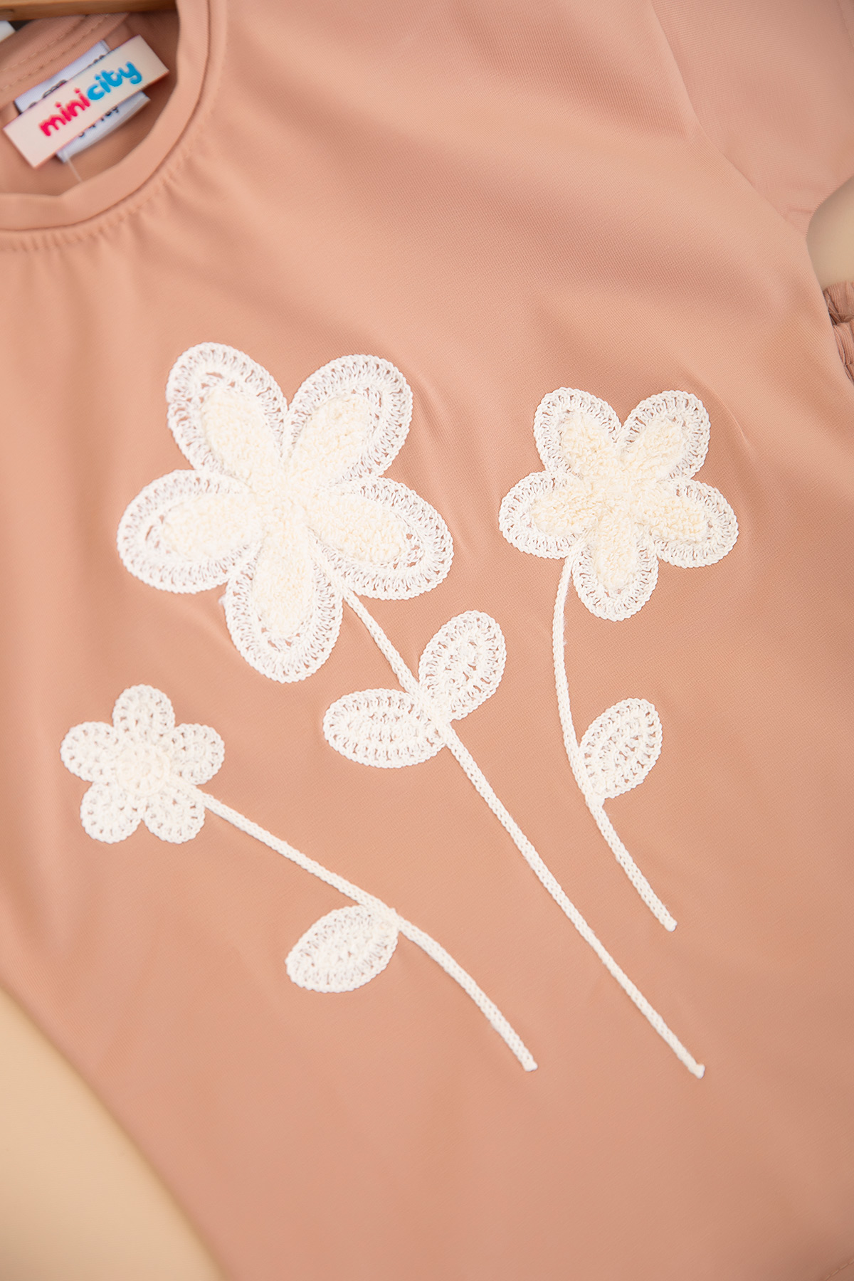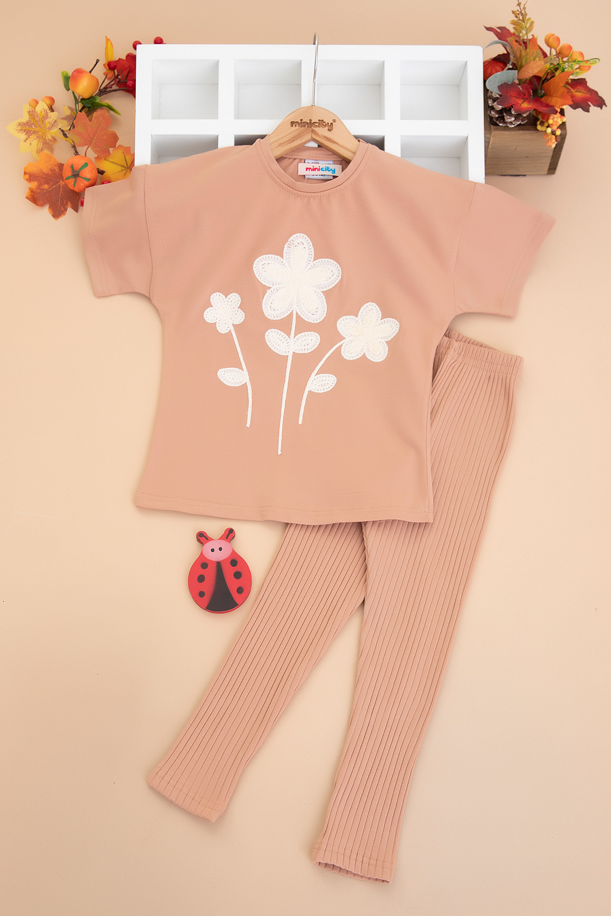 Kız Çocuk Çiçek İşlemeli Taytlı İkili Takım - 6649 (3-10 Yaş)