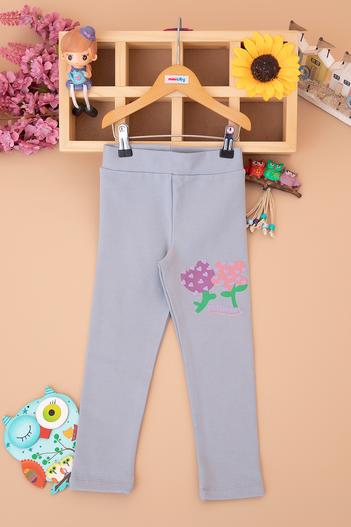 Kız Çocuk Çiçek Kabartma Baskılı Tayt - 60533 (4-9 Yaş)