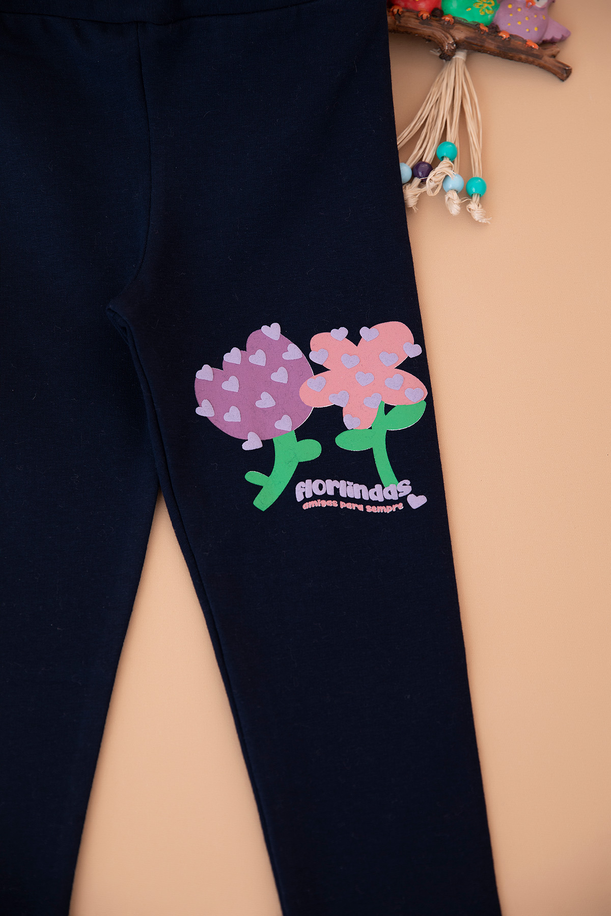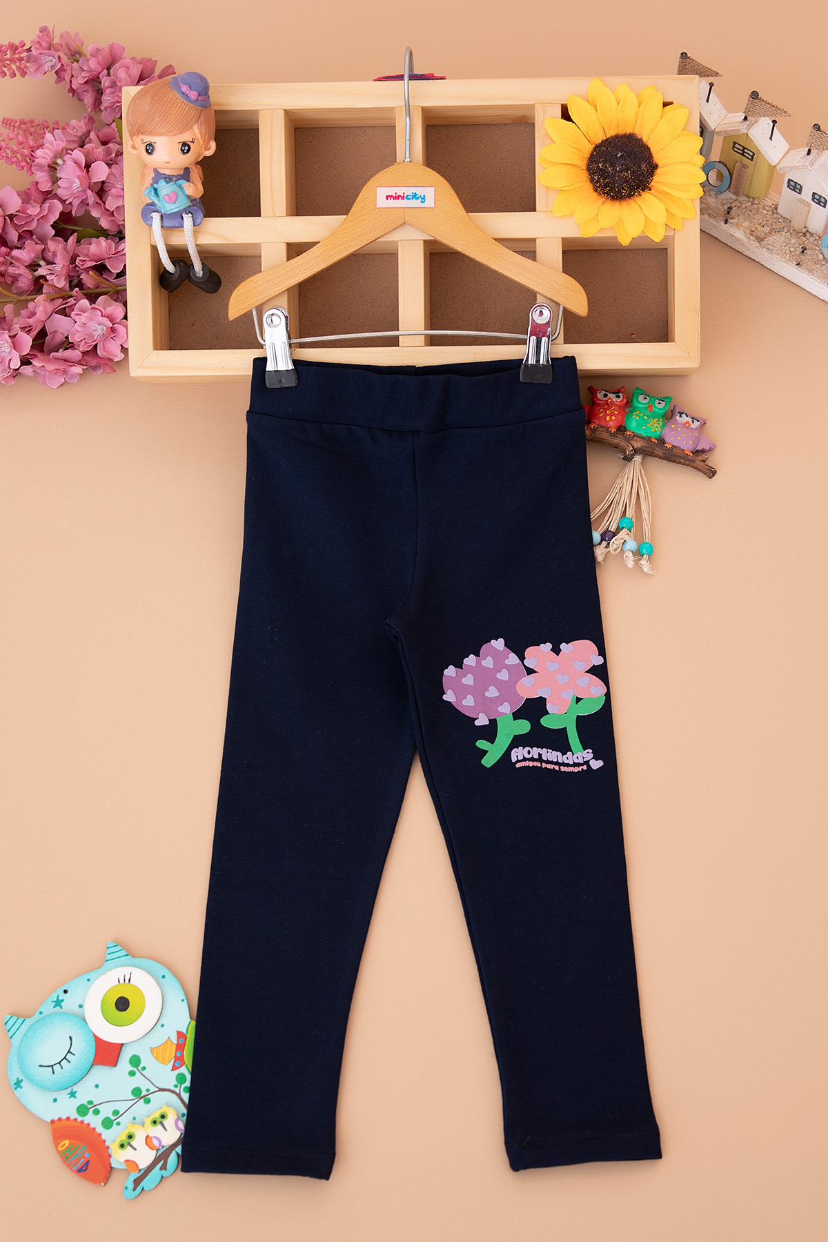 Kız Çocuk Çiçek Kabartma Baskılı Tayt - 60533 (4-9 Yaş)
