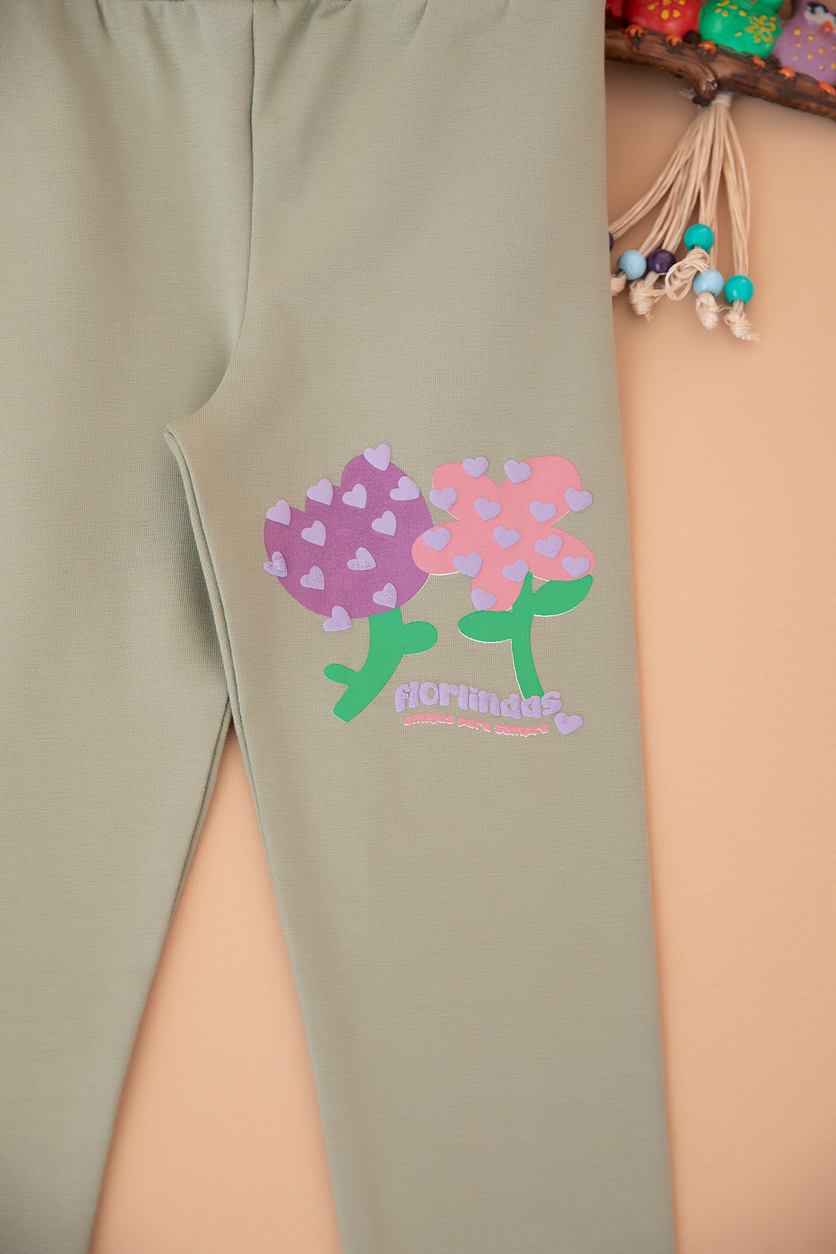 Kız Çocuk Çiçek Kabartma Baskılı Tayt - 60533 (4-9 Yaş)