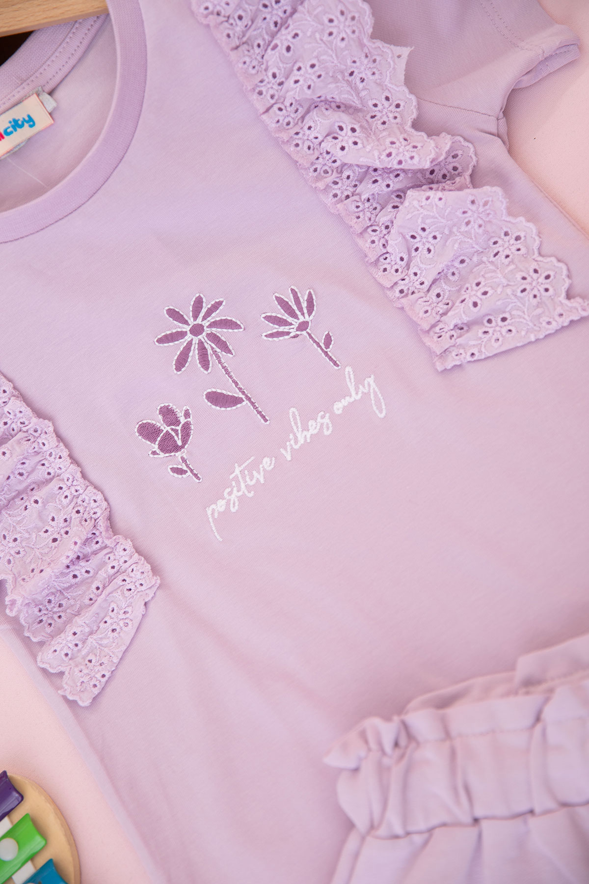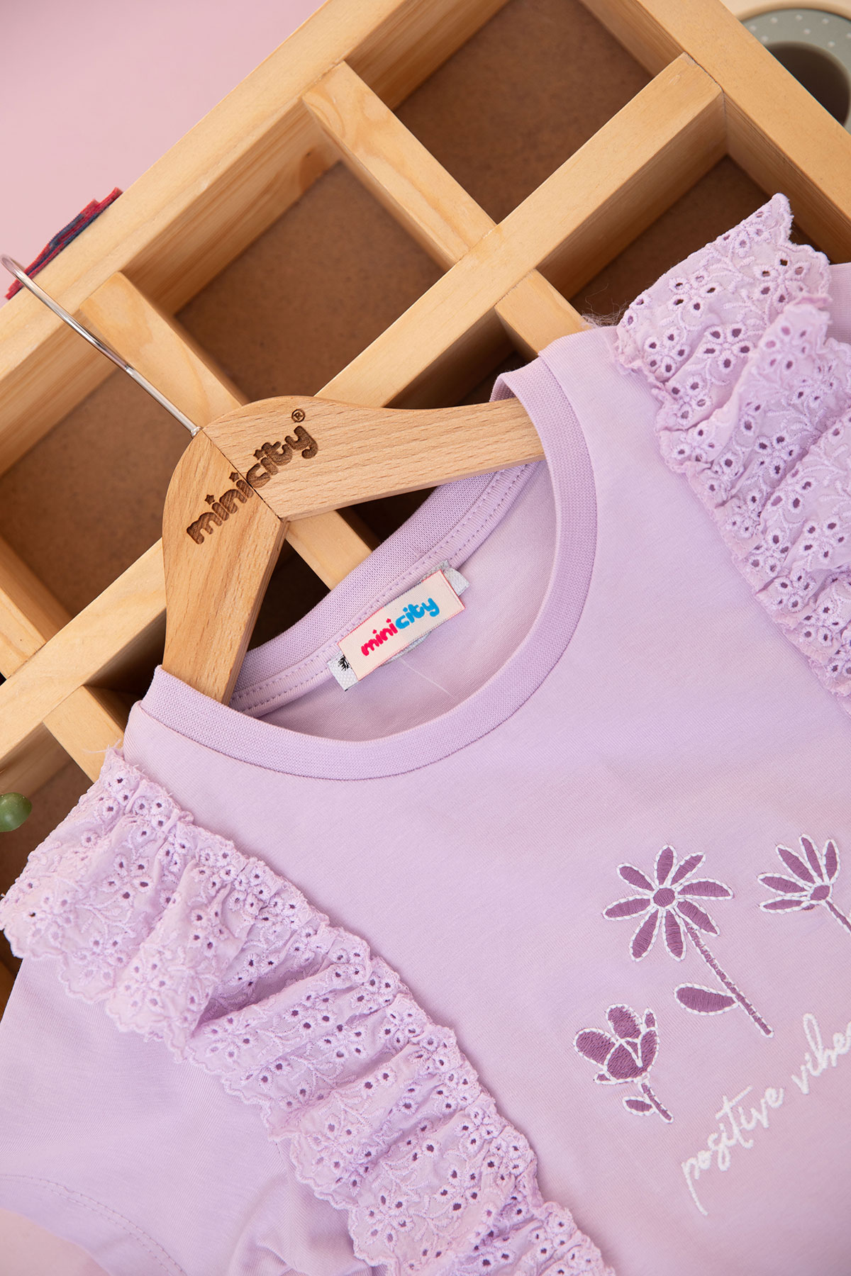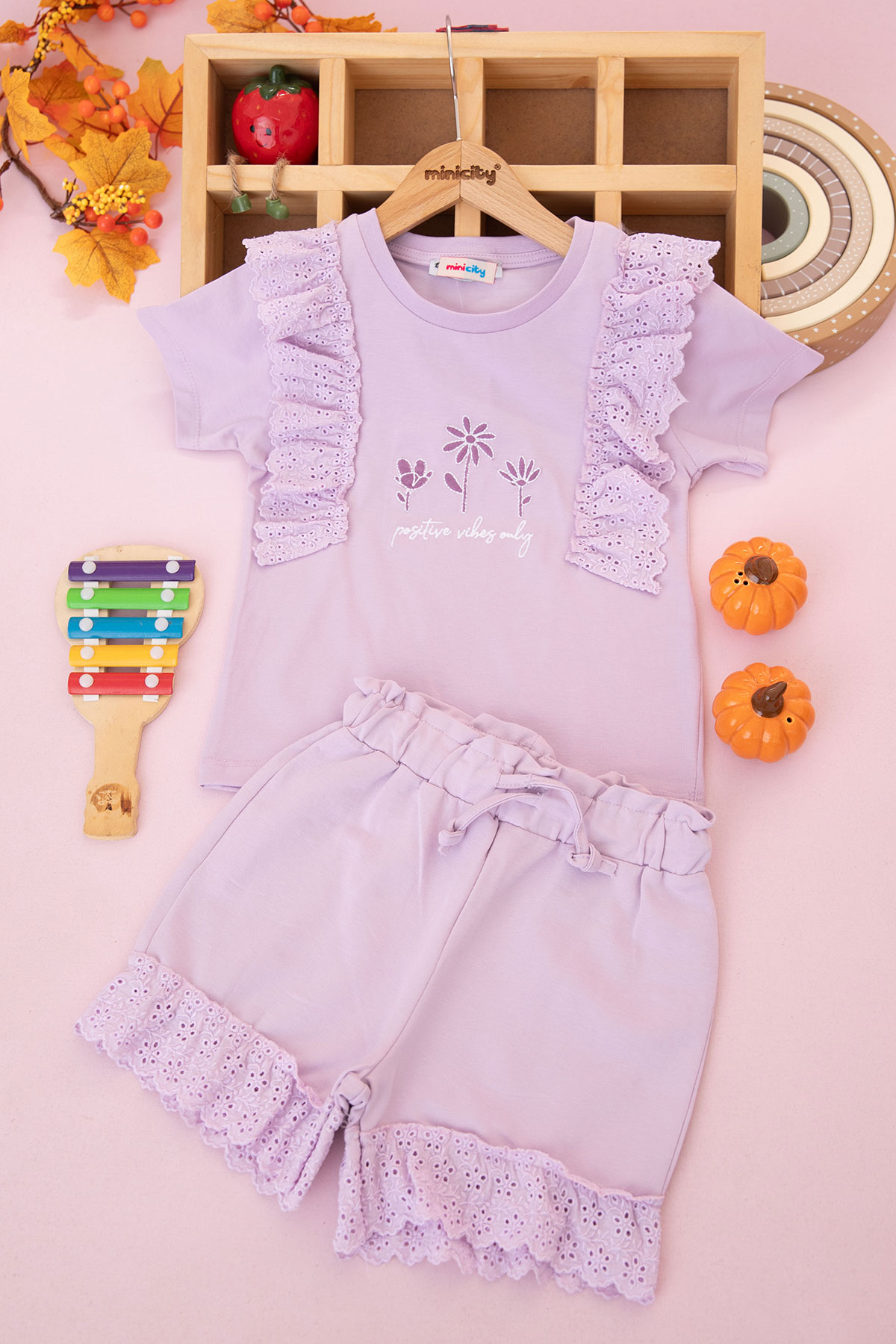 Kız Çocuk Çiçek Nakışlı Dantelli Şortlu Takım - 625822 (6-9 Yaş)