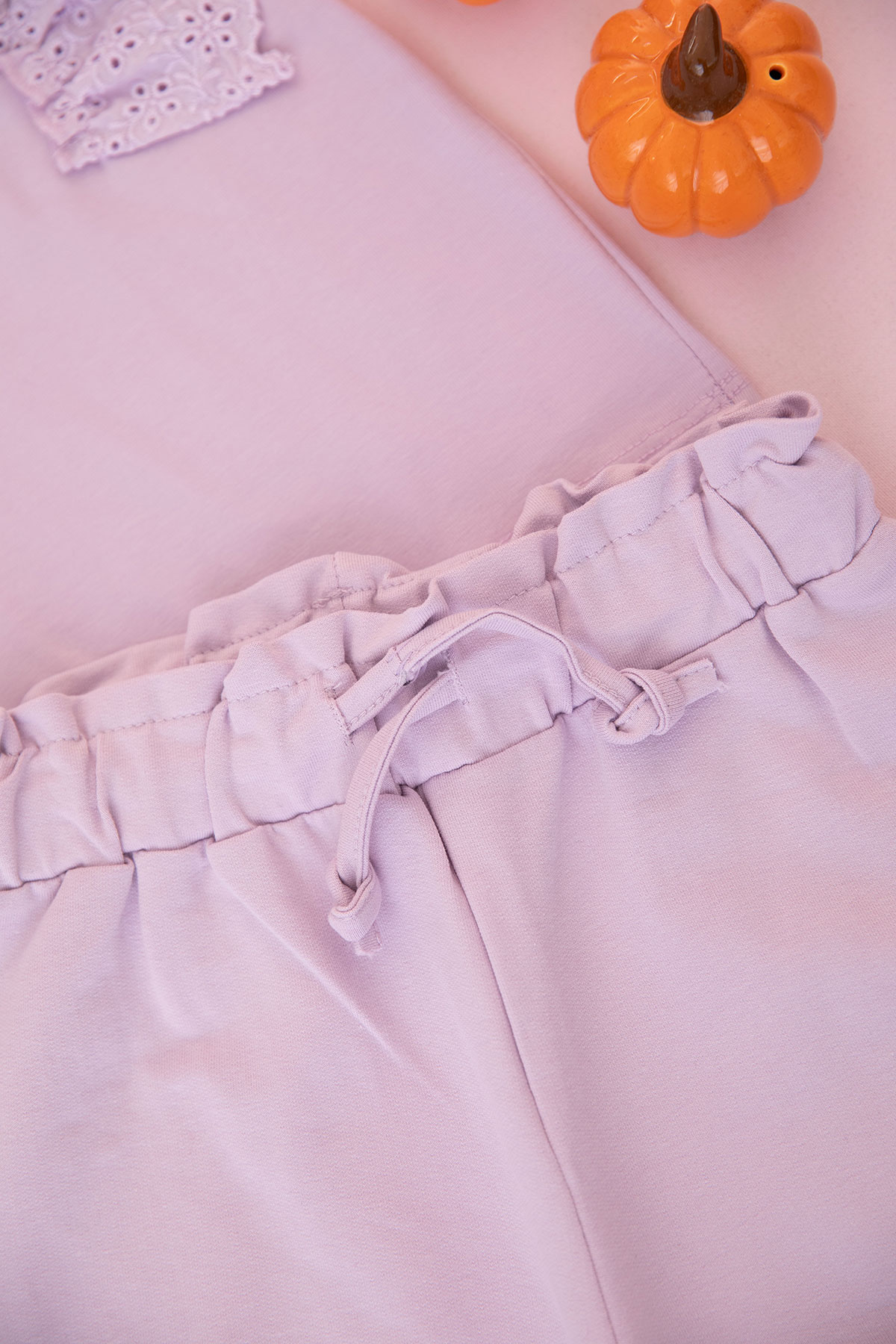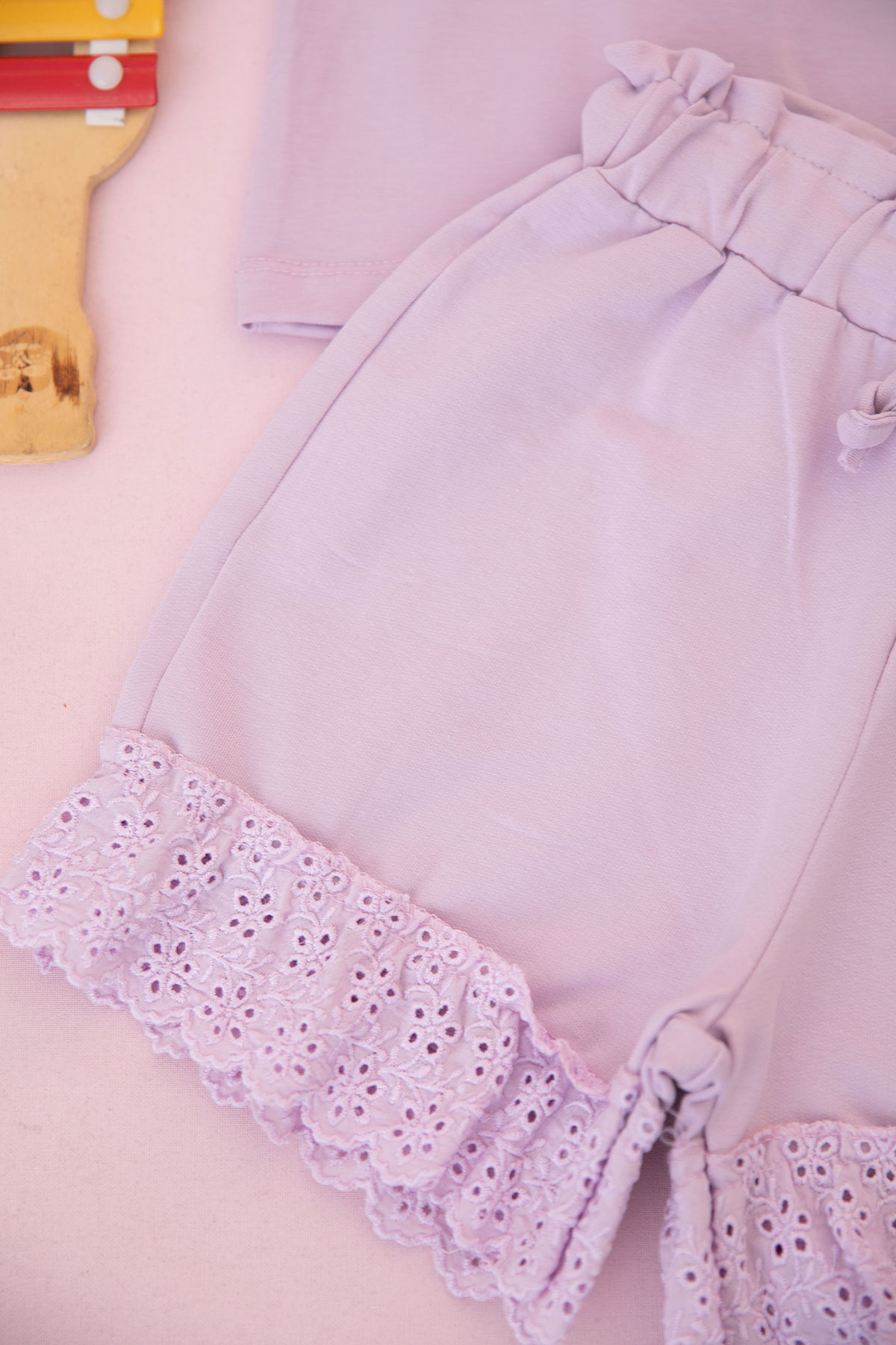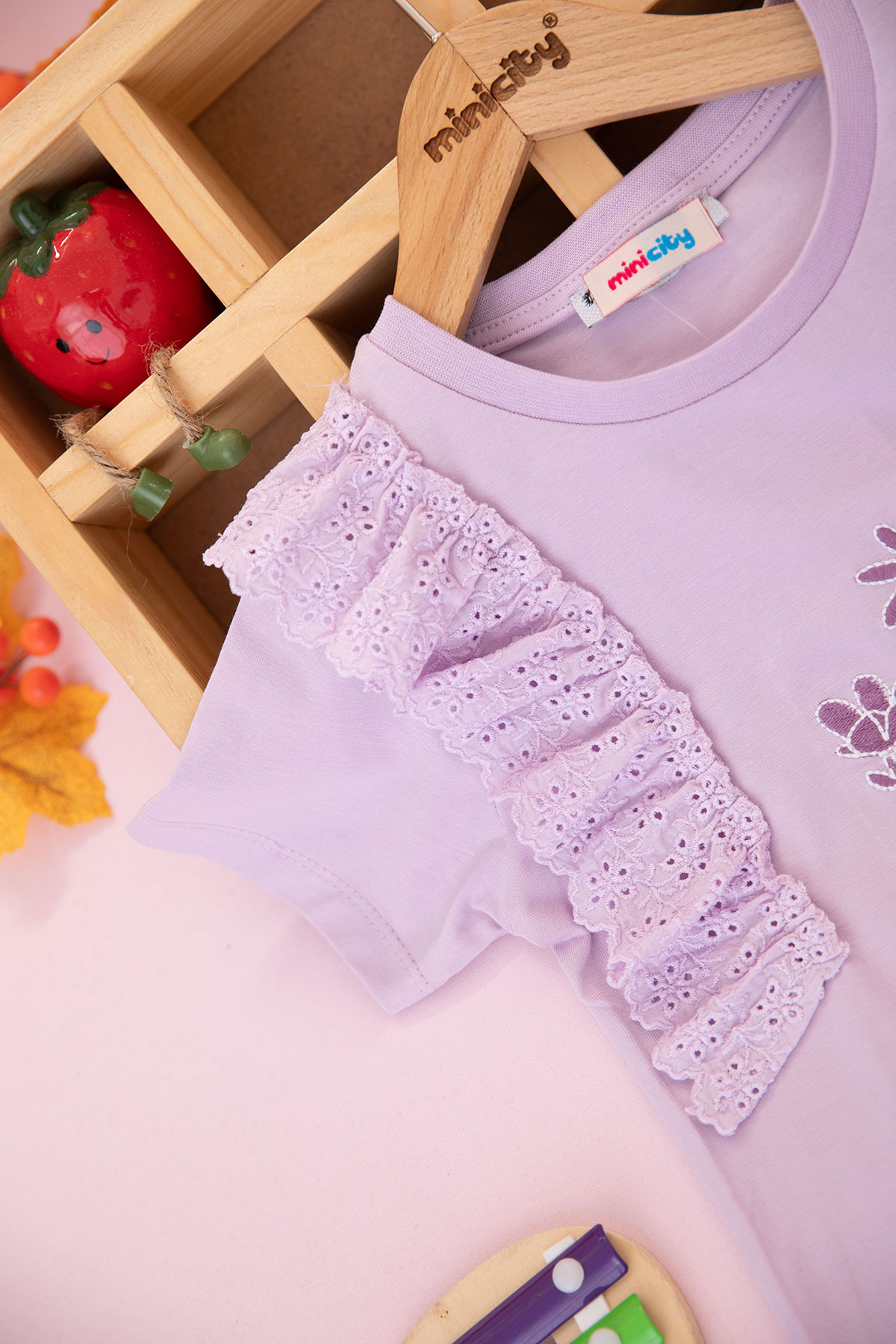 Kız Çocuk Çiçek Nakışlı Dantelli Şortlu Takım - 625822 (6-9 Yaş)