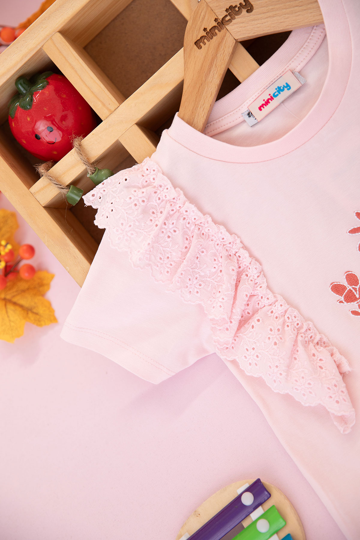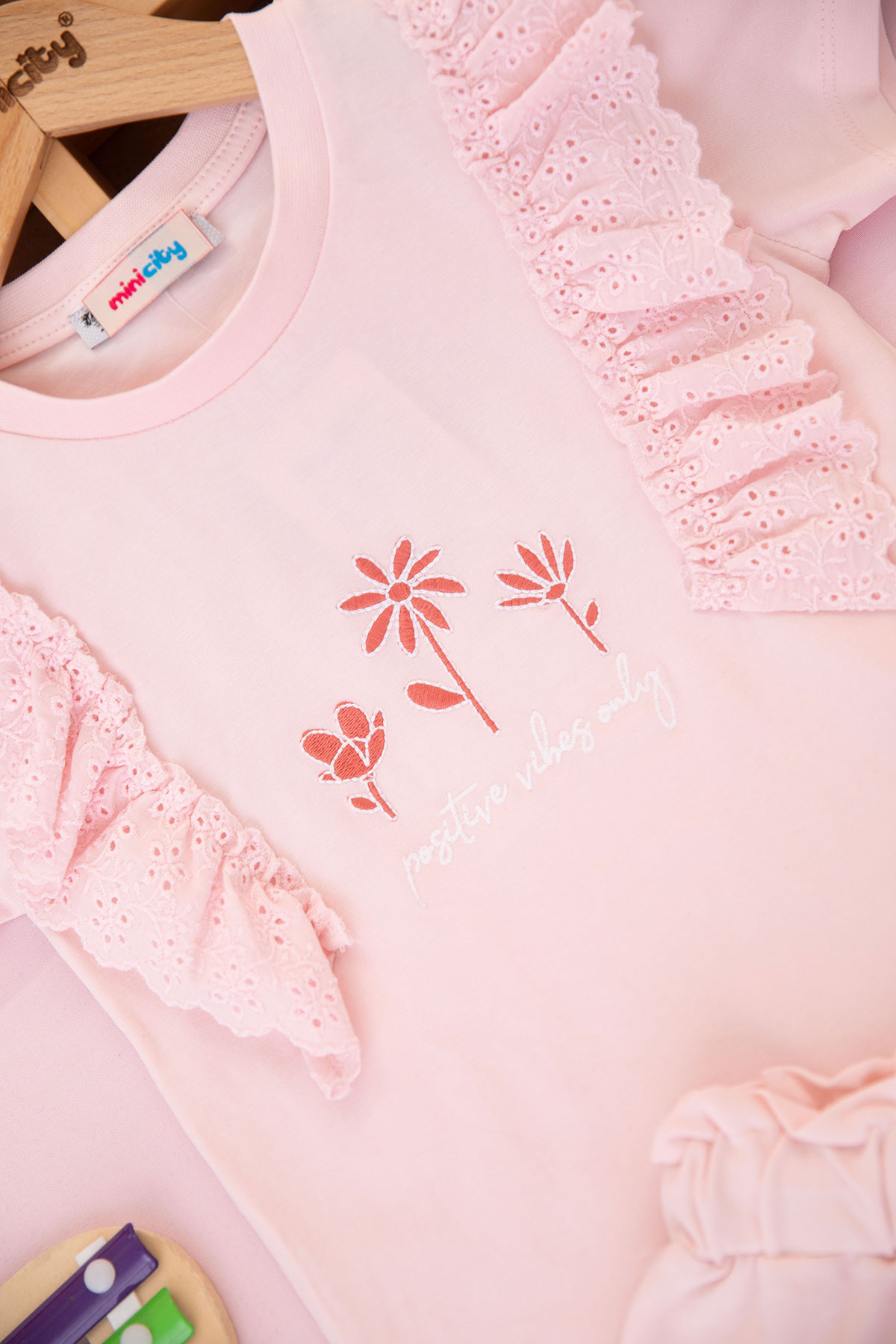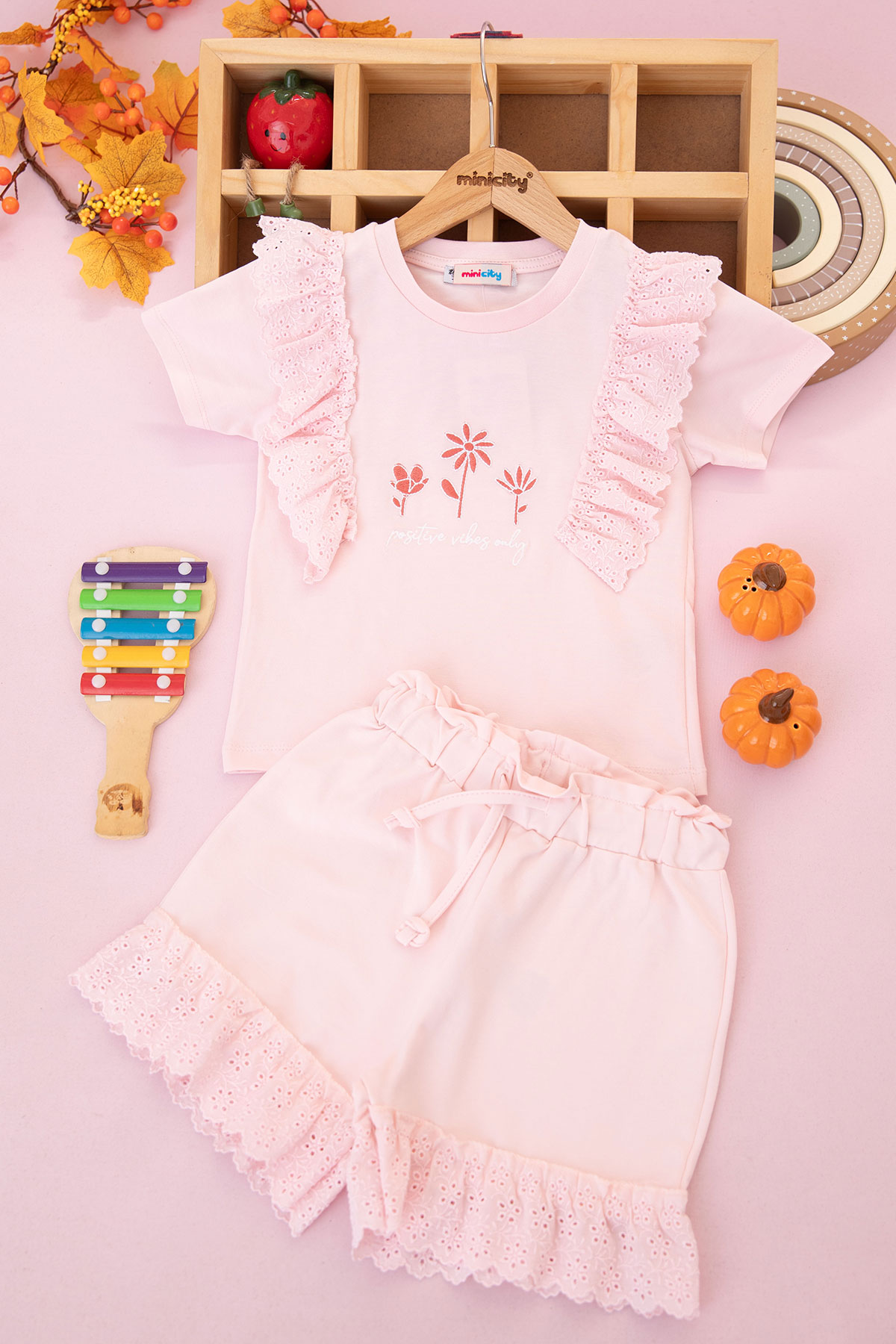 Kız Çocuk Çiçek Nakışlı Dantelli Şortlu Takım - 625822 (6-9 Yaş)