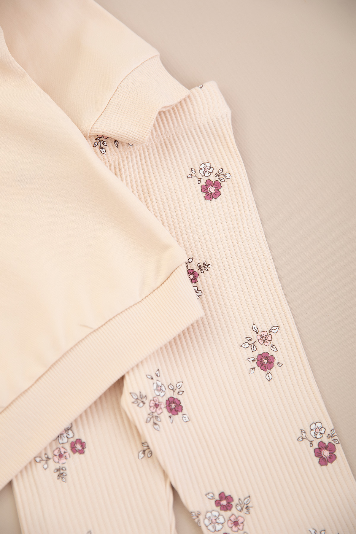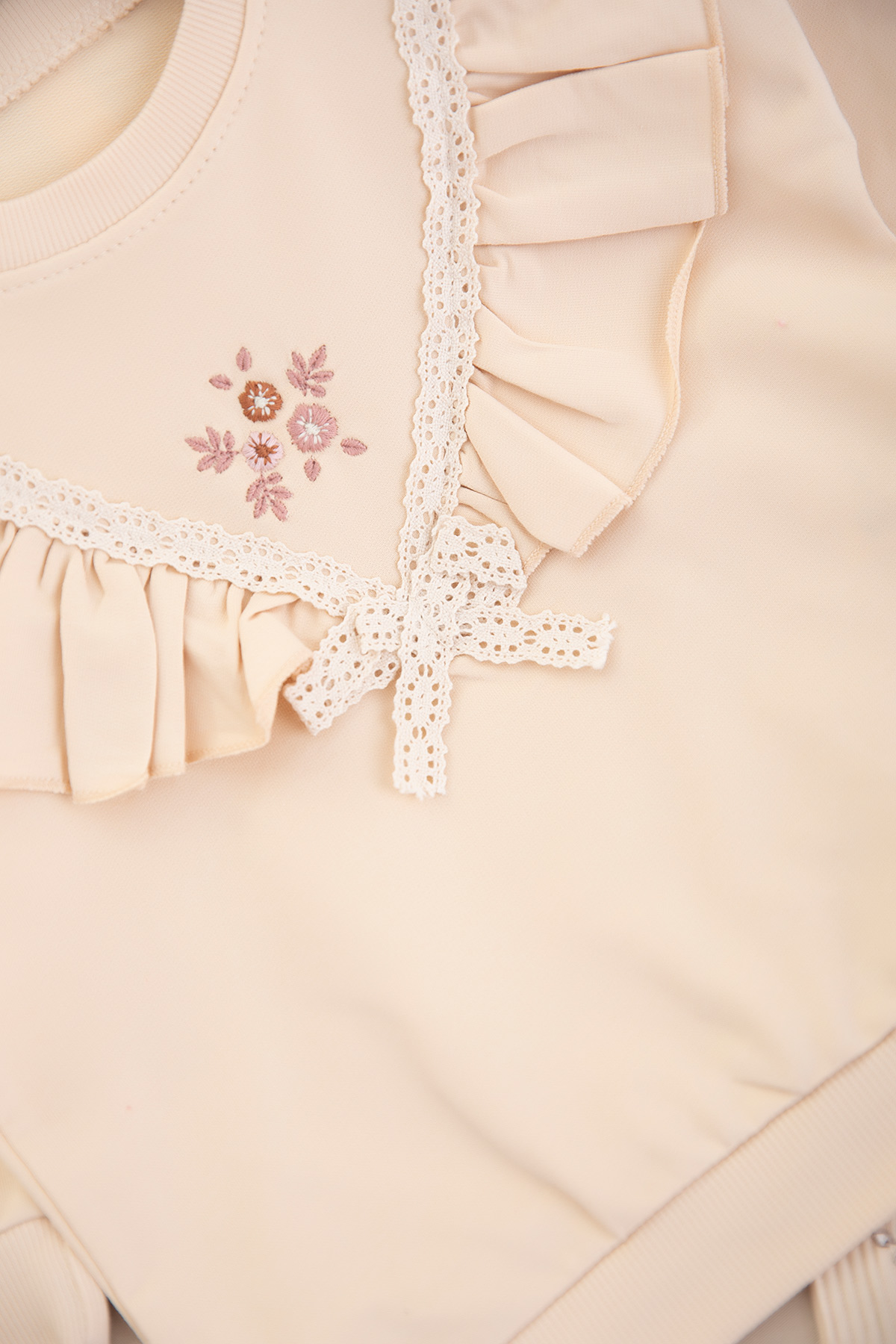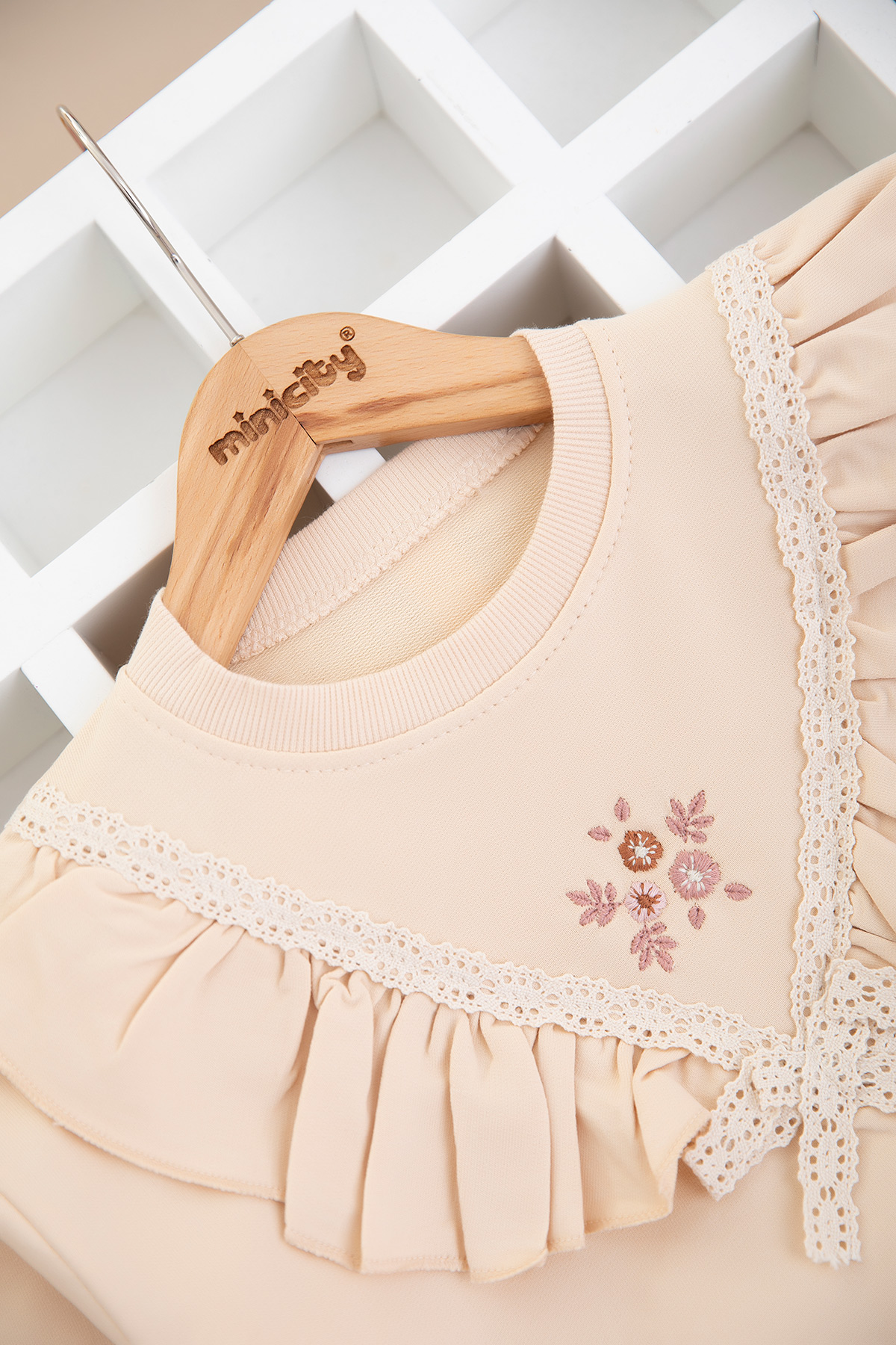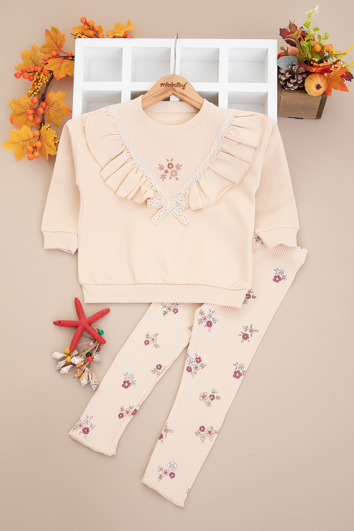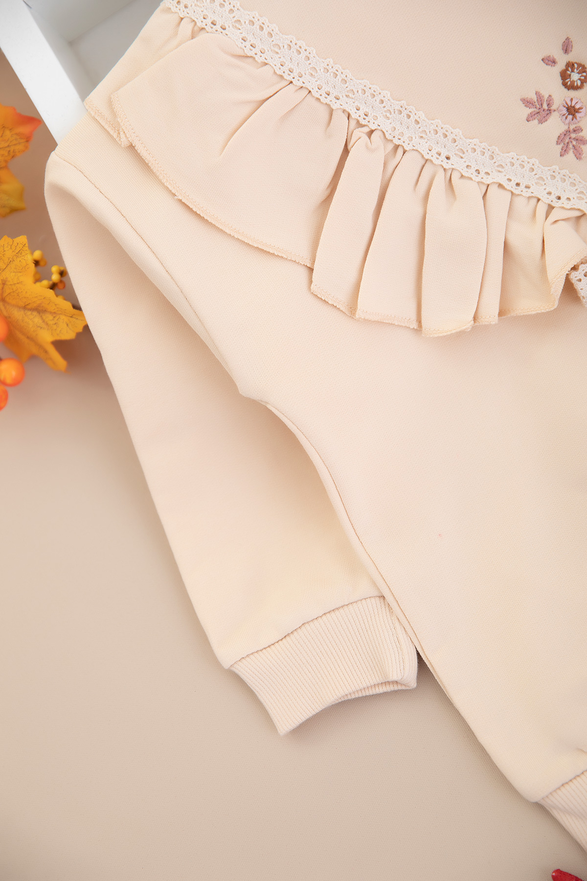 Kız Çocuk Çiçek Nakışlı Fistolu Takım - 2824 (2-6 Yaş)