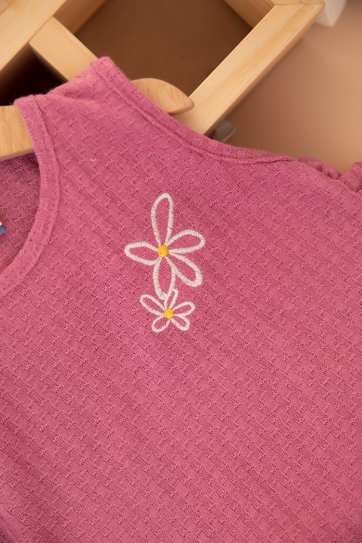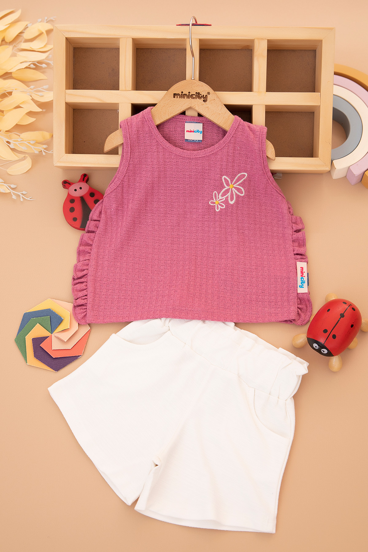 Kız Çocuk Çiçek Nakışlı Jakarlı Şortlu Takım - 25557 (3-6 Yaş)