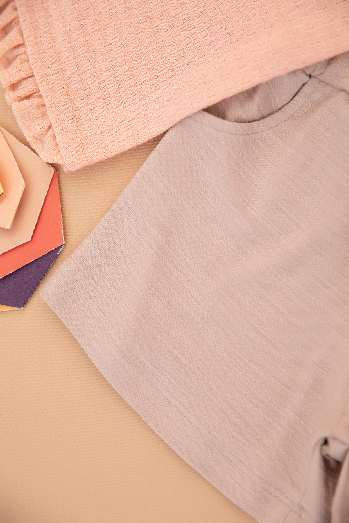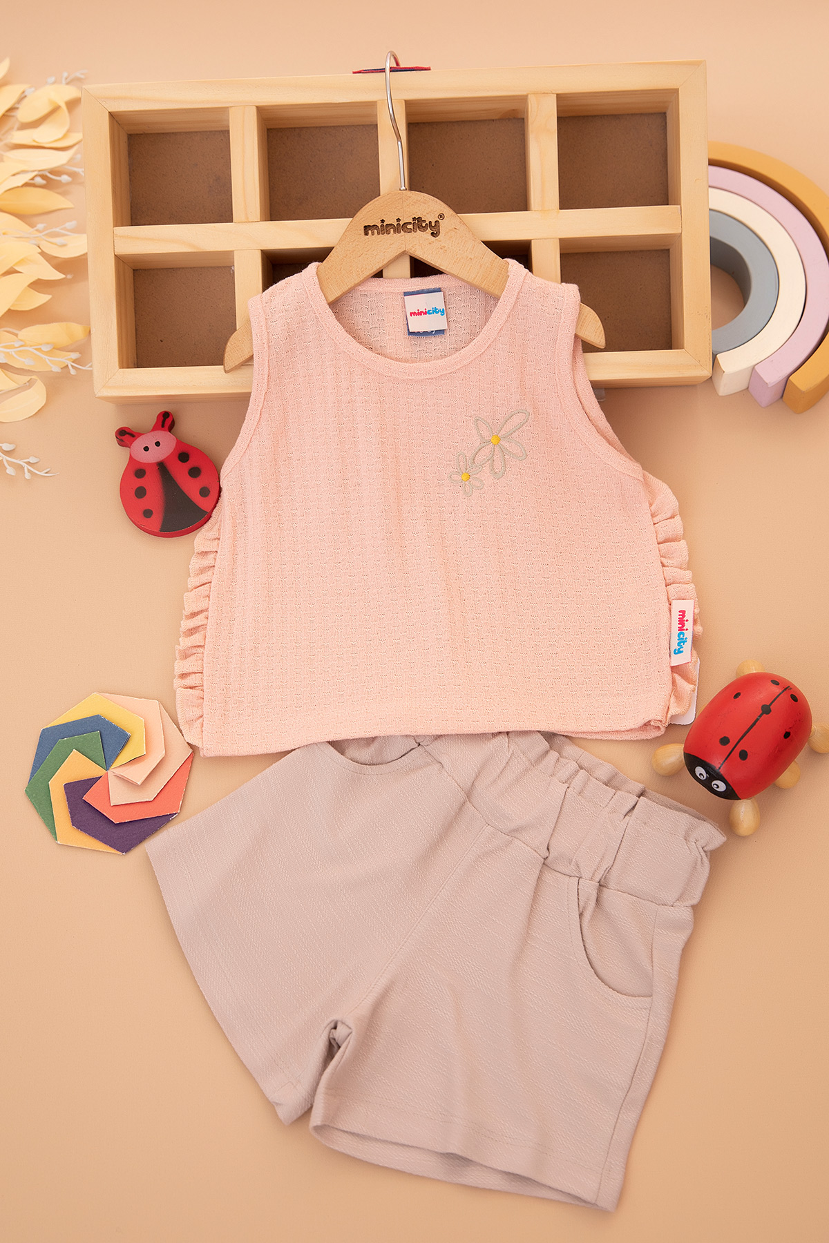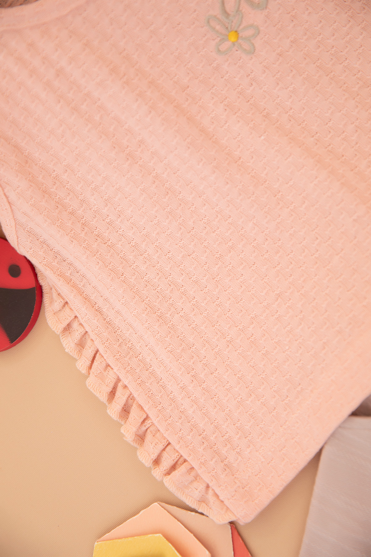 Kız Çocuk Çiçek Nakışlı Jakarlı Şortlu Takım - 25557 (3-6 Yaş)