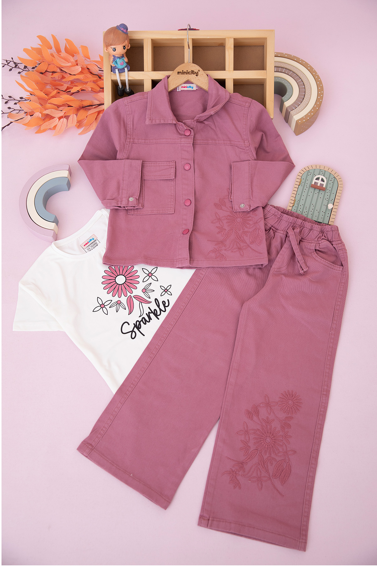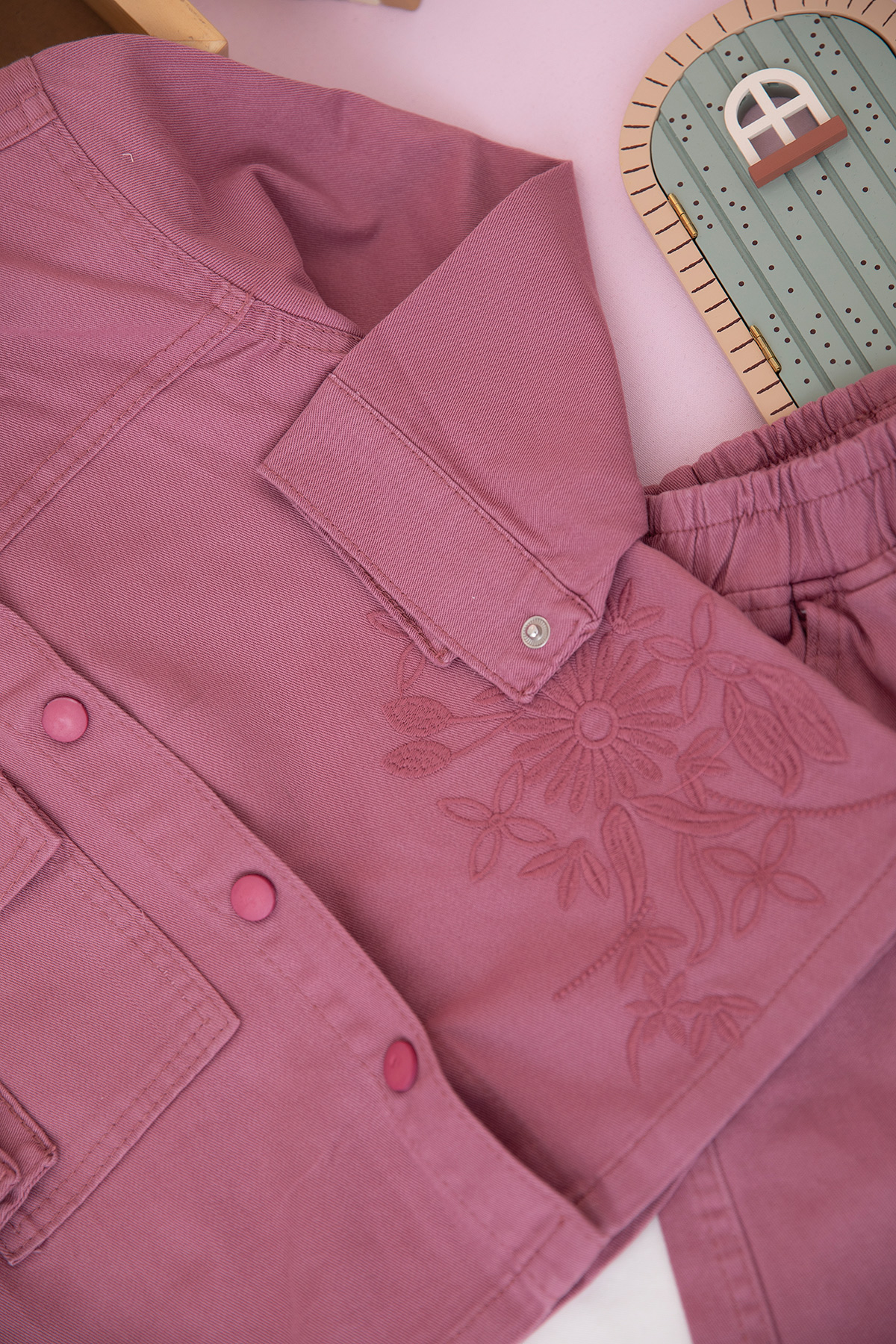 Kız Çocuk Çiçek Nakışlı Montlu Takım - 70725 (5-12 Yaş)