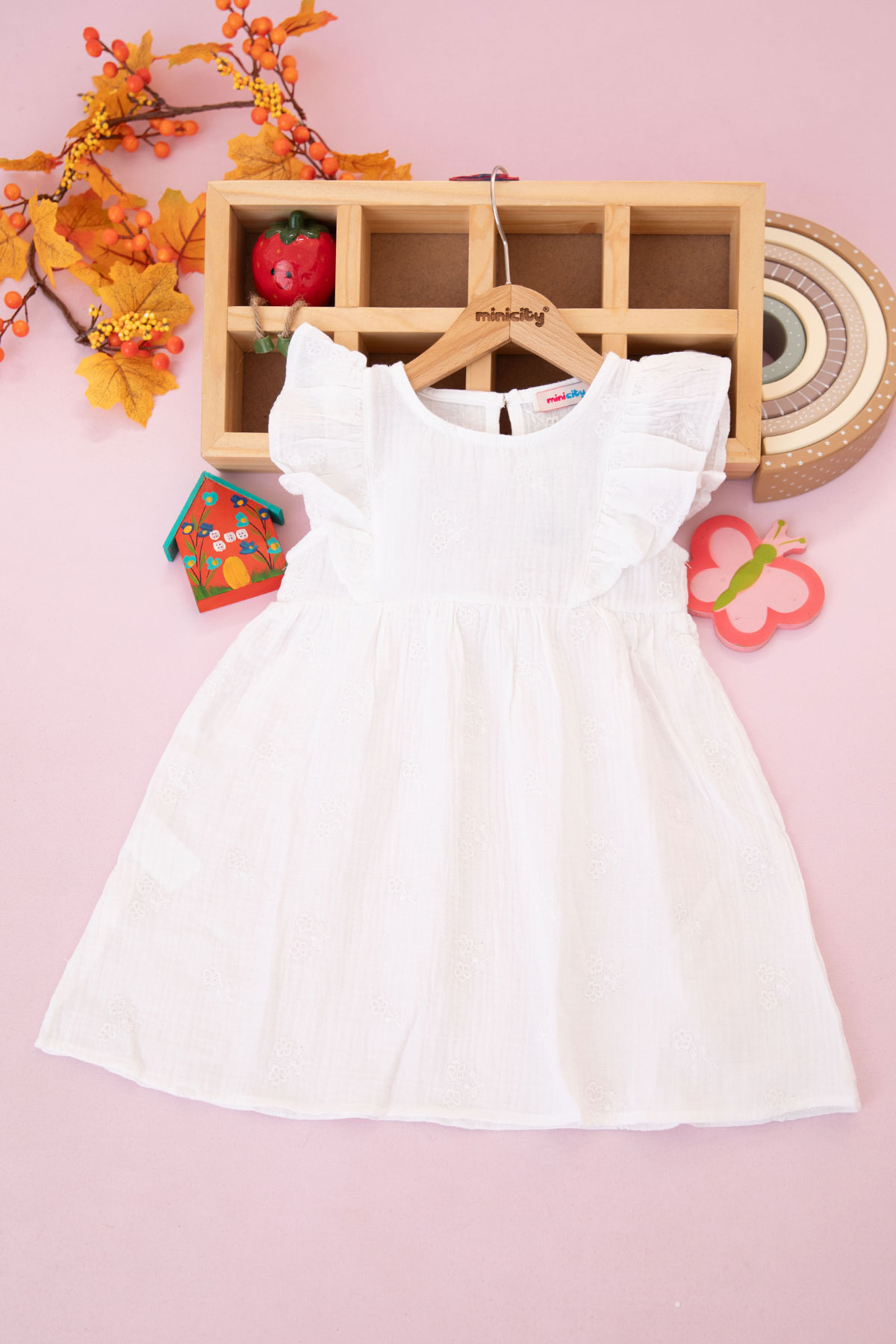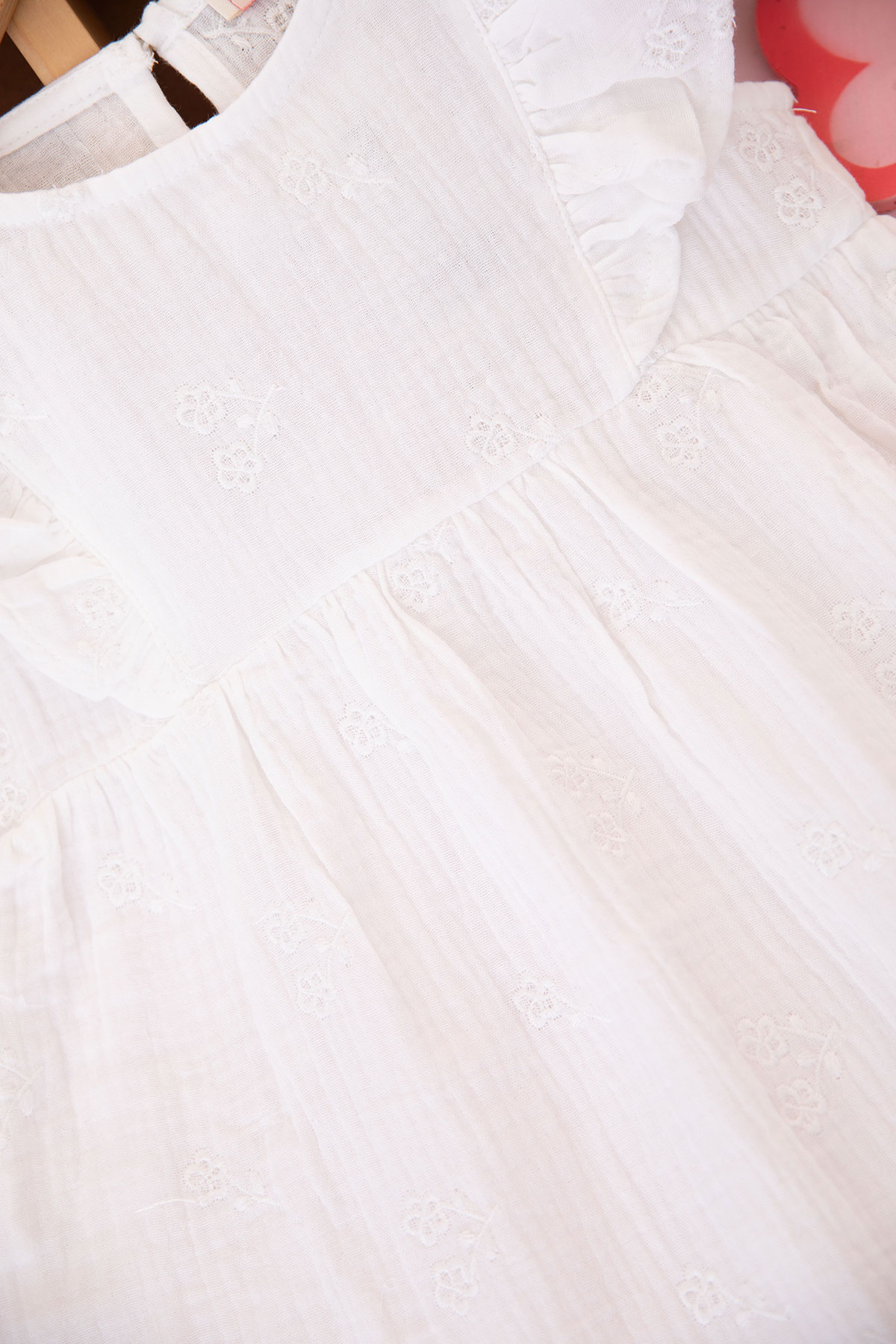 Kız Çocuk Çiçek Nakışlı Müslin Elbise - 7704 (3-7 Yaş)