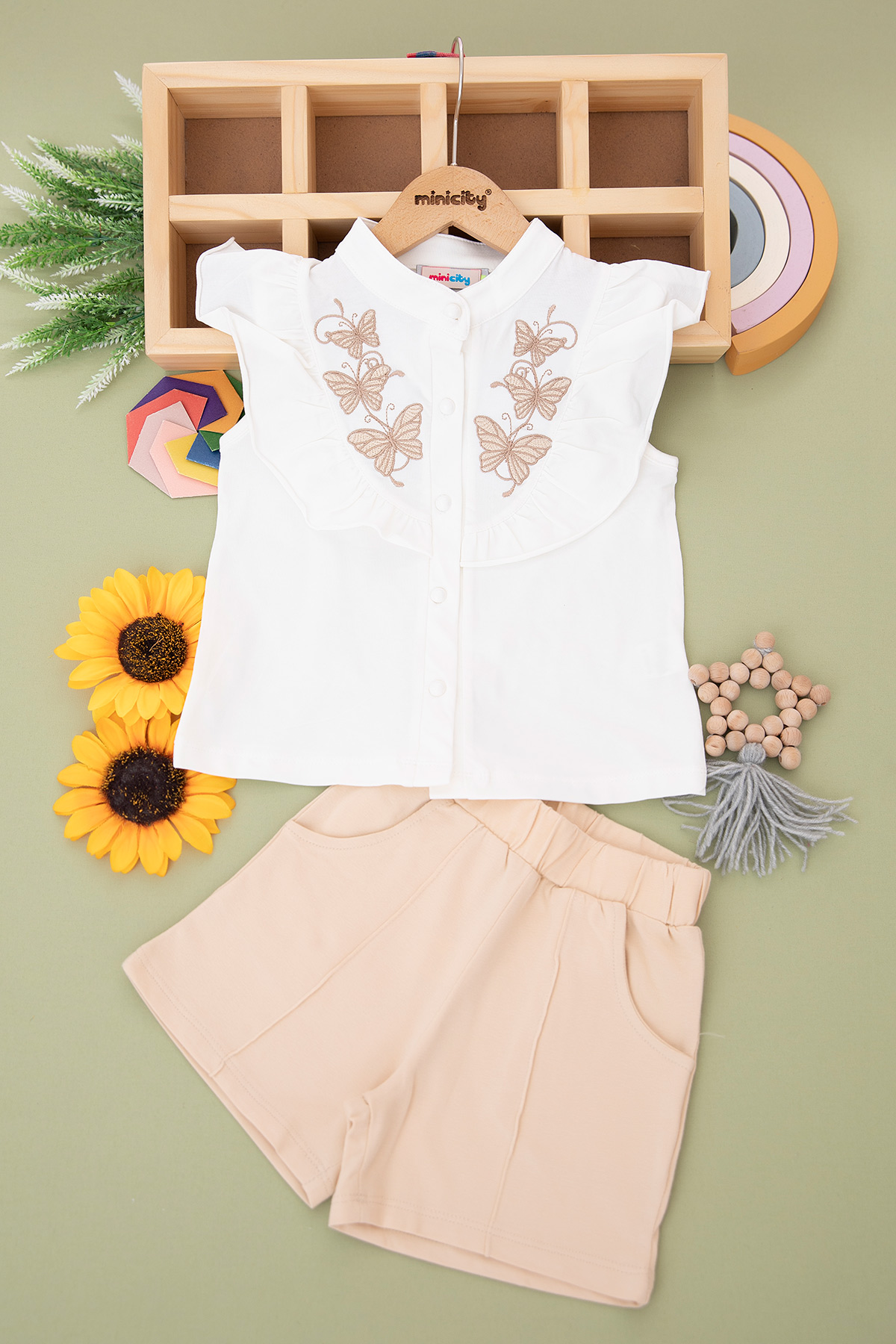 Kız Çocuk Çiçek Nakışlı Şortlu Takım - 806 (4-8 Yaş)
