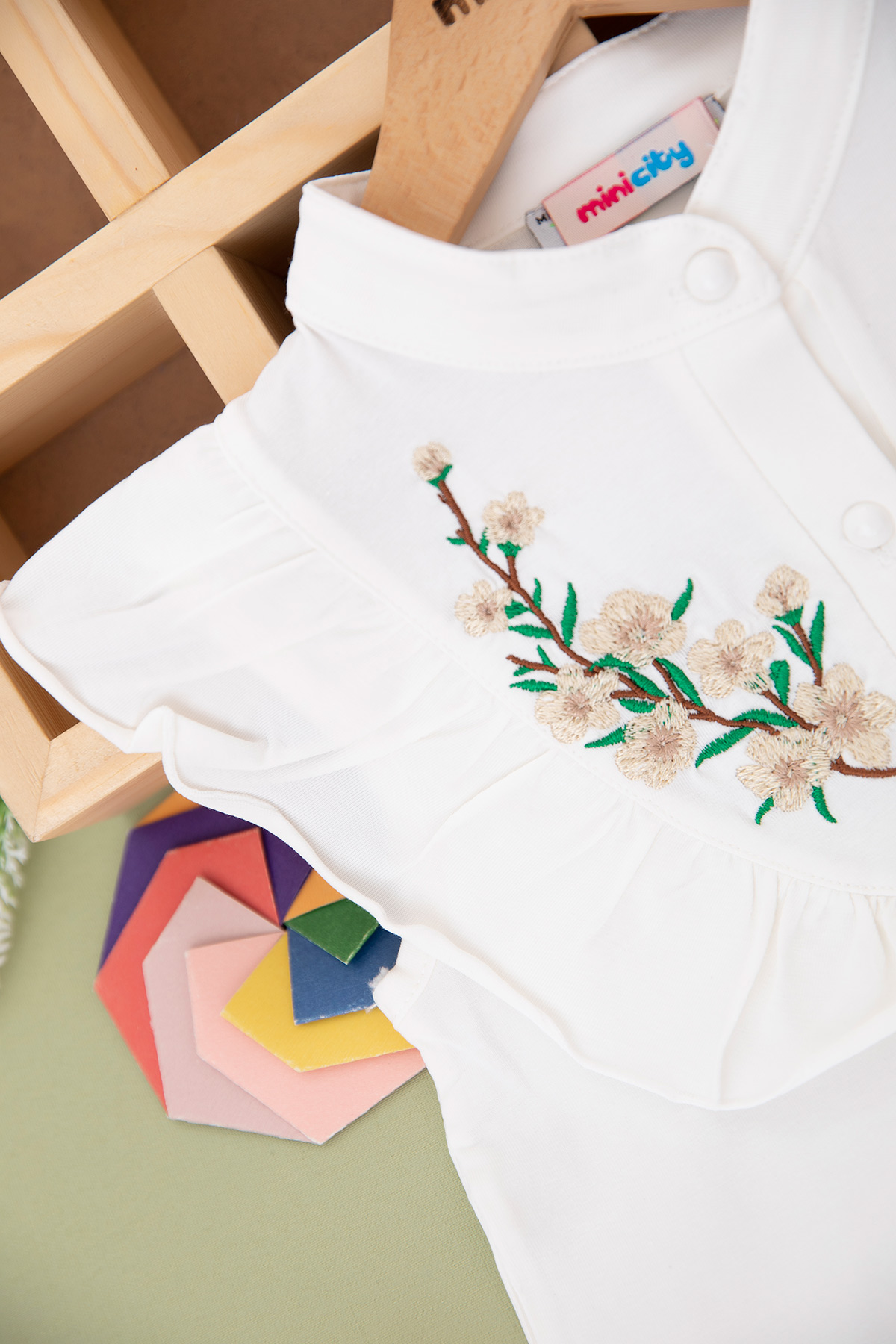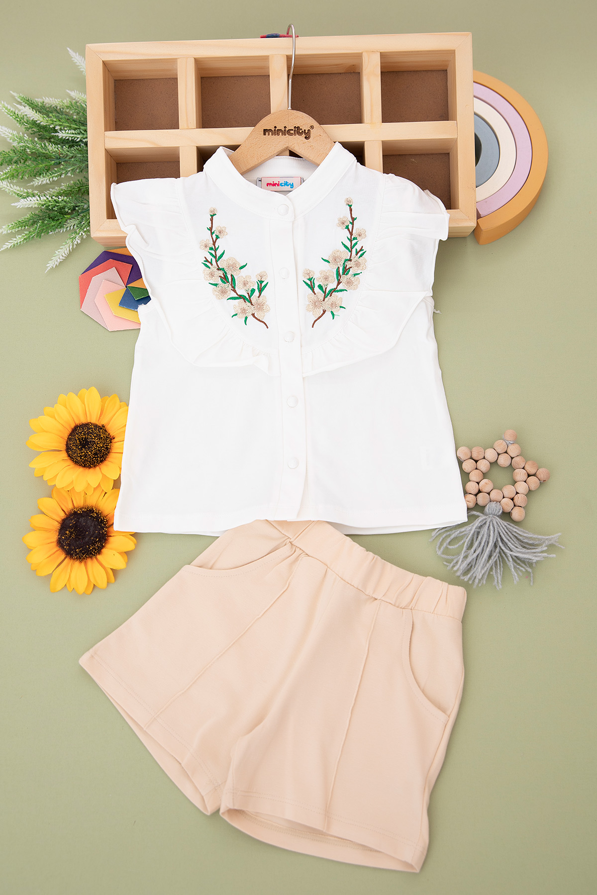Kız Çocuk Çiçek Nakışlı Şortlu Takım - 806 (4-8 Yaş)