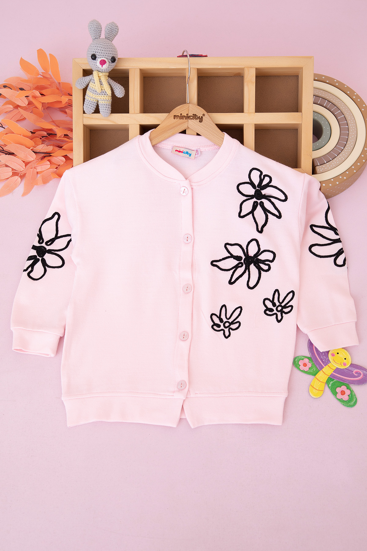 Kız Çocuk Çiçek Nakışlı Triko Hırka - 60915 (5-12 Yaş)