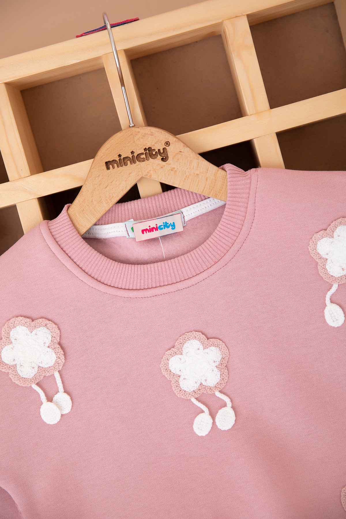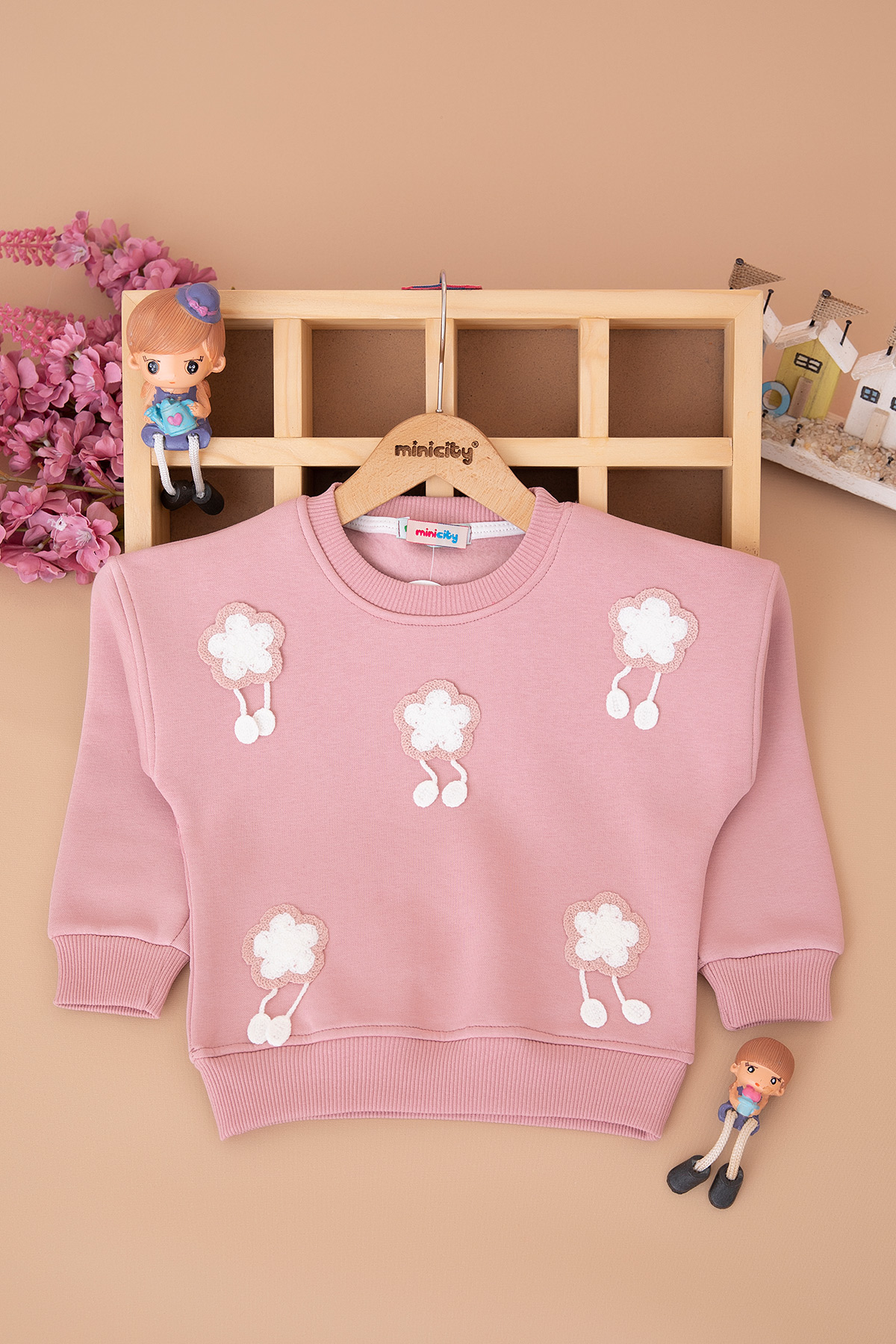 Kız Çocuk Çiçek Nakışlı Üçip Sweat - 4065 (3-7 Yaş)