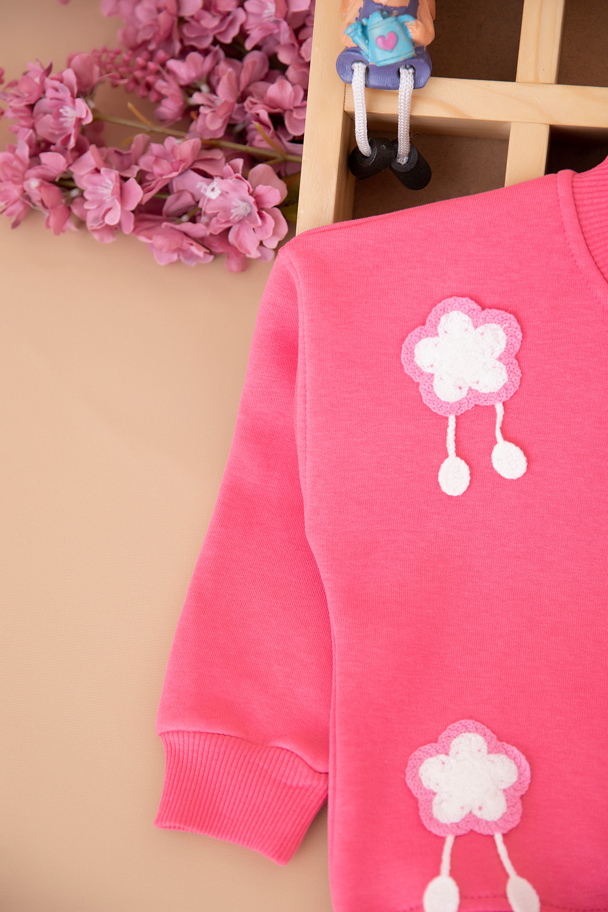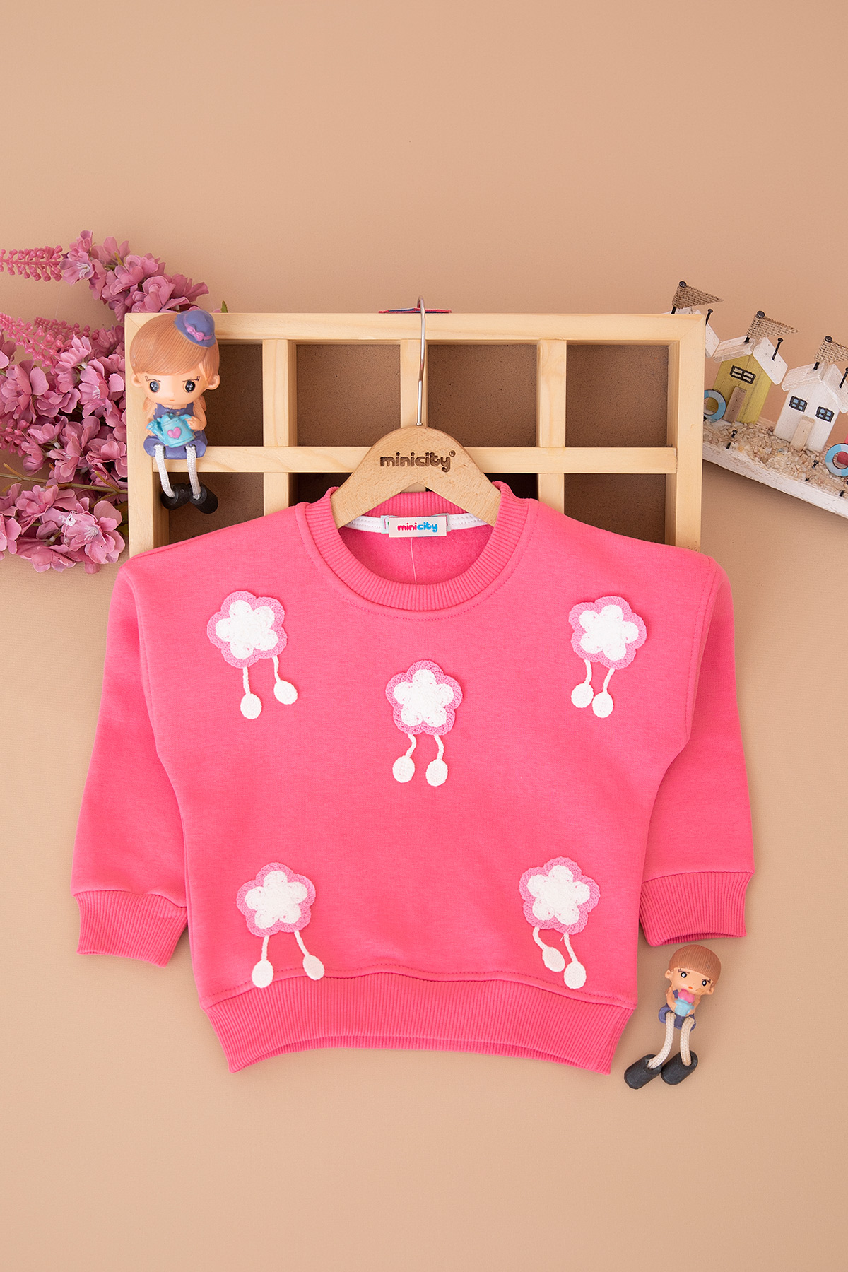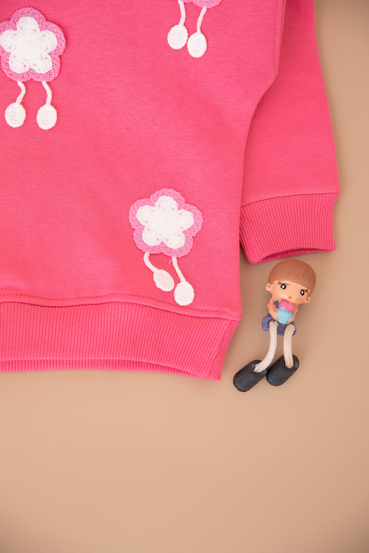 Kız Çocuk Çiçek Nakışlı Üçip Sweat - 4065 (3-7 Yaş)