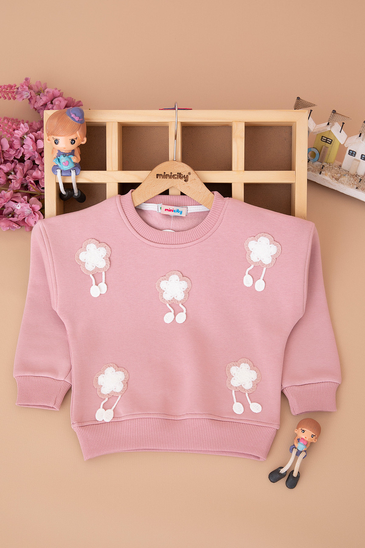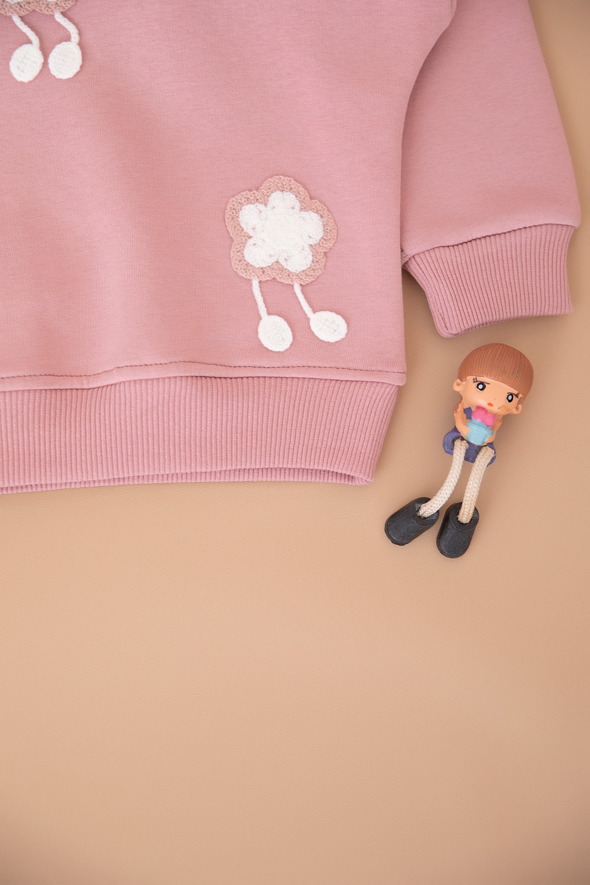 Kız Çocuk Çiçek Nakışlı Üçip Sweat - 4066 (8-12 Yaş)