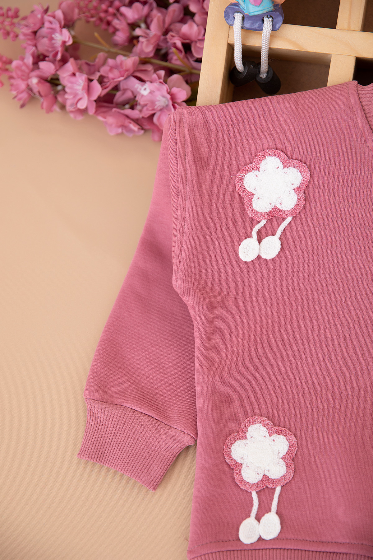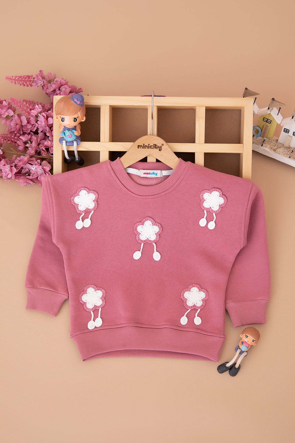 Kız Çocuk Çiçek Nakışlı Üçip Sweat - 4066 (8-12 Yaş)