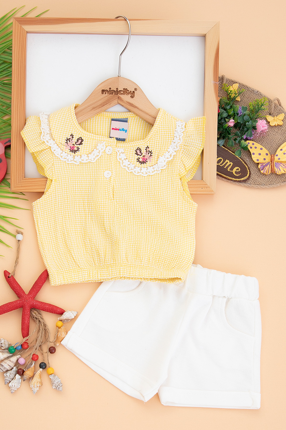 Kız Çocuk Çiçek Nakışlı Yakalı Takım - 24346 (7-10 Yaş)