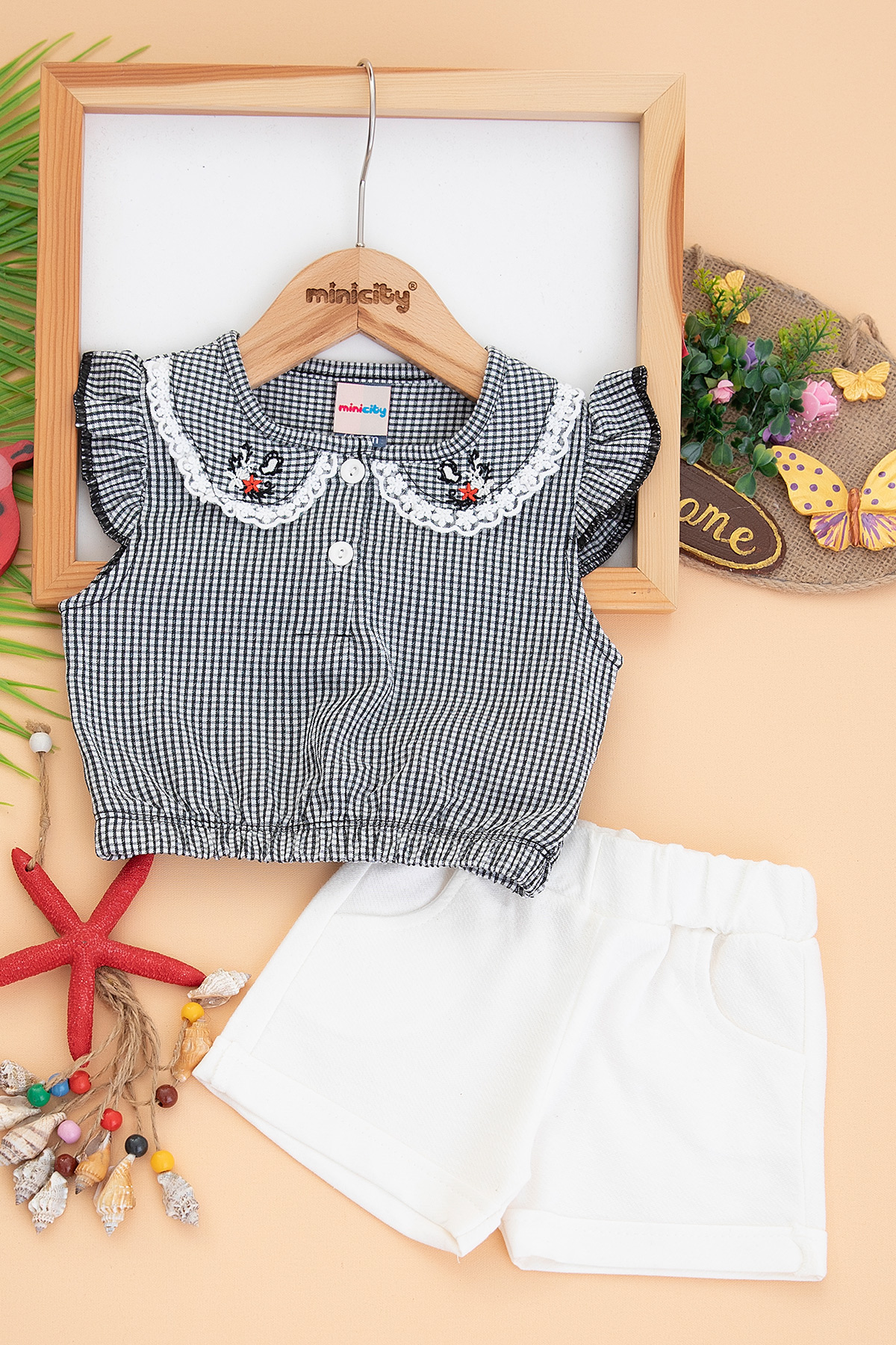 Kız Çocuk Çiçek Nakışlı Yakalı Takım - 24346 (7-10 Yaş)