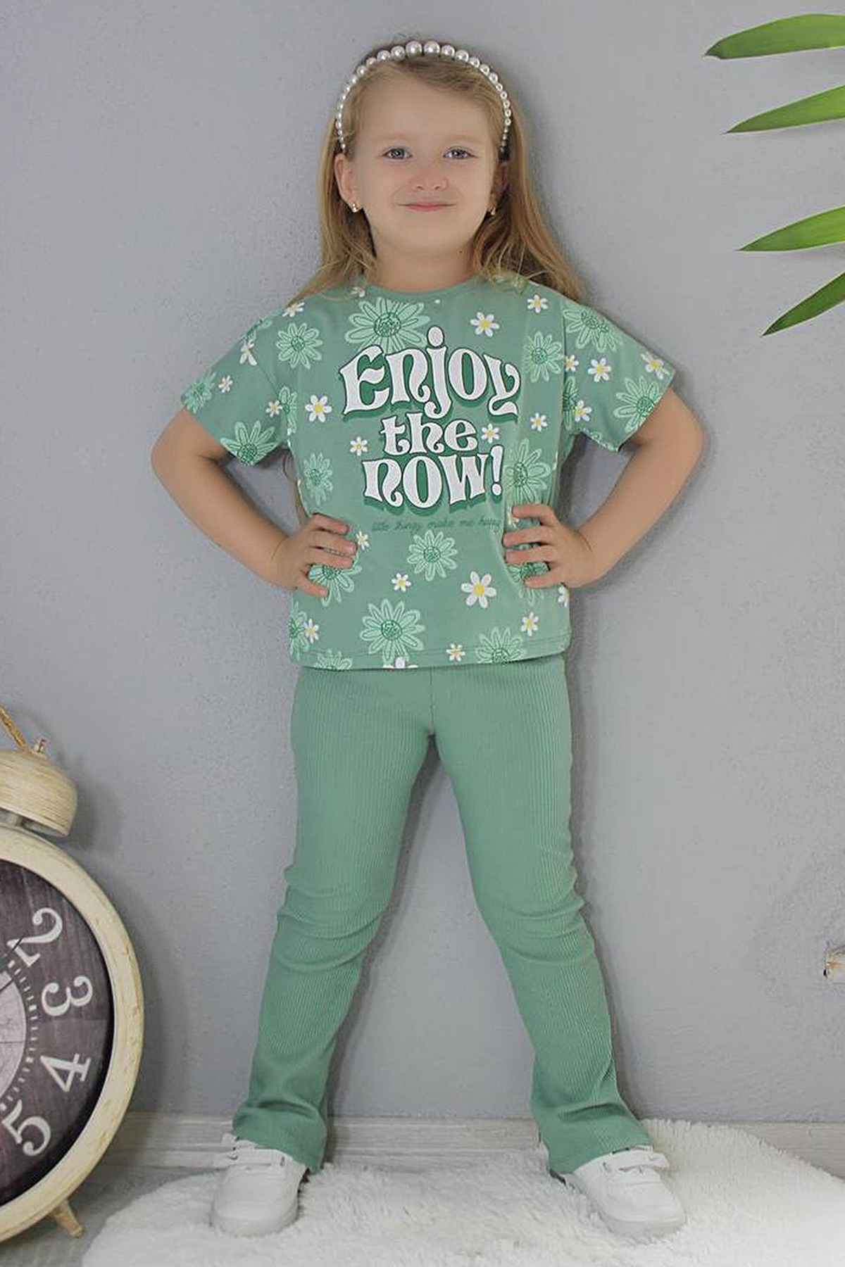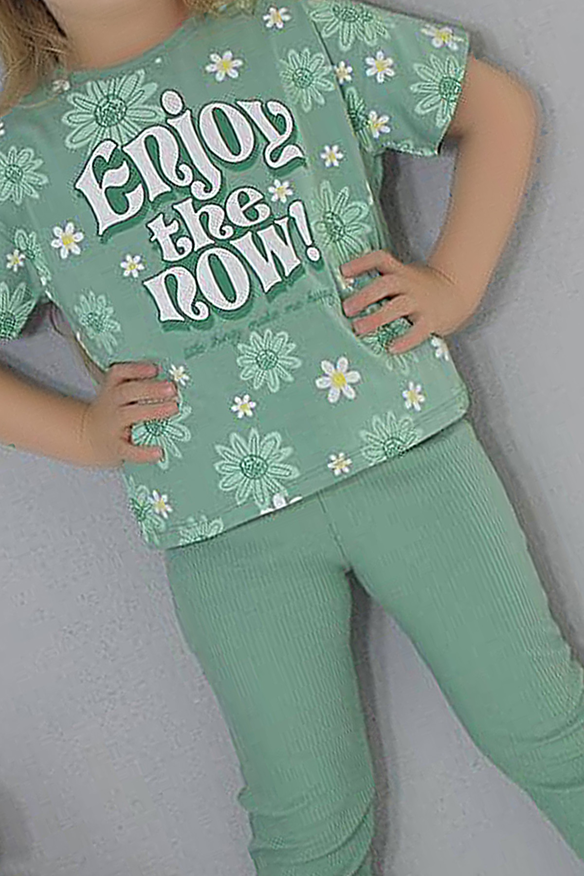 Kız Çocuk Çiçek Pano Baskılı Kısa Kol İspanyol Paça Takım - 6279 (3-10 Yaş)