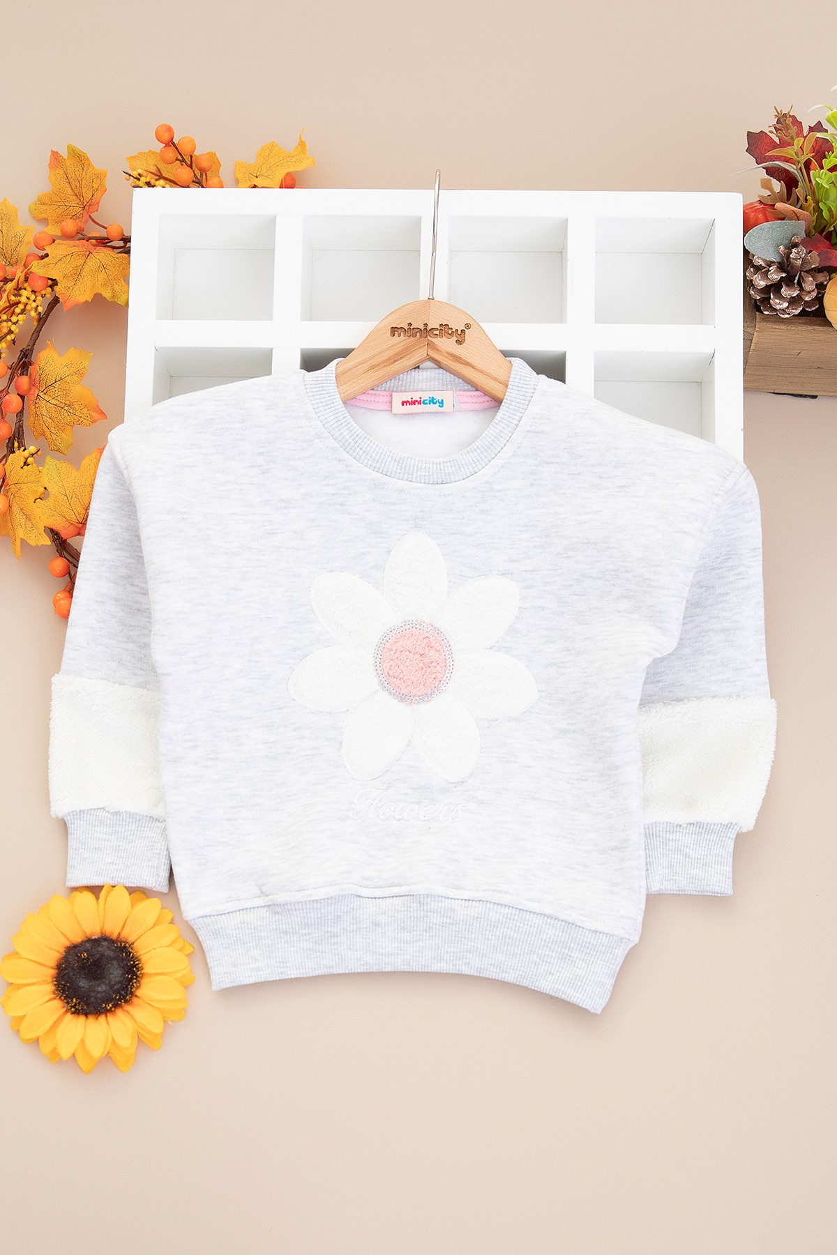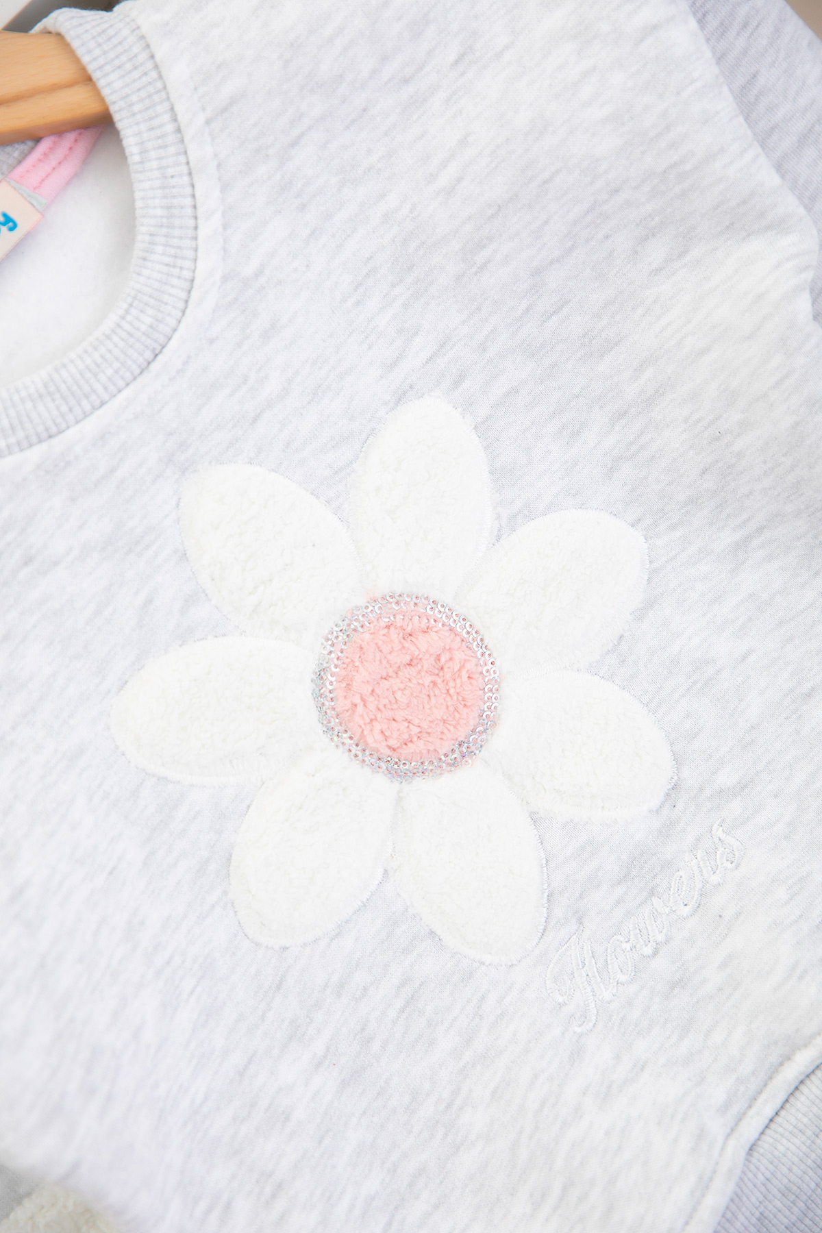 Kız Çocuk Çiçek Peluşlu Üçip Sweat - 4134 (3-7 Yaş)