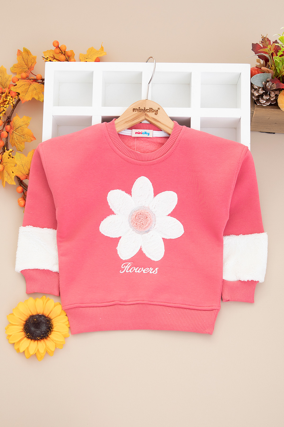 Kız Çocuk Çiçek Peluşlu Üçip Sweat - 4134 (3-7 Yaş)