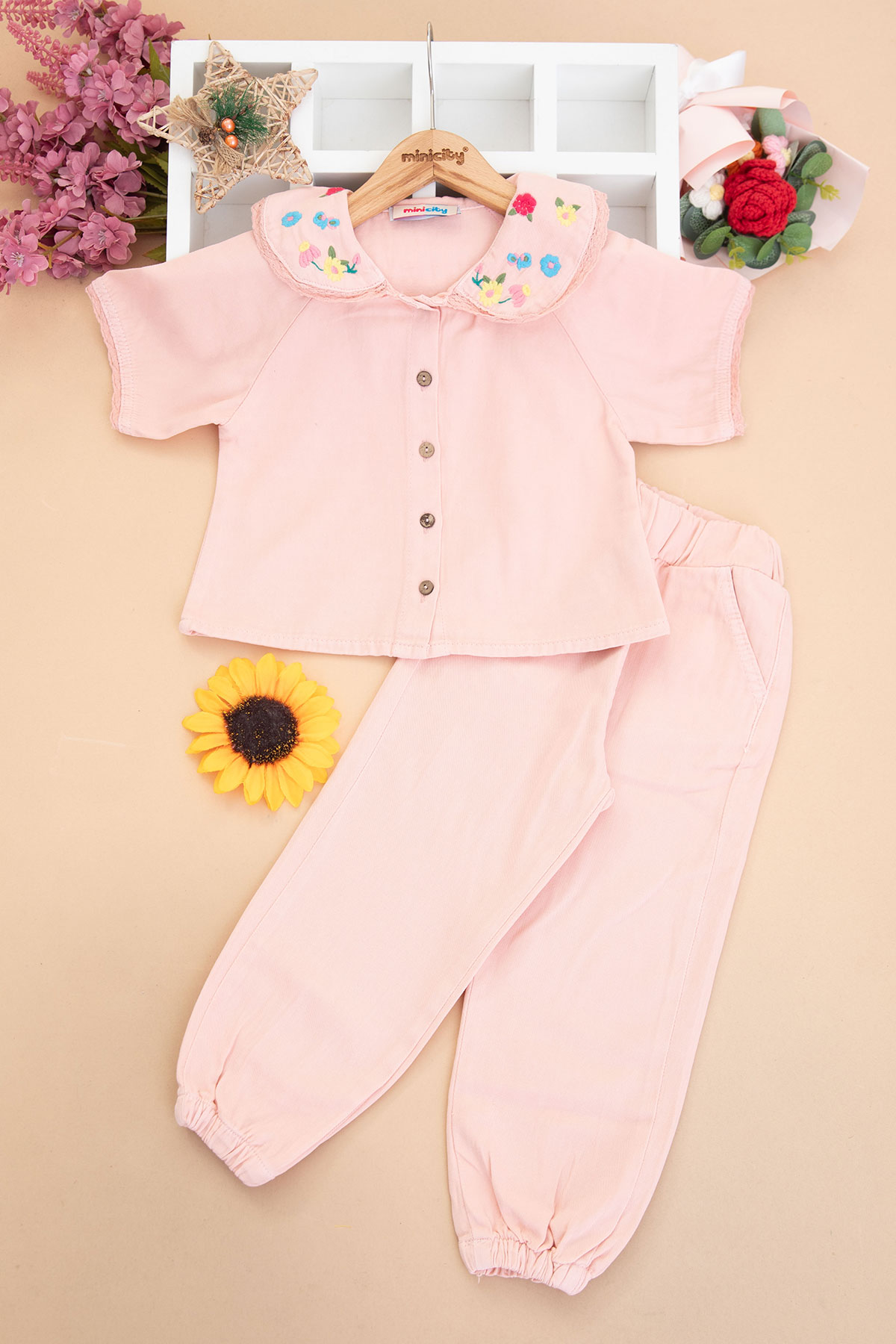 Kız Çocuk Çiçek Yakalı İkili Takım - 5066 (2-8 Yaş)