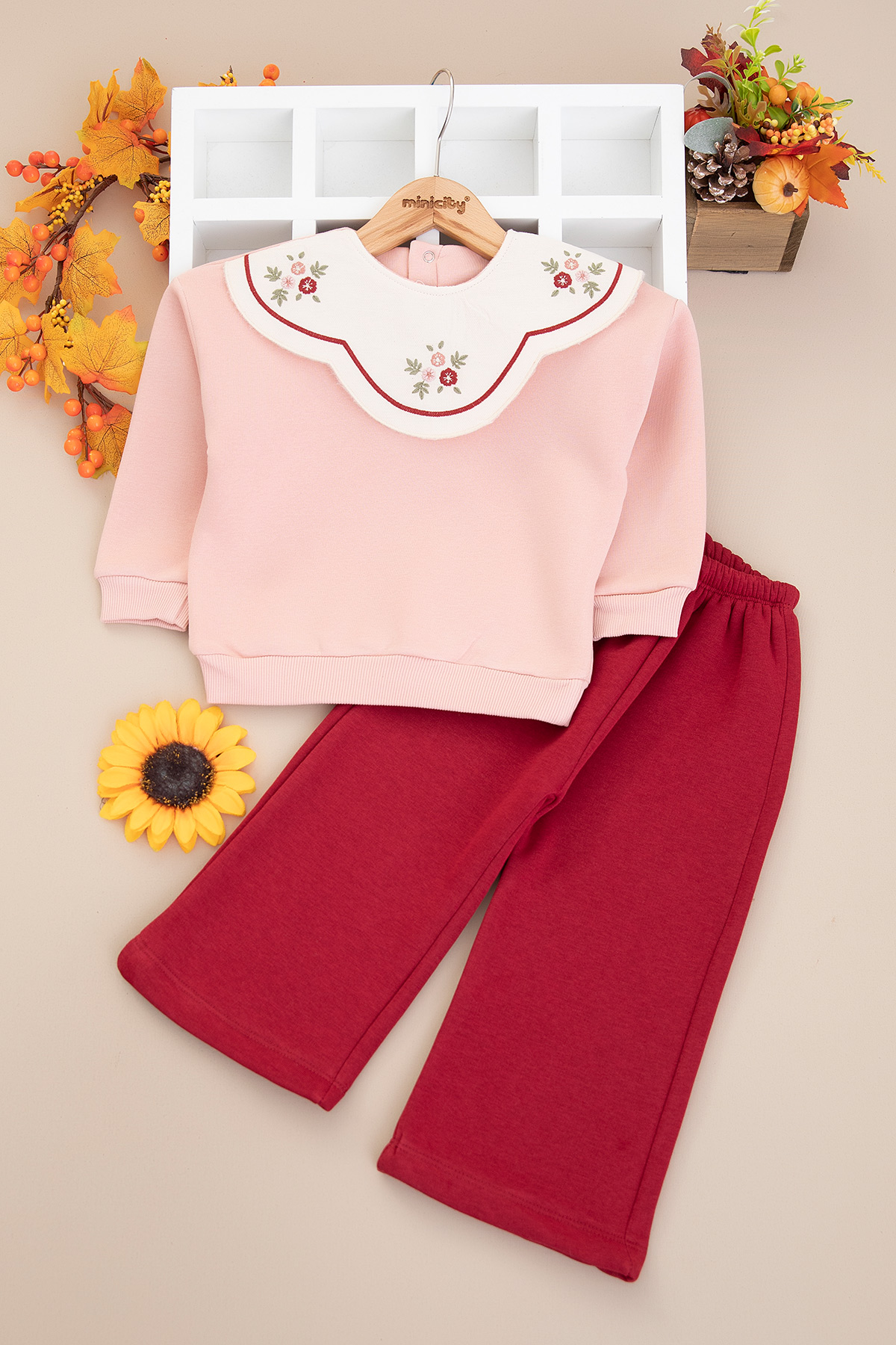 Kız Çocuk Çiçek Yakalı Üçip Takım - 2904 (2-6 Yaş)