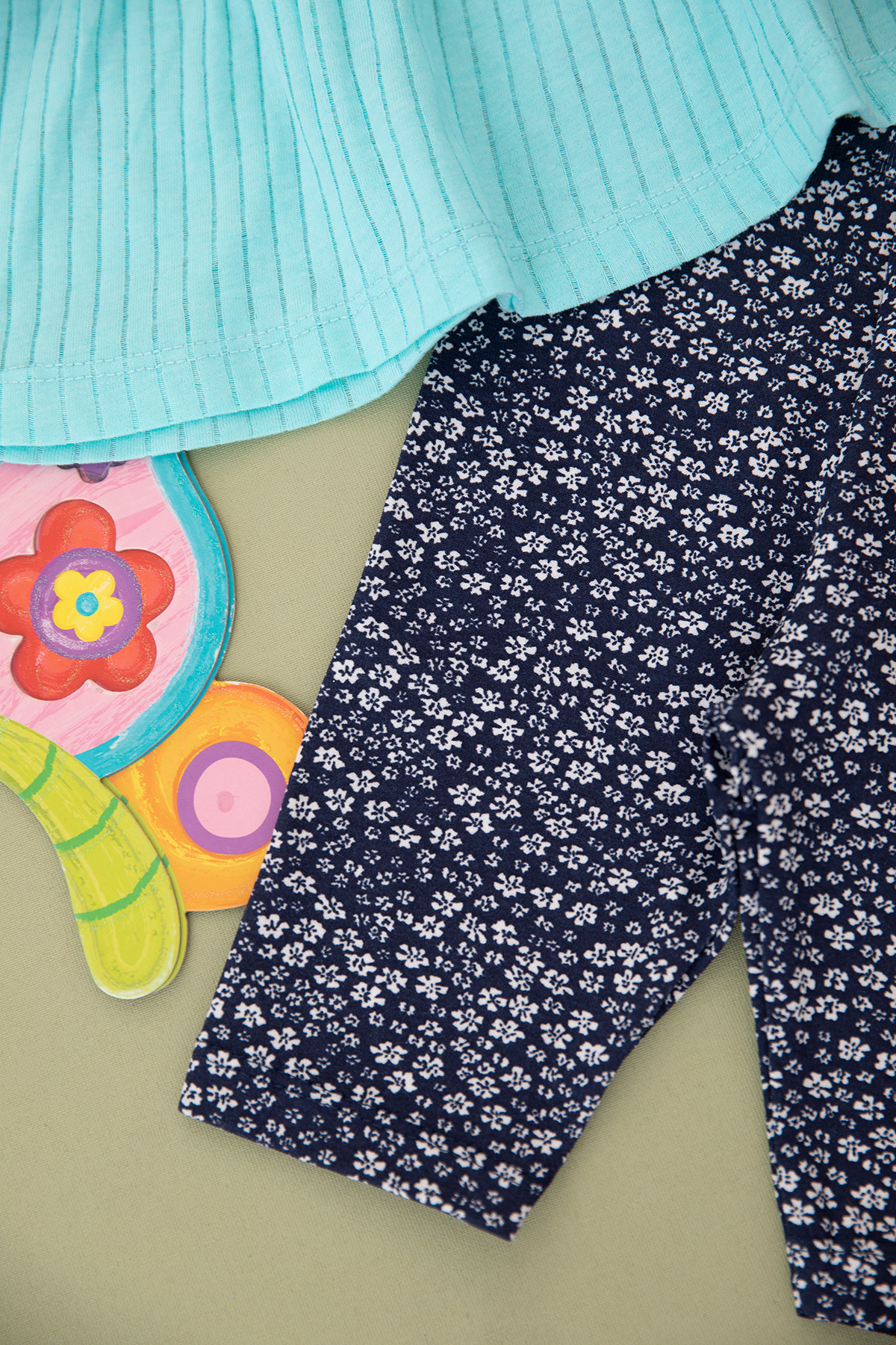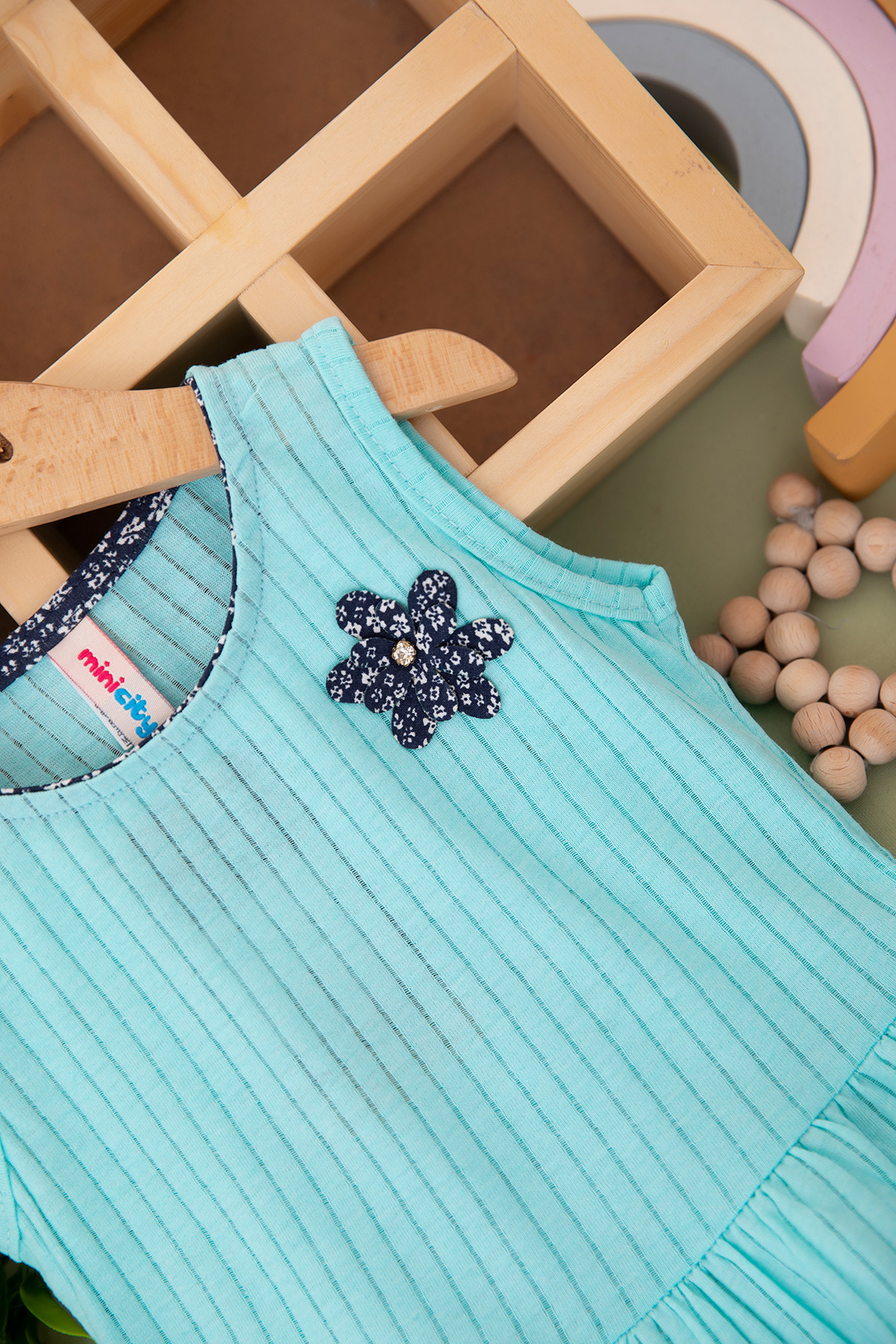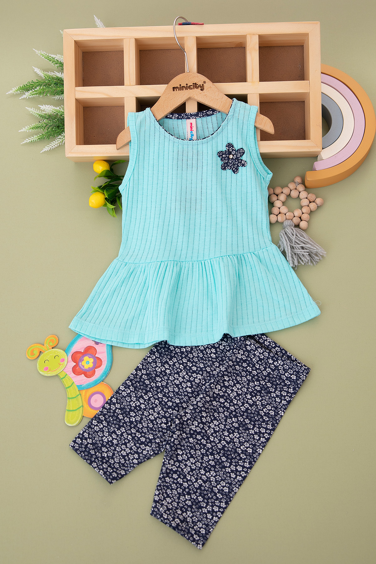 Kız Çocuk Çiçekli Askılı Taytlı Takım - 23306 (1-3 Yaş)