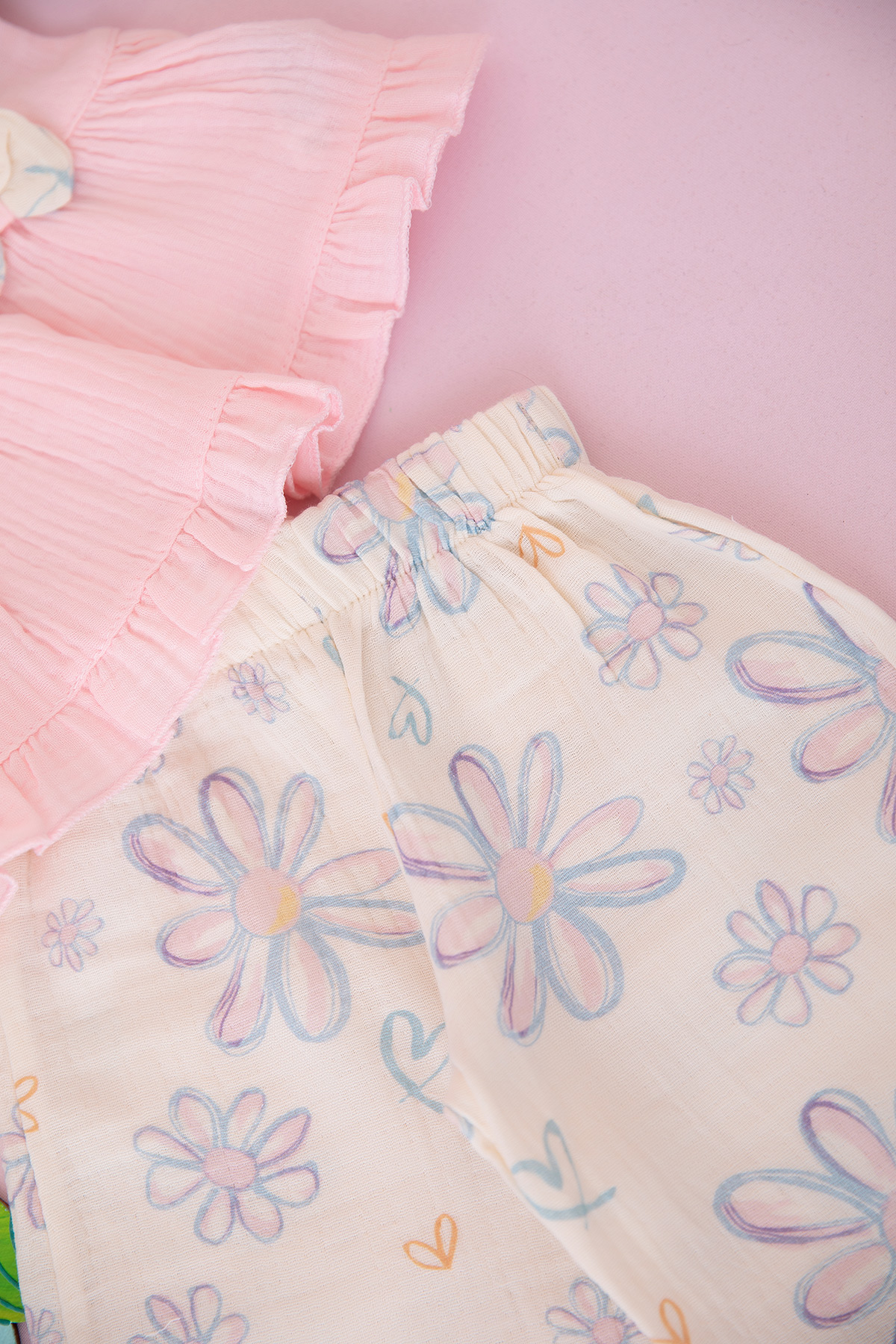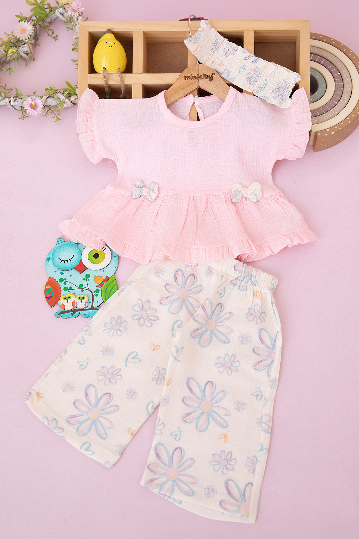 Kız Çocuk Çiçekli Bandanalı Takım - 4354 (1-3 Yaş)