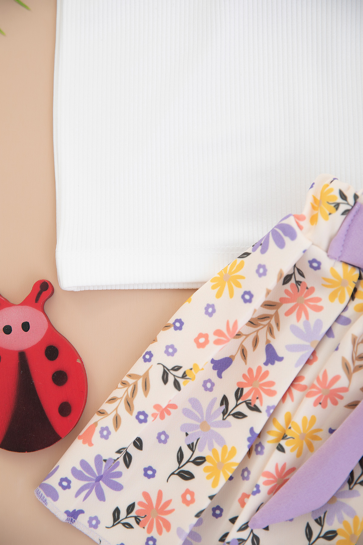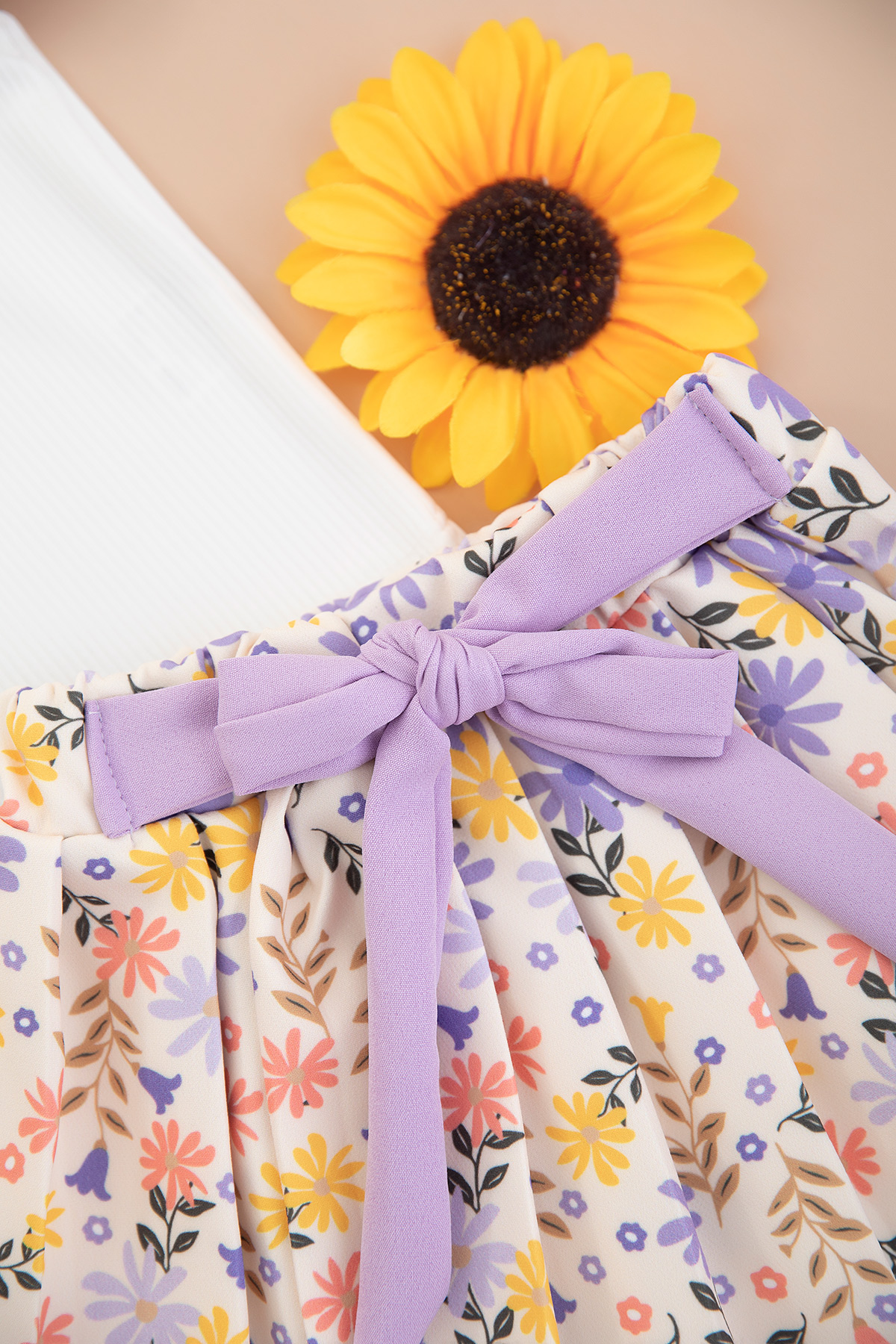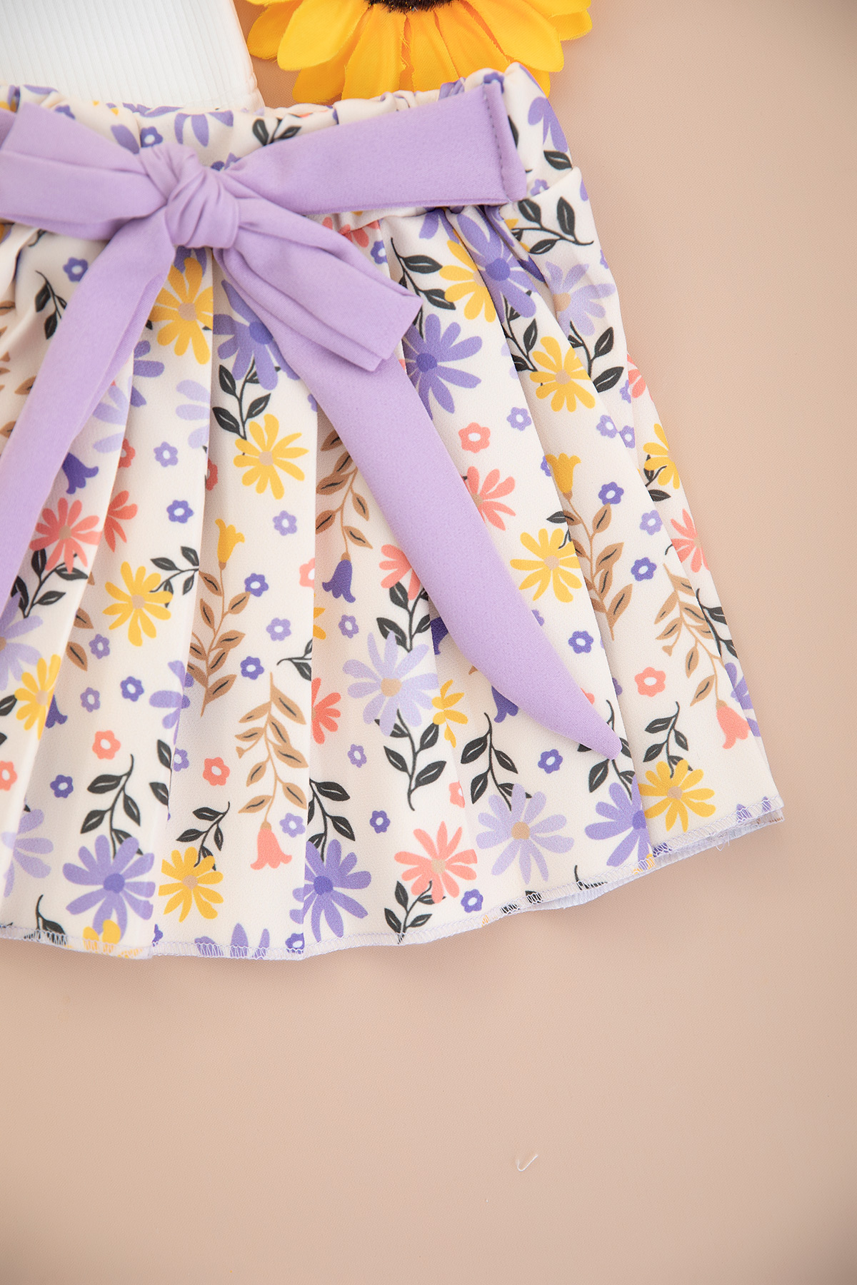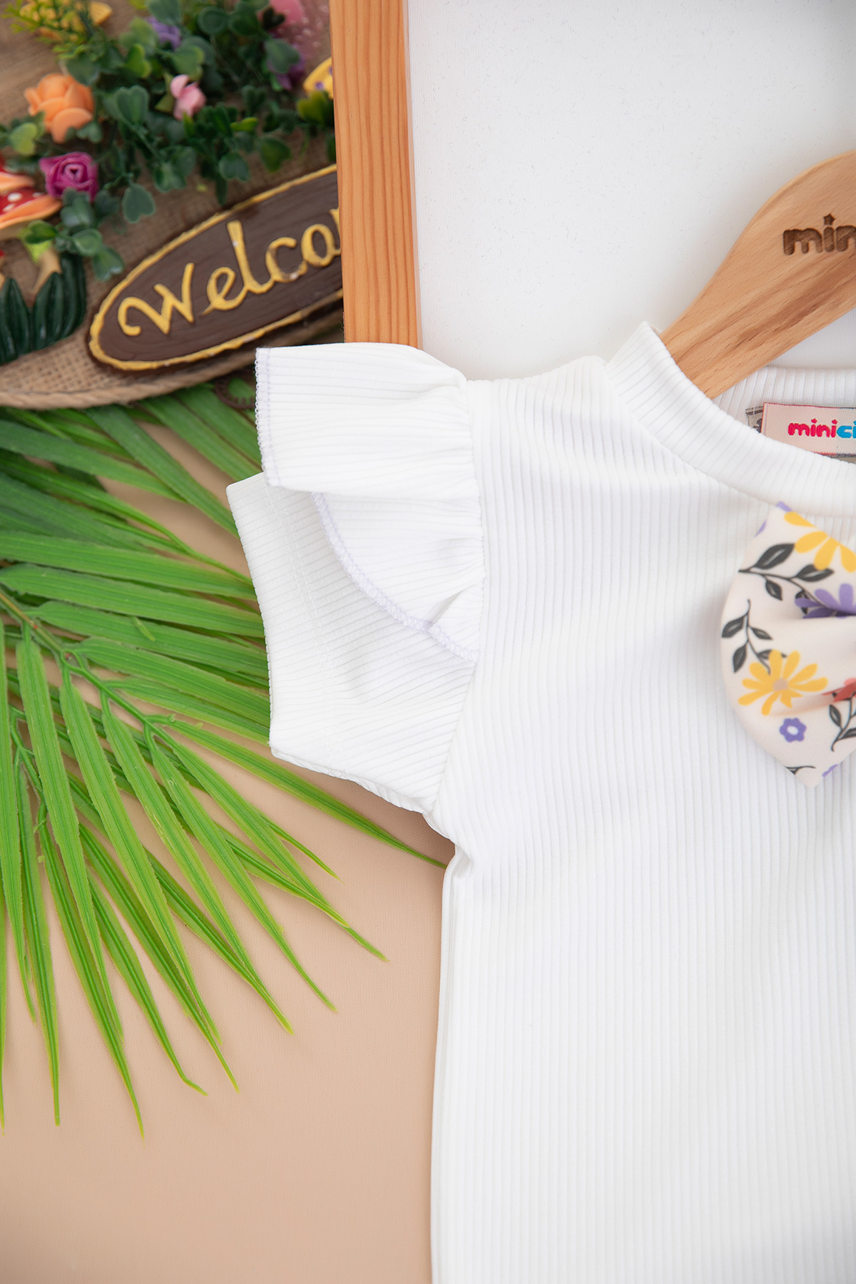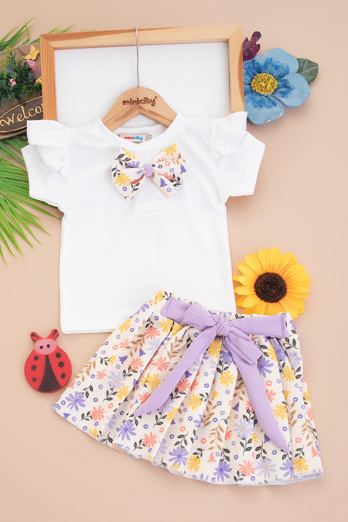 Kız Çocuk Çiçekli Fiyonklu Etekli Takım - 731 (2-5 Yaş)