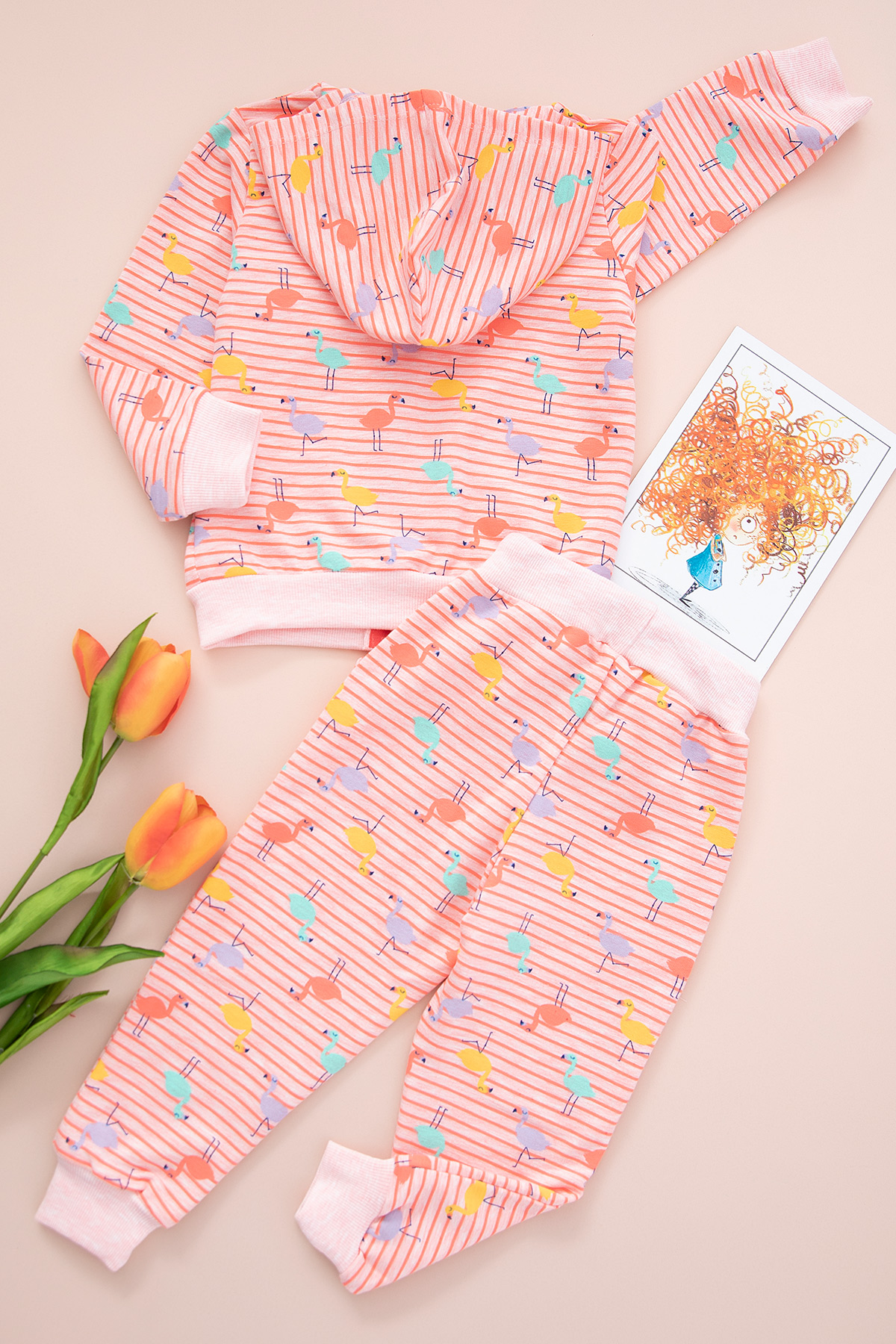 Kız Çocuk Çiçekli Fiyonklu Kapşonlu Takım - 329 (1-8 Yaş)
