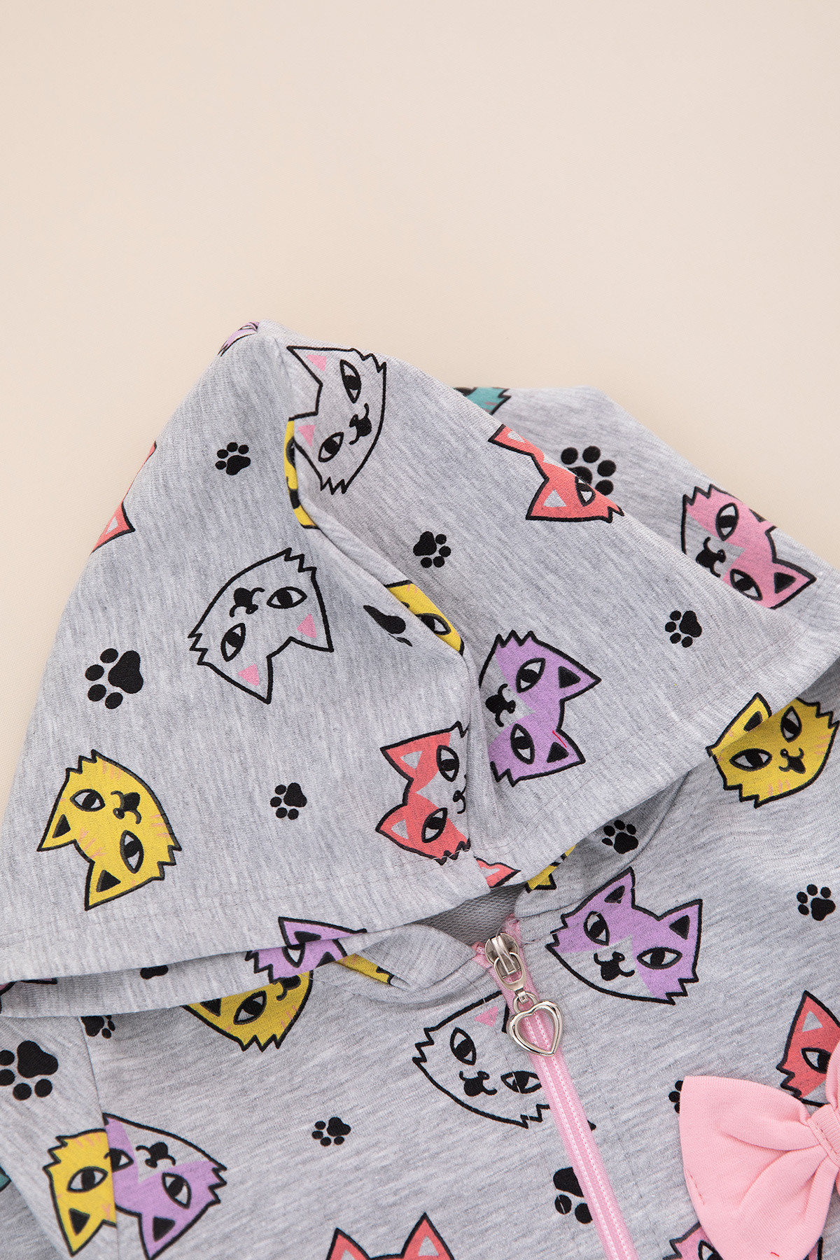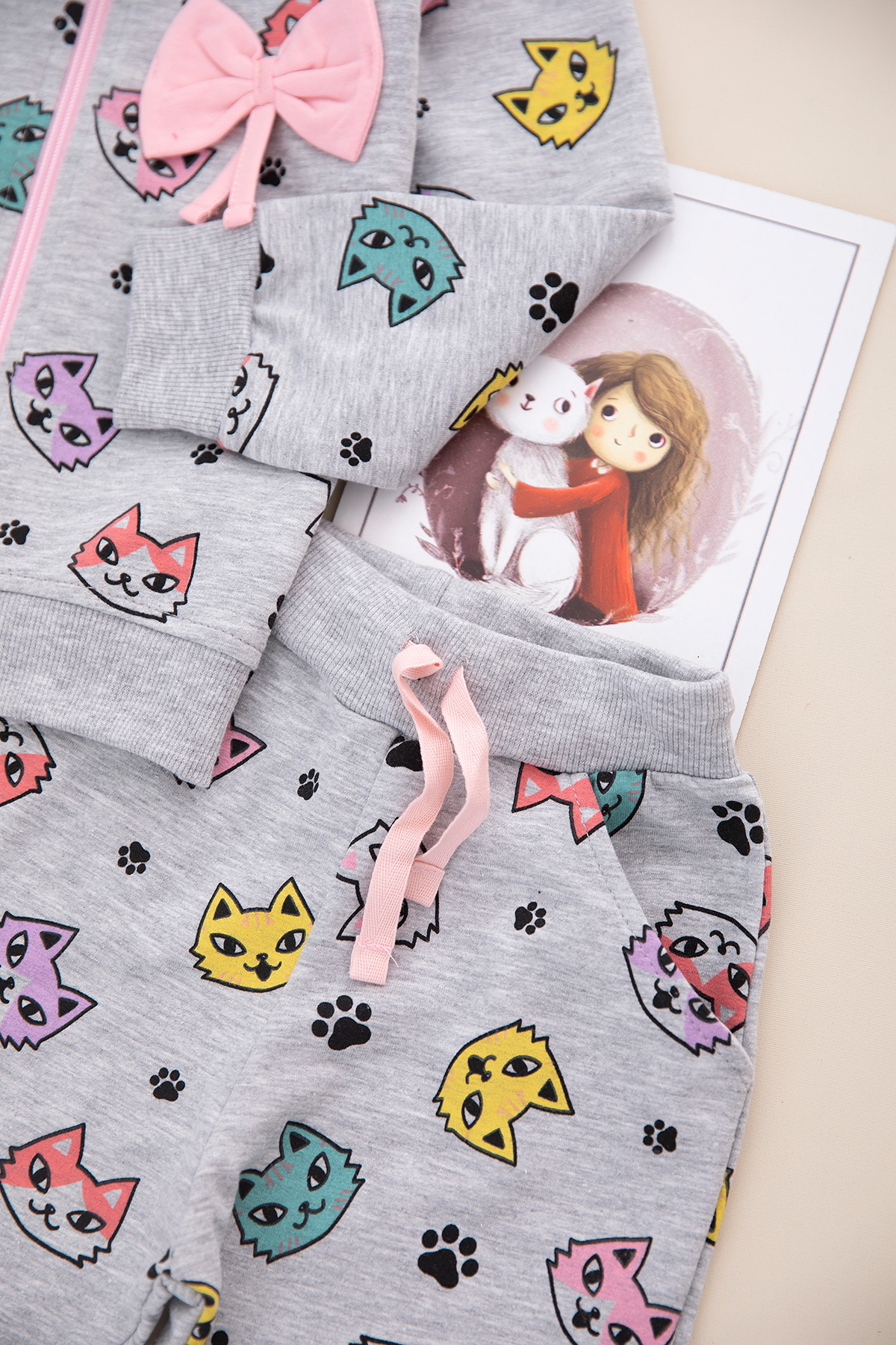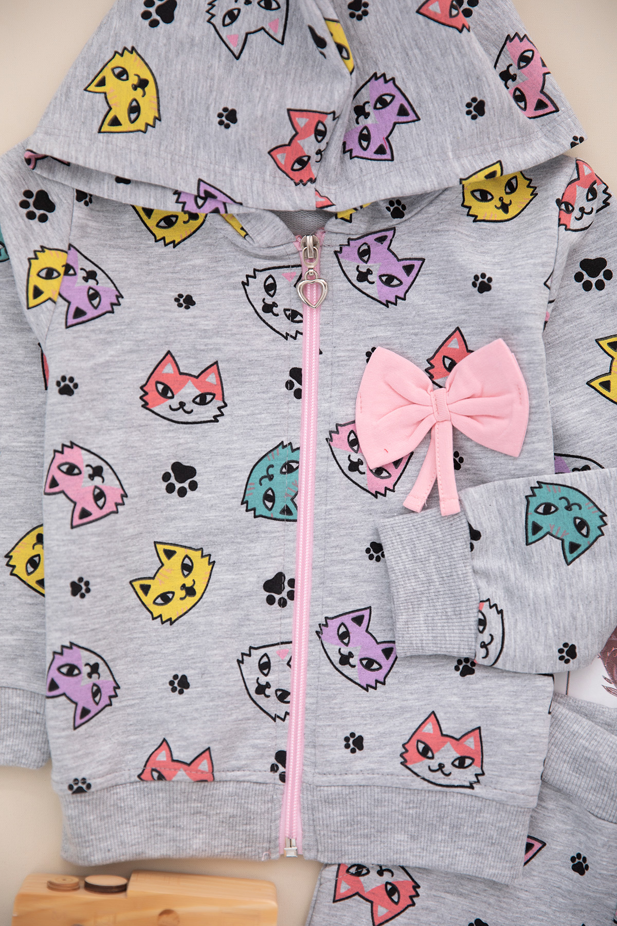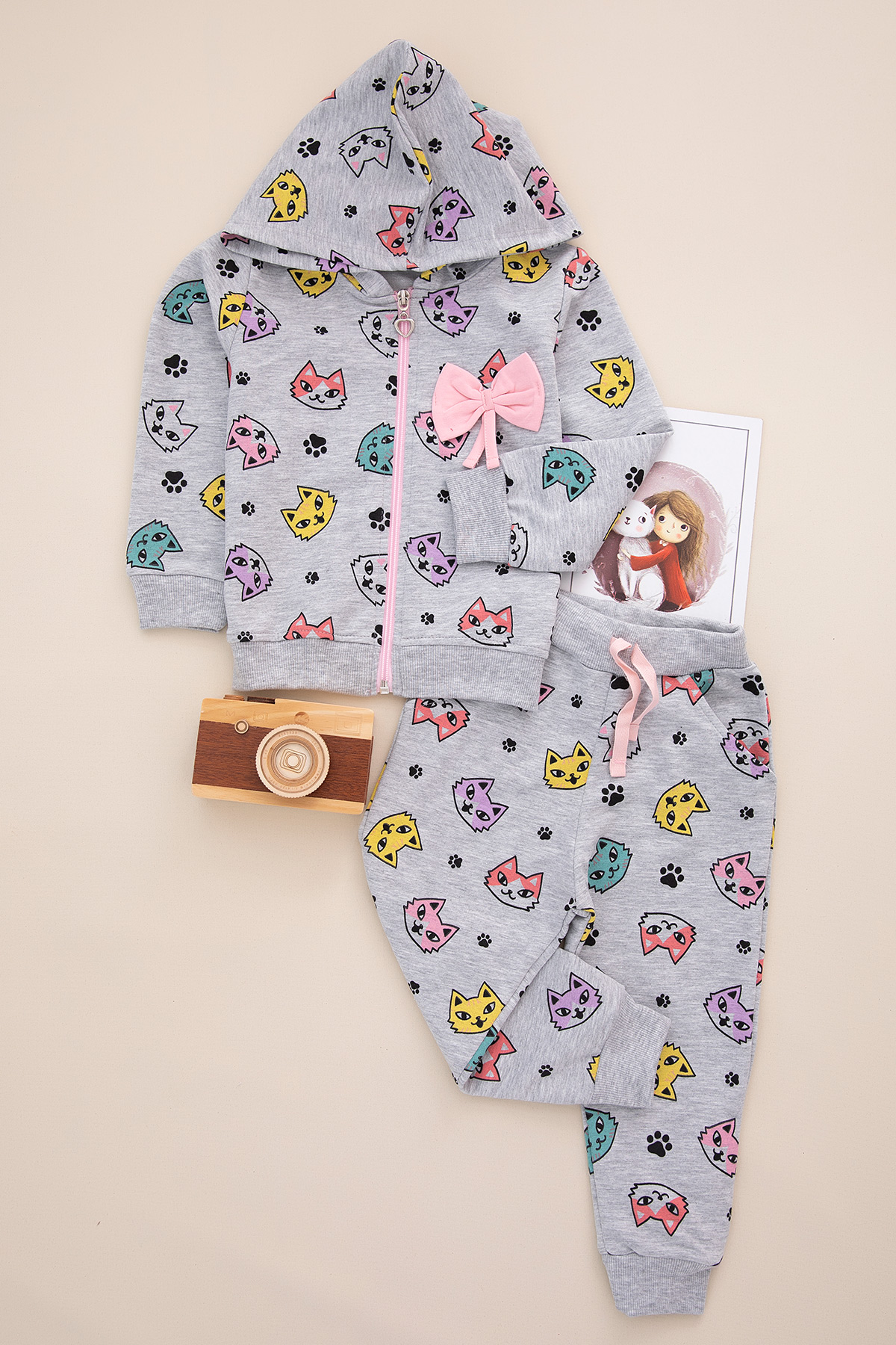 Kız Çocuk Çiçekli Fiyonklu Kapşonlu Takım - 329 (1-8 Yaş)