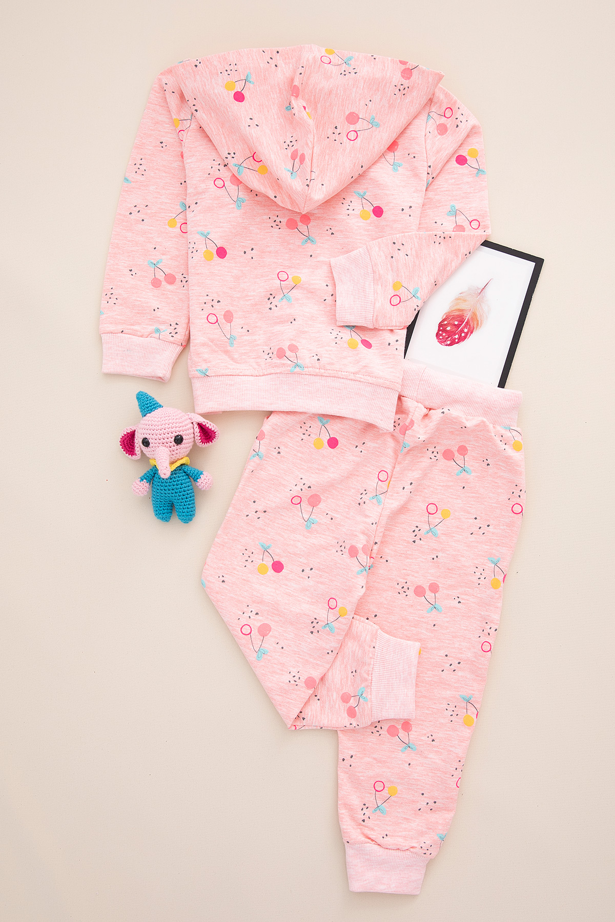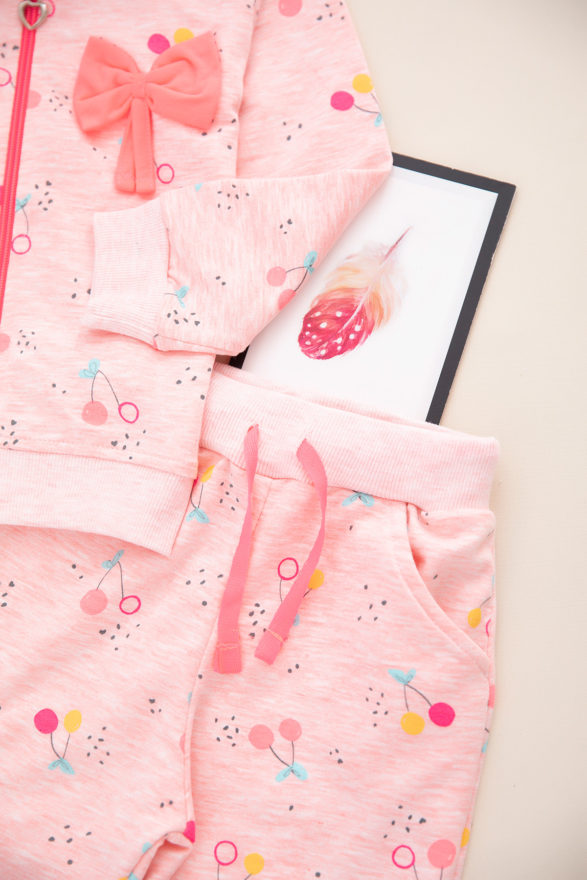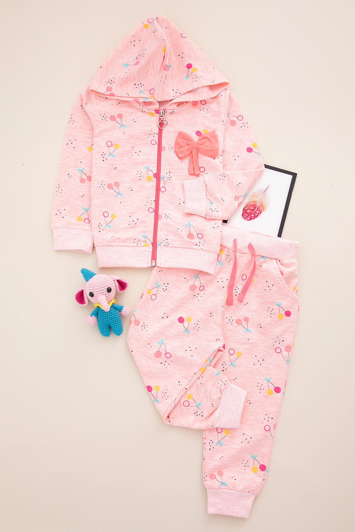 Kız Çocuk Çiçekli Fiyonklu Kapşonlu Takım - 329 (1-8 Yaş)