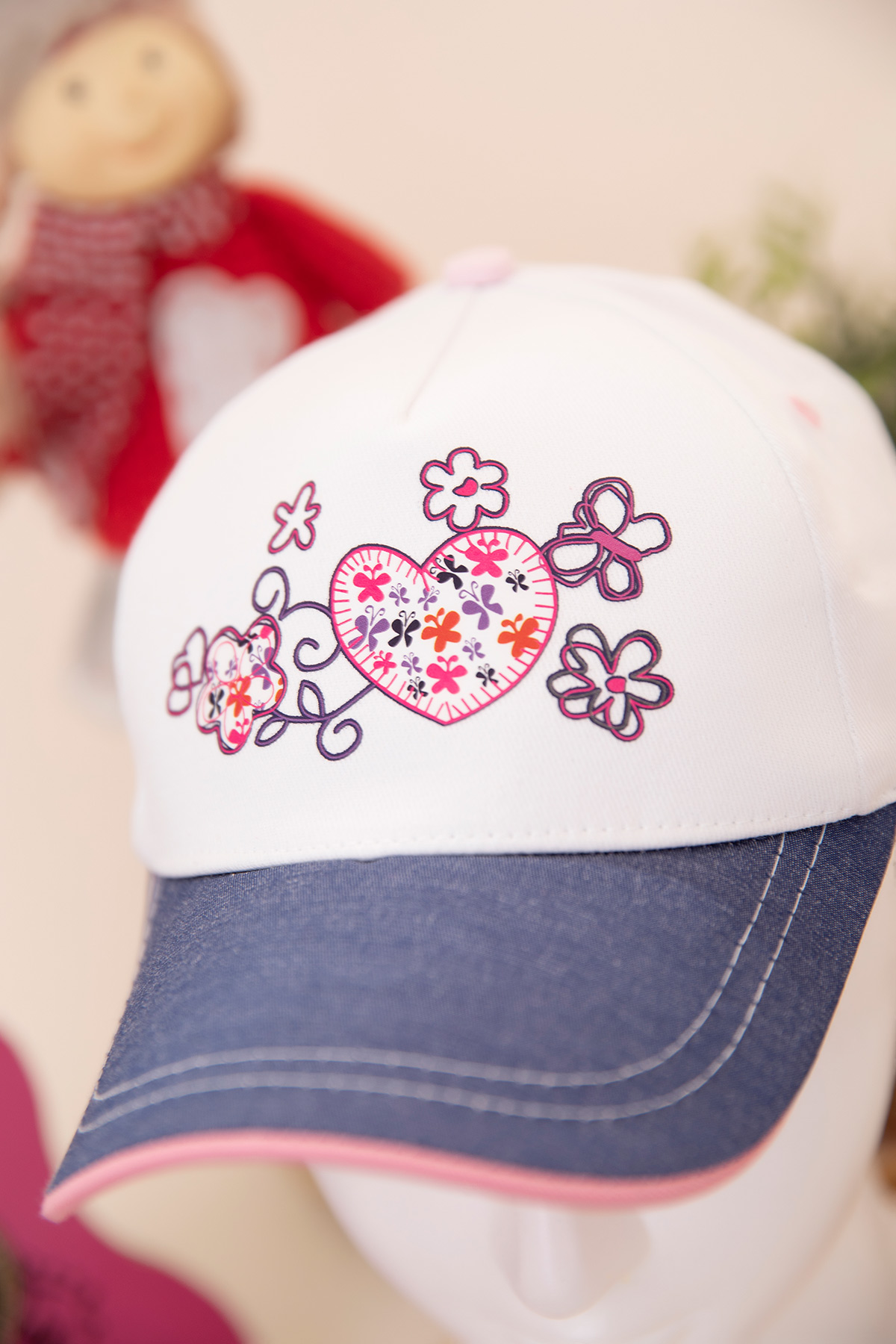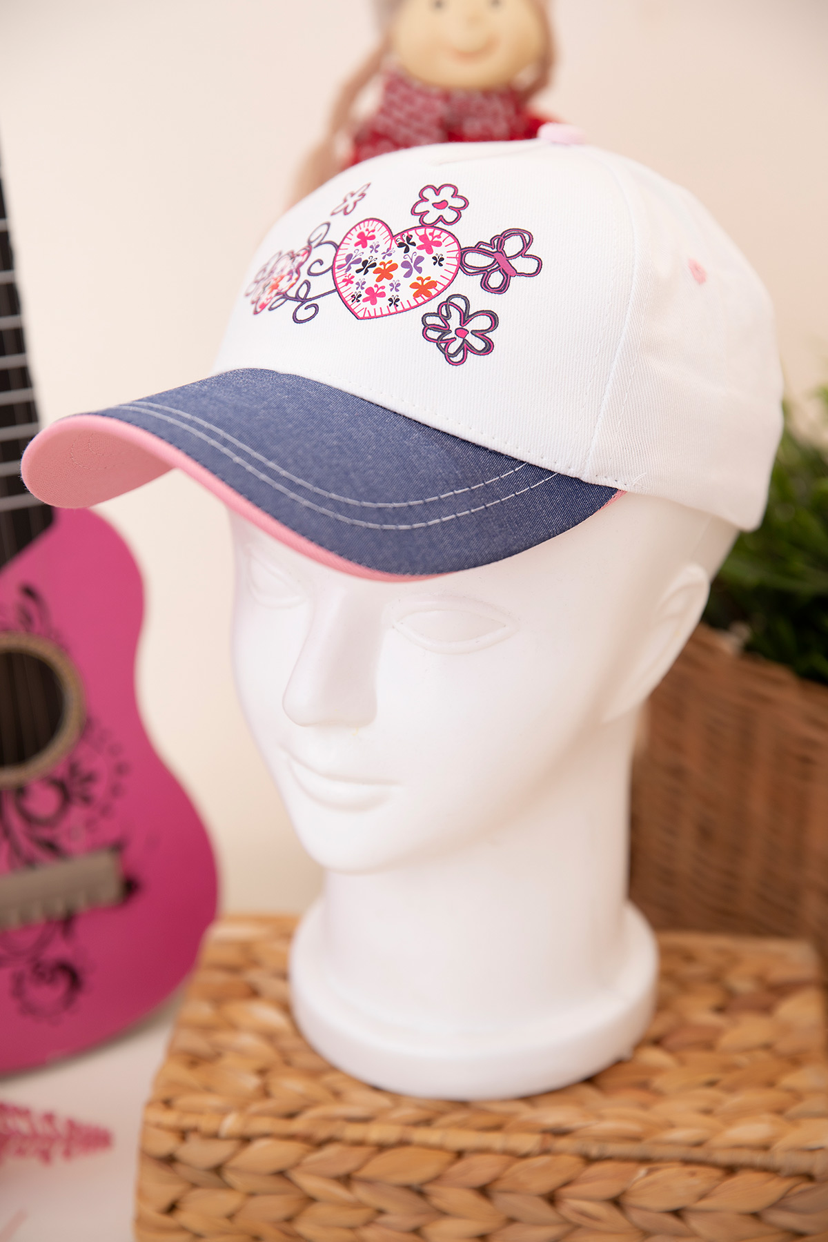 Kız Çocuk Çiçekli Kalp Baskılı Şapka