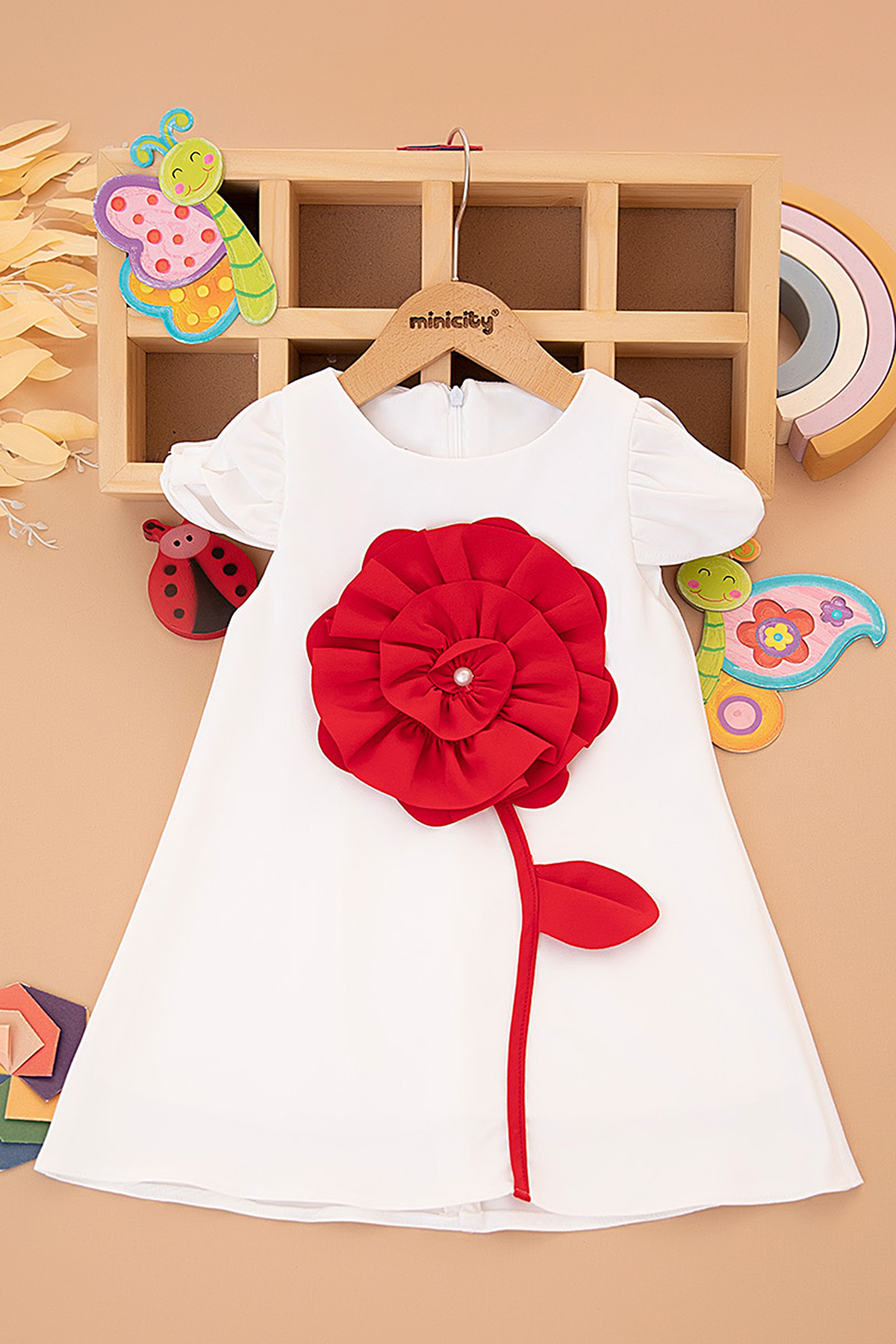 Kız Çocuk Çiçekli Kollu Elbise - 9447 (2-5 Yaş)