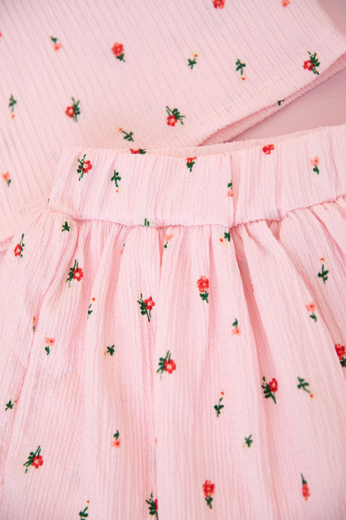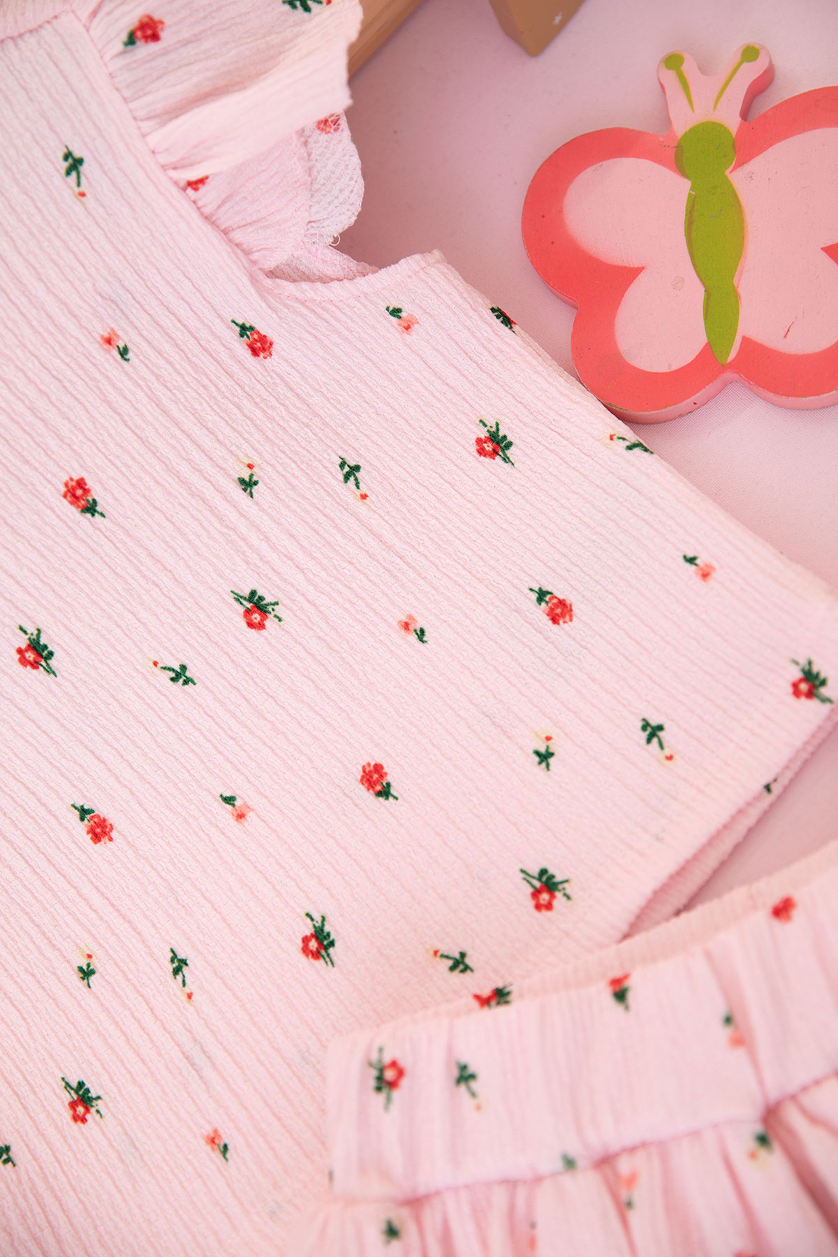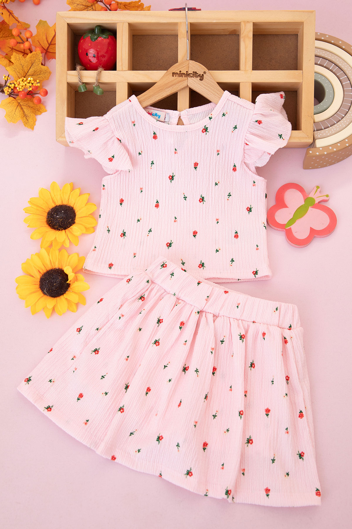 Kız Çocuk Çiçekli Kolu Fırfırlı Etekli Takım - 5254061 (2-5 Yaş)