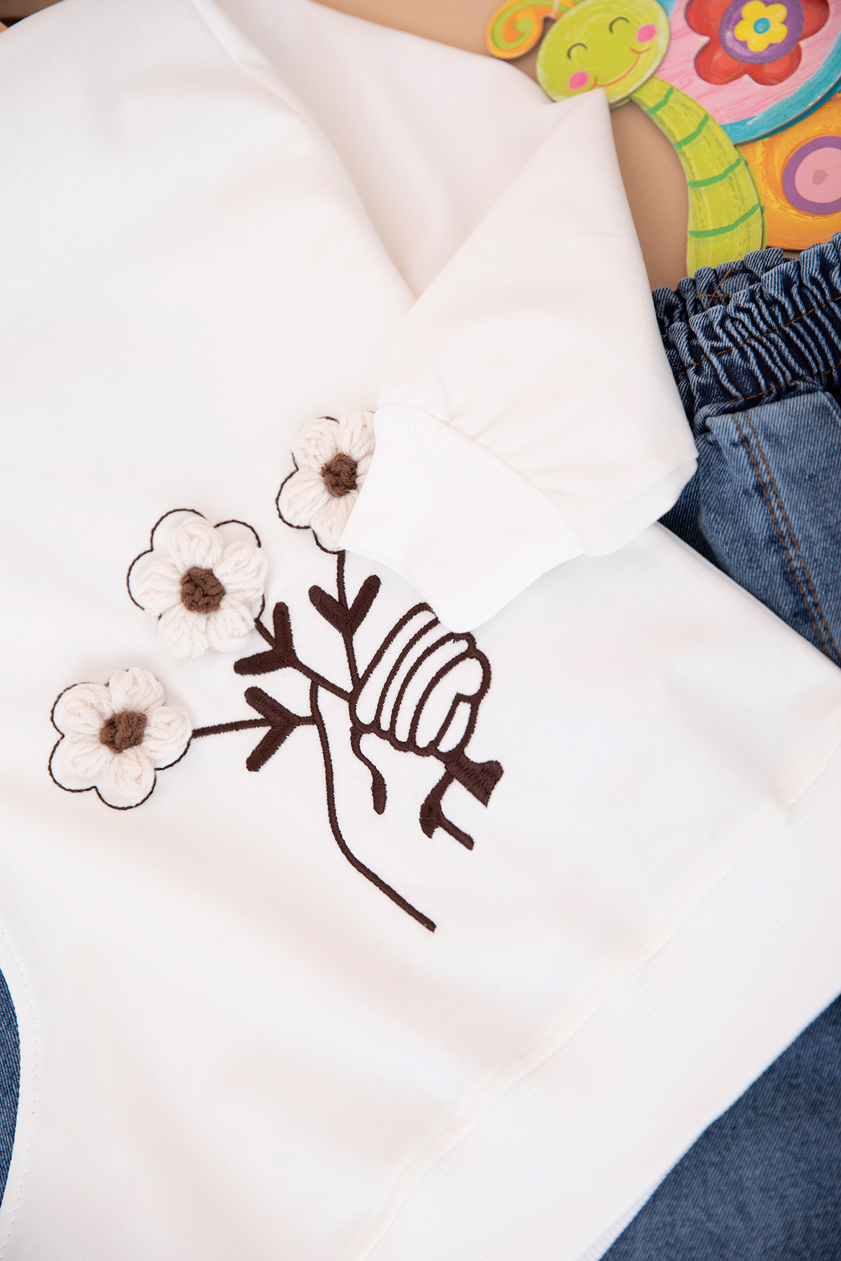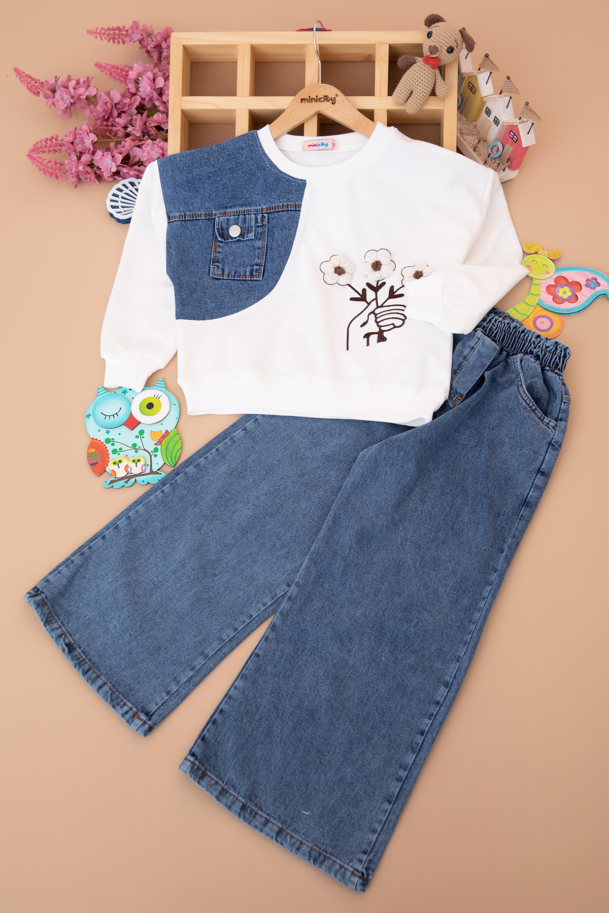 Kız Çocuk Çiçekli Kot Pantolon Takım - 2637 (6-10 Yaş)