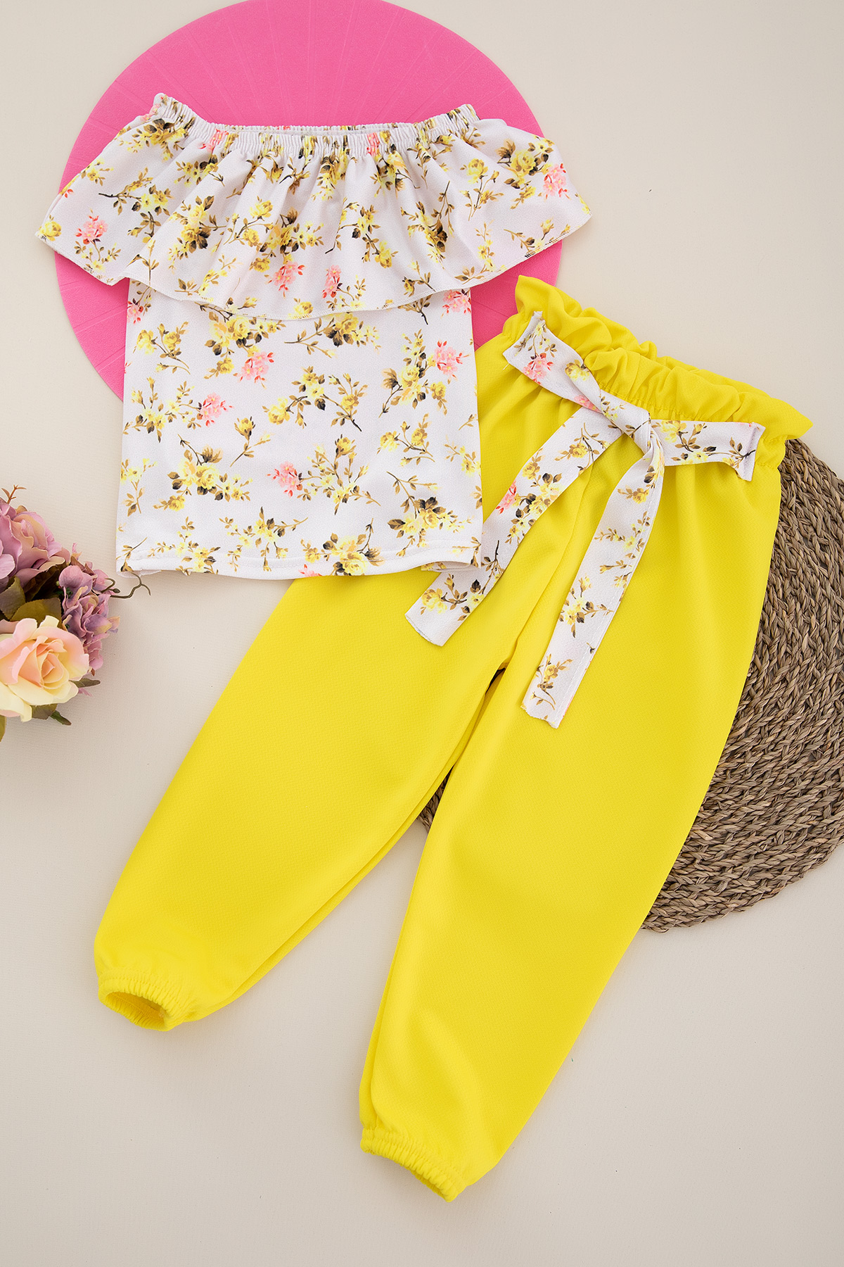 Kız Çocuk Çiçekli Pantolonlu Takım (3-10 Yaş)