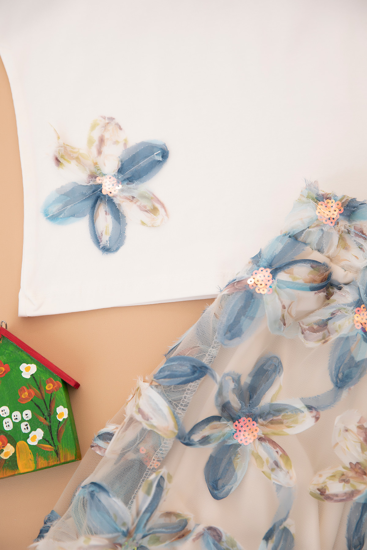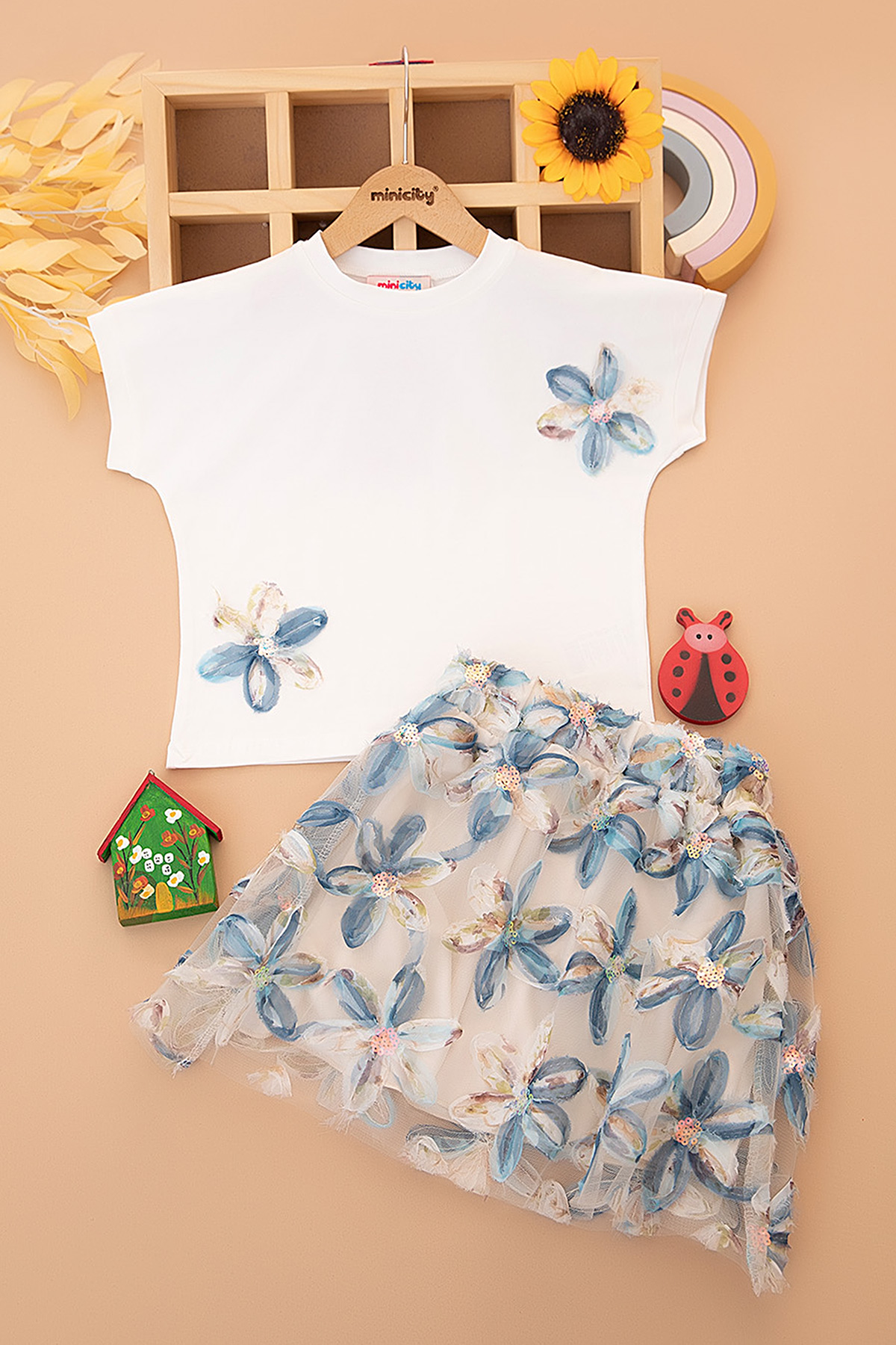 Kız Çocuk Çiçekli Tül Etekli Takım - 309 (6-10 Yaş)