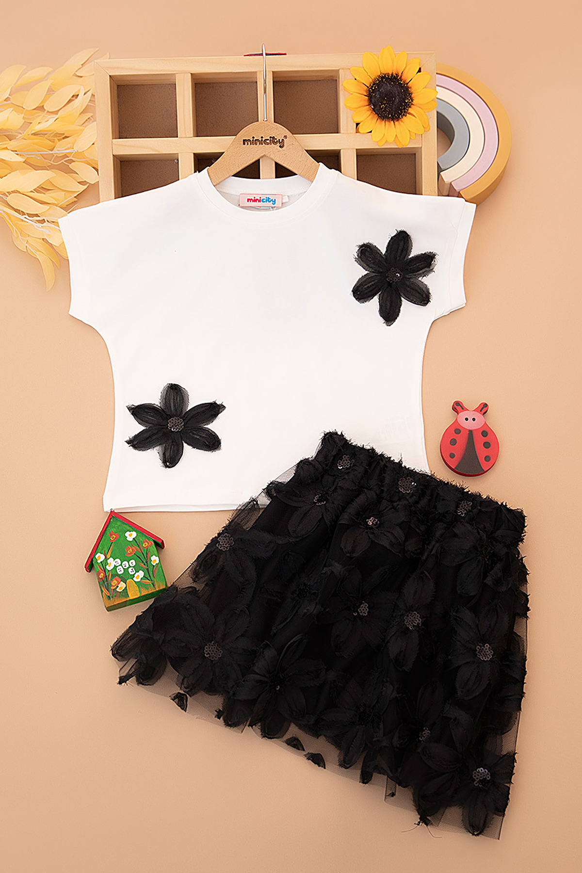 Kız Çocuk Çiçekli Tül Etekli Takım - 309 (6-10 Yaş)
