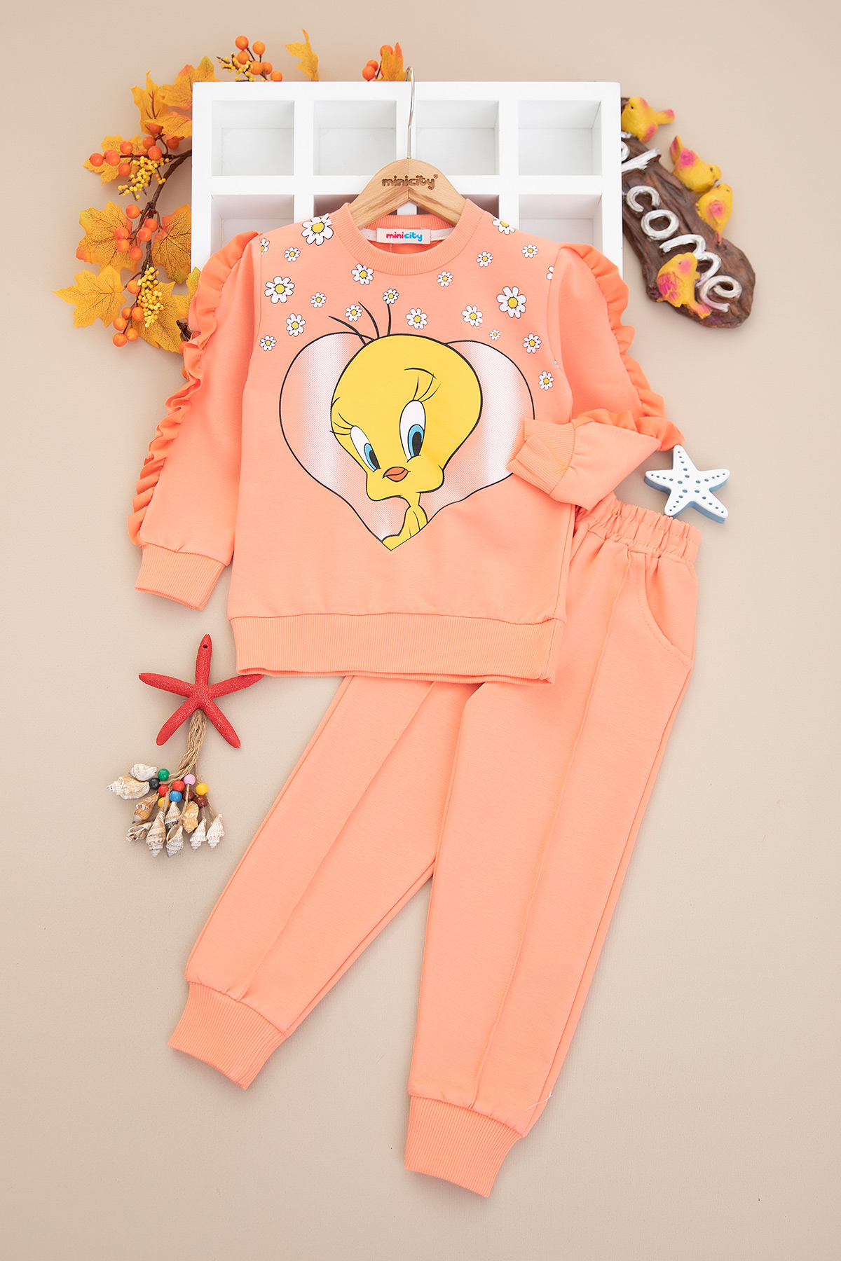 Kız Çocuk Çiçekli Tweety Baskılı Takım (3-10 Yaş)